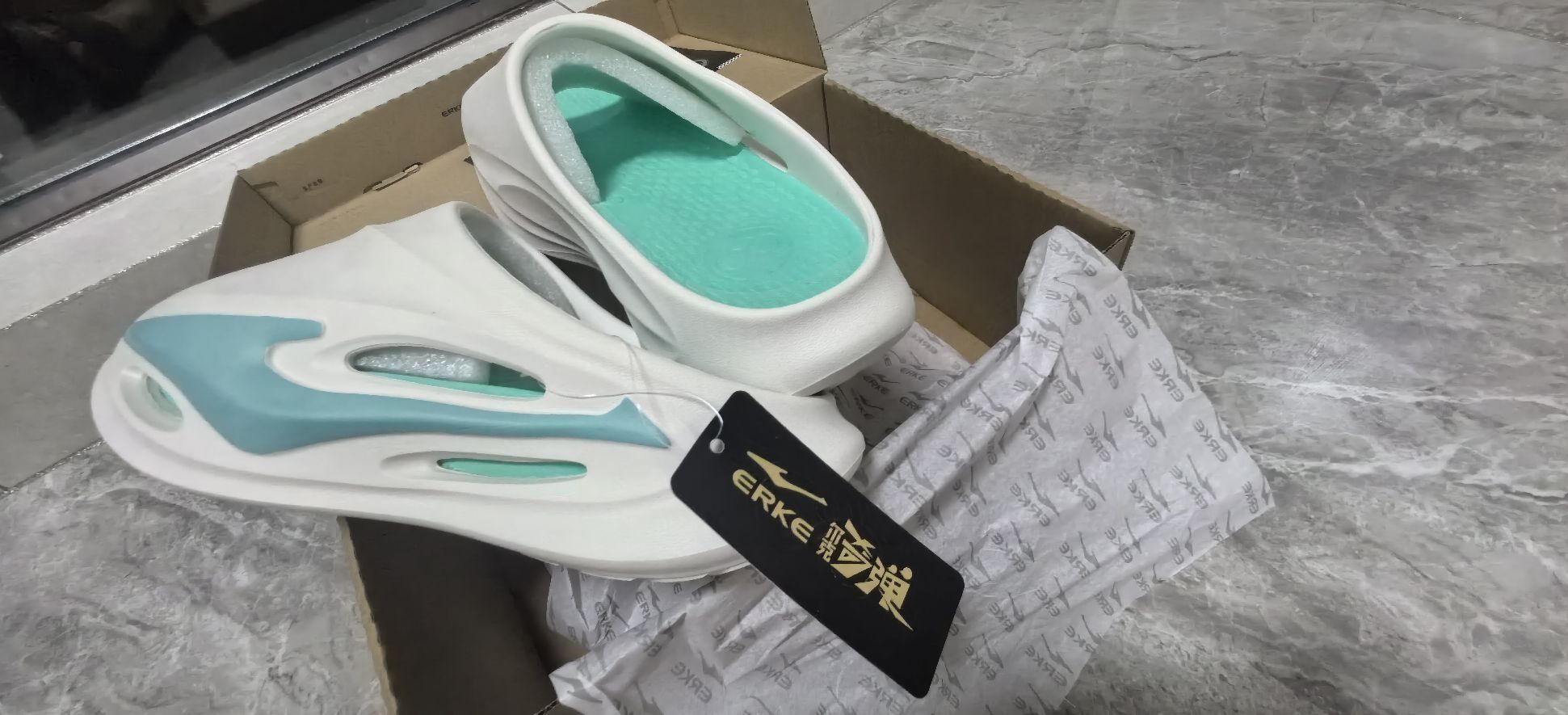 鸿星尔克的拖鞋怎么样? 外观方面真的很清爽好看 还有增高效果,脚感软弹 夏季必备