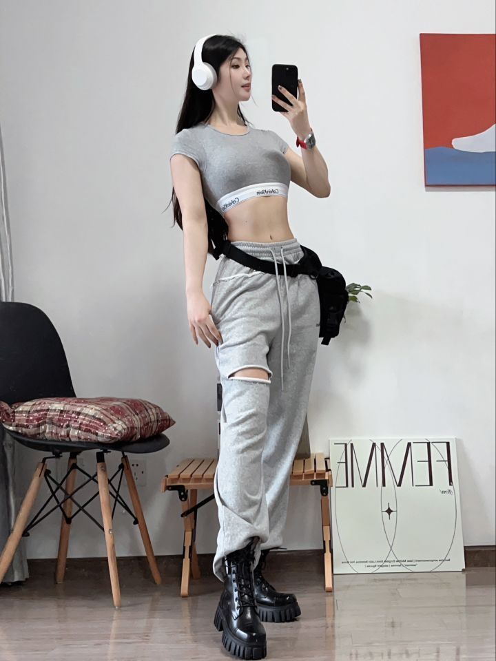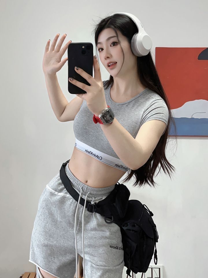 🌈今日份ck女孩🛒 ck的新款短上衣 穿上显身材 辣妹必备!! 🌈家人们这算有效穿搭嘛 好喜欢这件ck的短袖 短袖自带胸垫超级方便 白色稍微有点透 所以选了灰色 朋友买黑色的也超级好看 在外面套个外套感觉乖乖的 搭配上白色长裤很有元气的感觉 (图片来自博主:蓝雨崽崽)