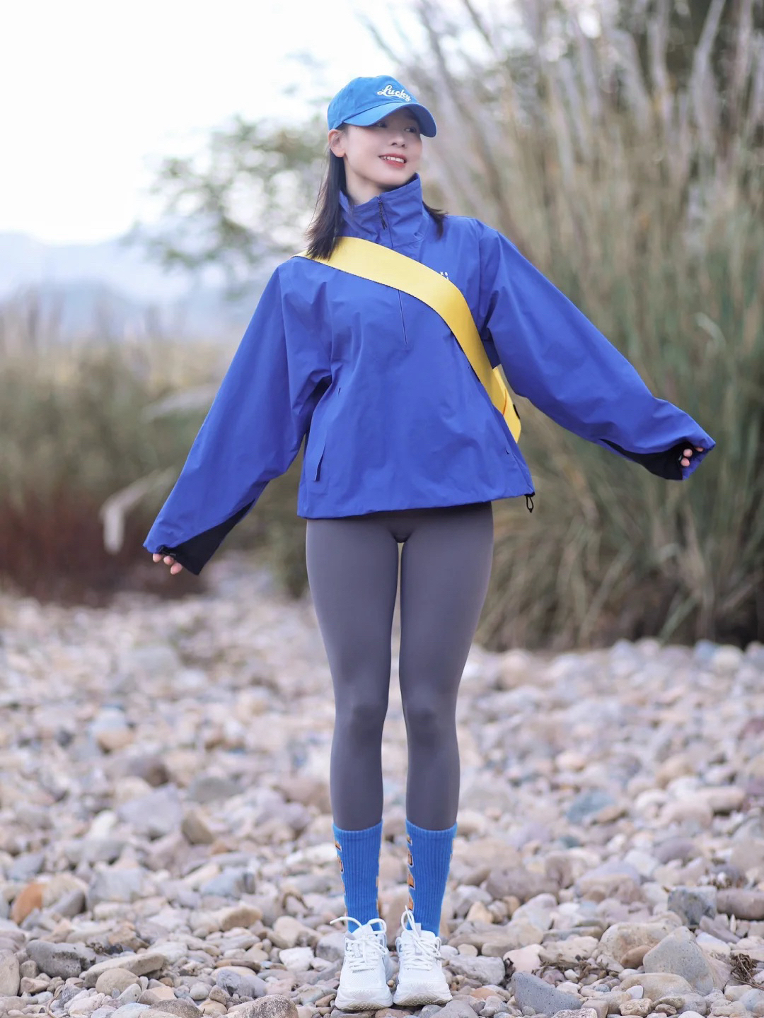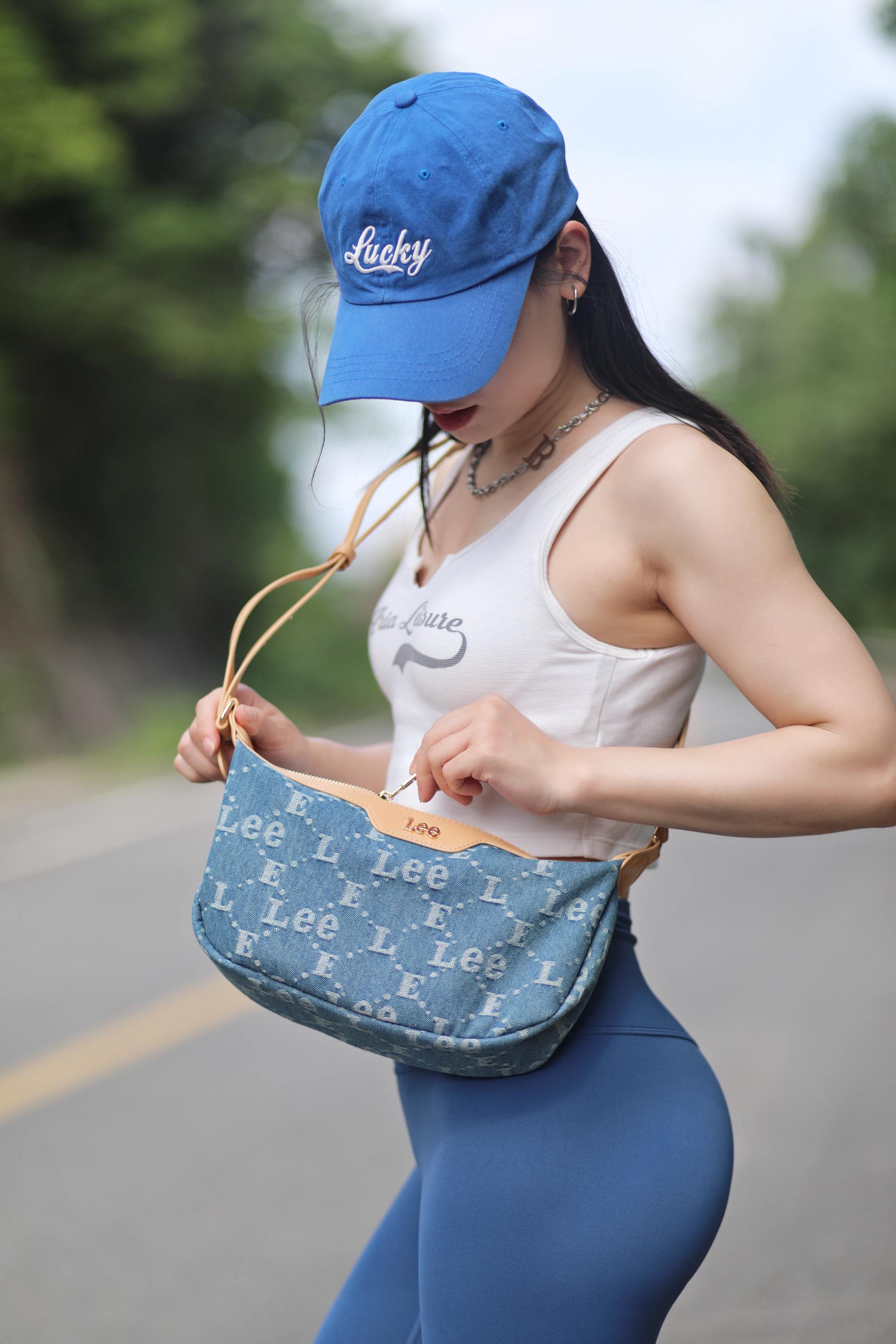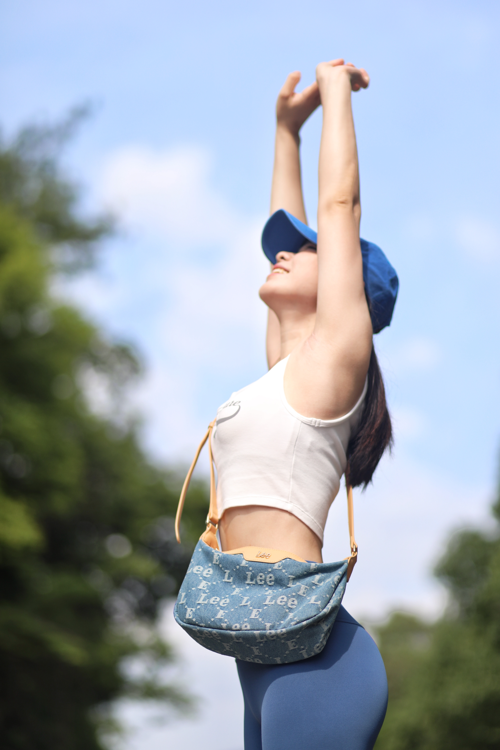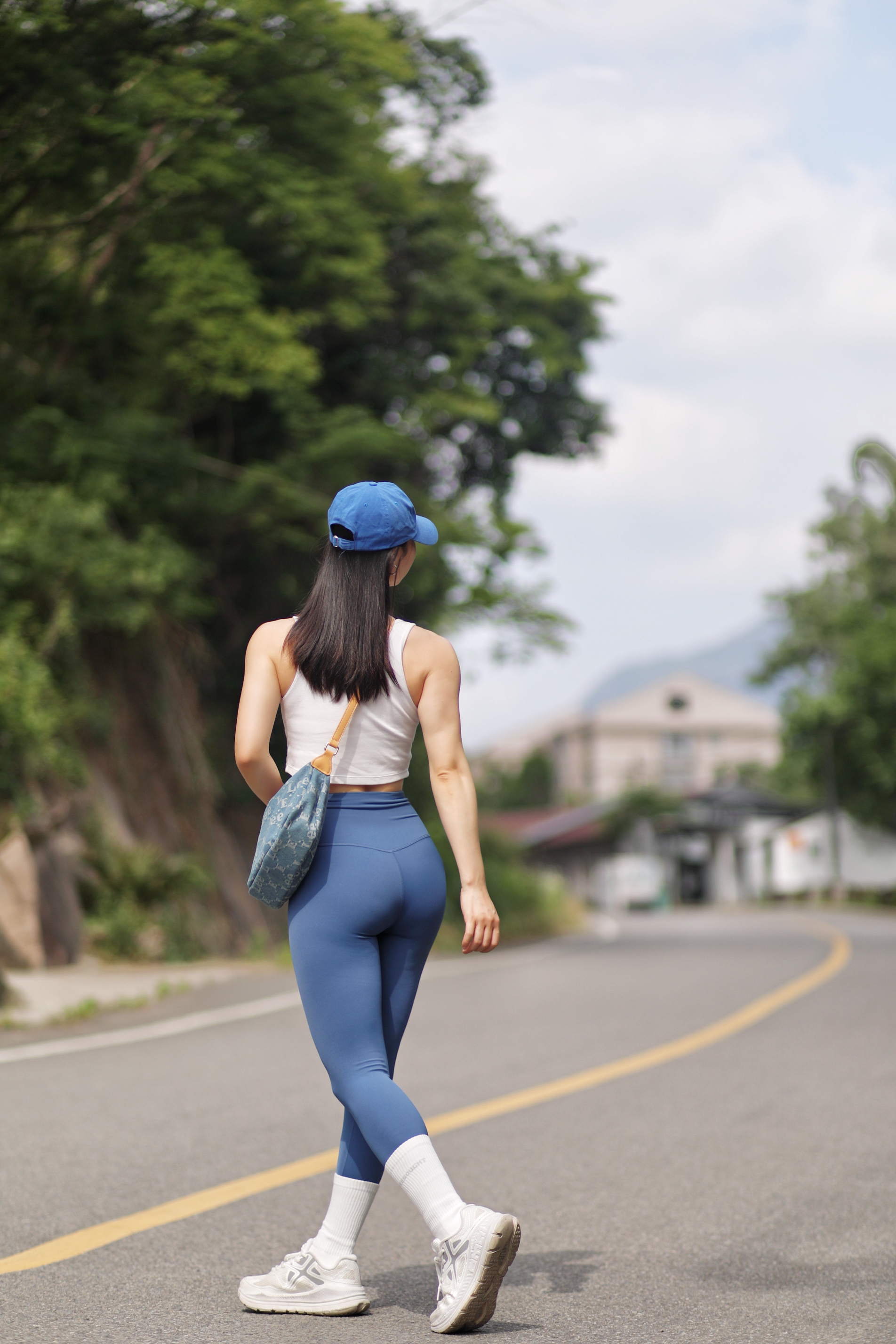 健身5年啦~ 每天都有在认真健身 慢慢向着自己的理想身材靠近 虽然还不是很优秀 但是是我喜欢的细腰肉腿轻线条啦~ 只要付出努力就一定会有收获~~ 今天一身蓝色系夏日穿搭 出门遇到了很好看的风景 好像走进了宫崎骏的漫画世界 包包是Lee老花月牙包 小巧精致适合夏天背 虽然小但是容量还挺大的