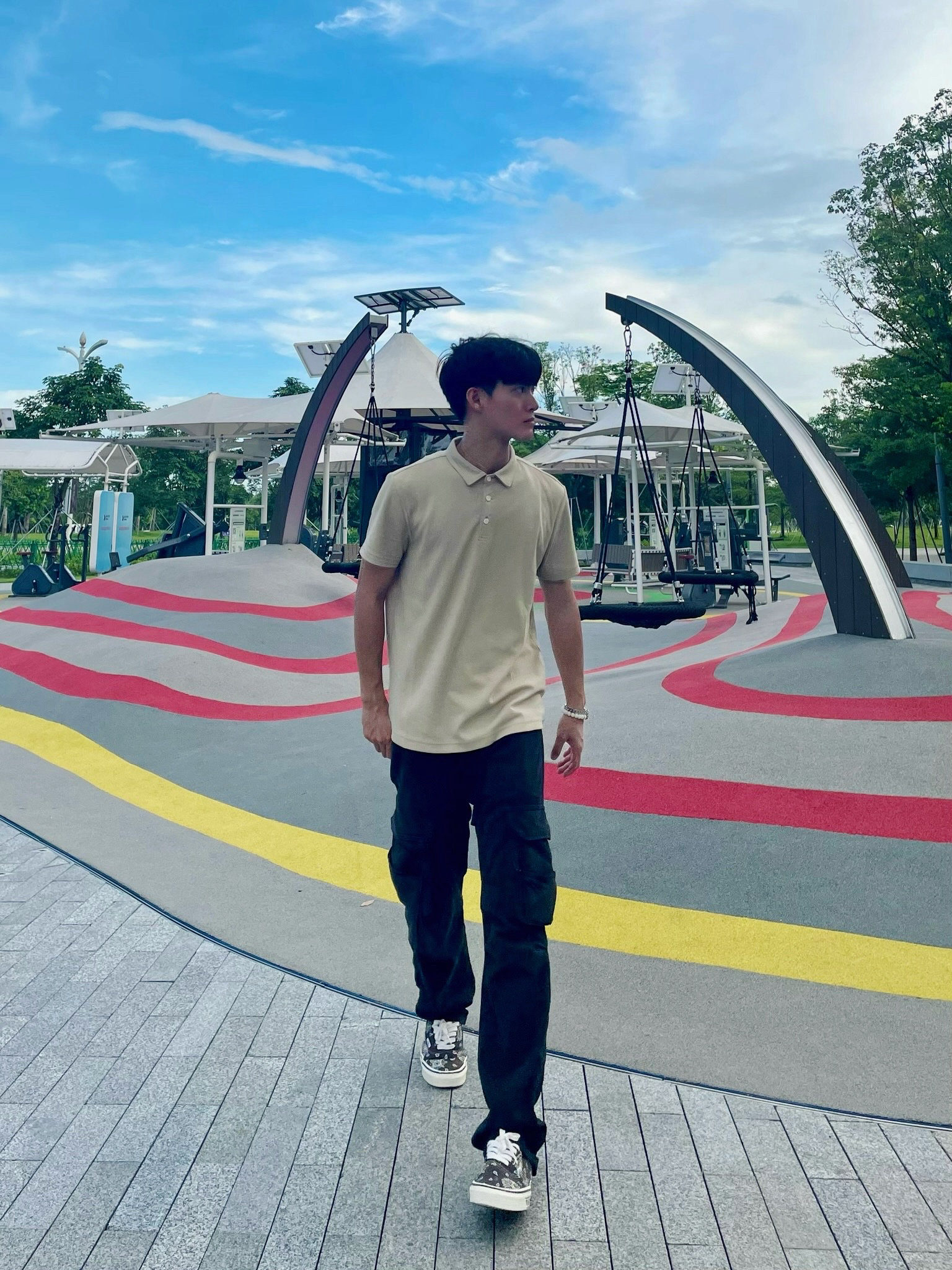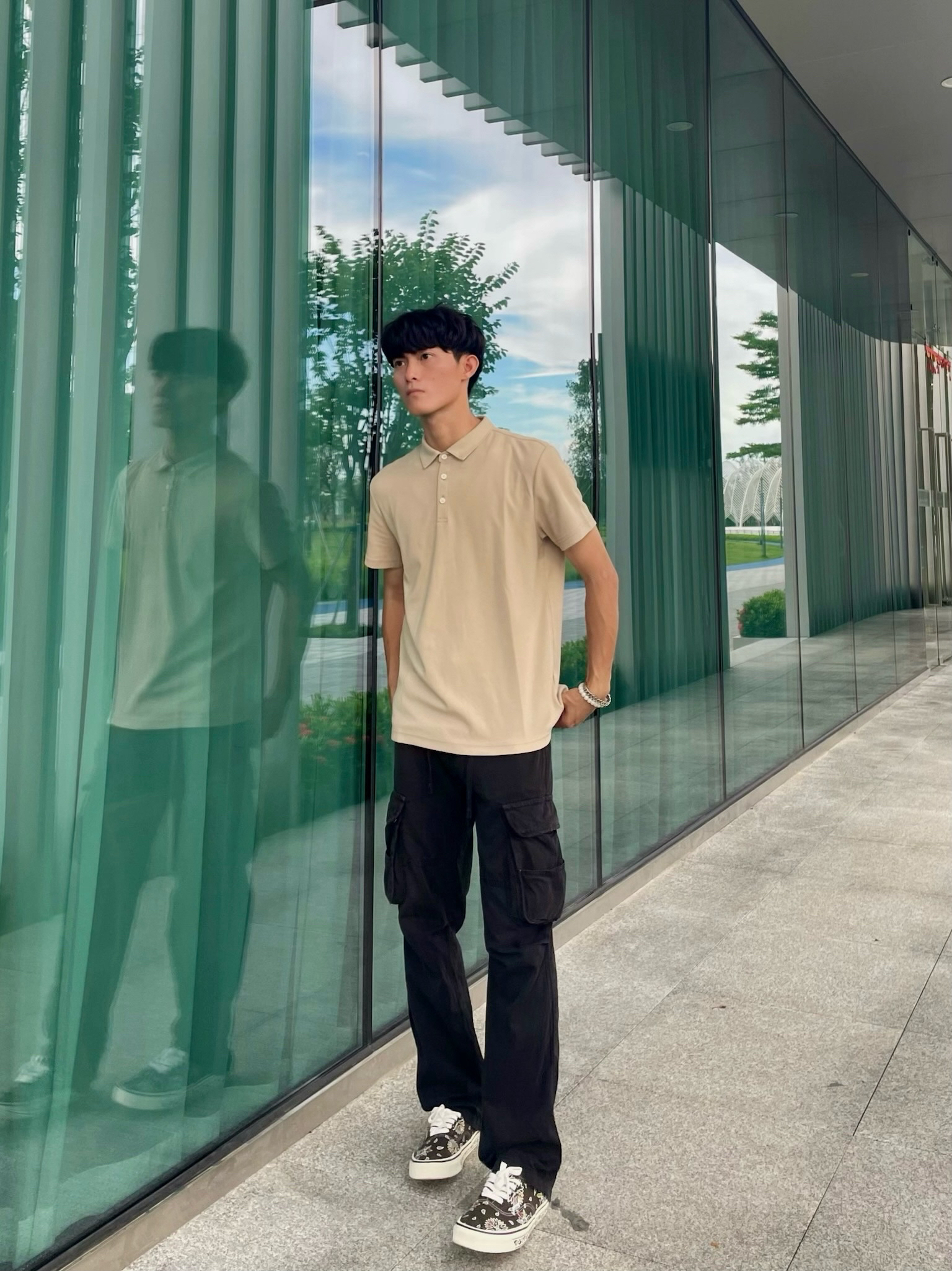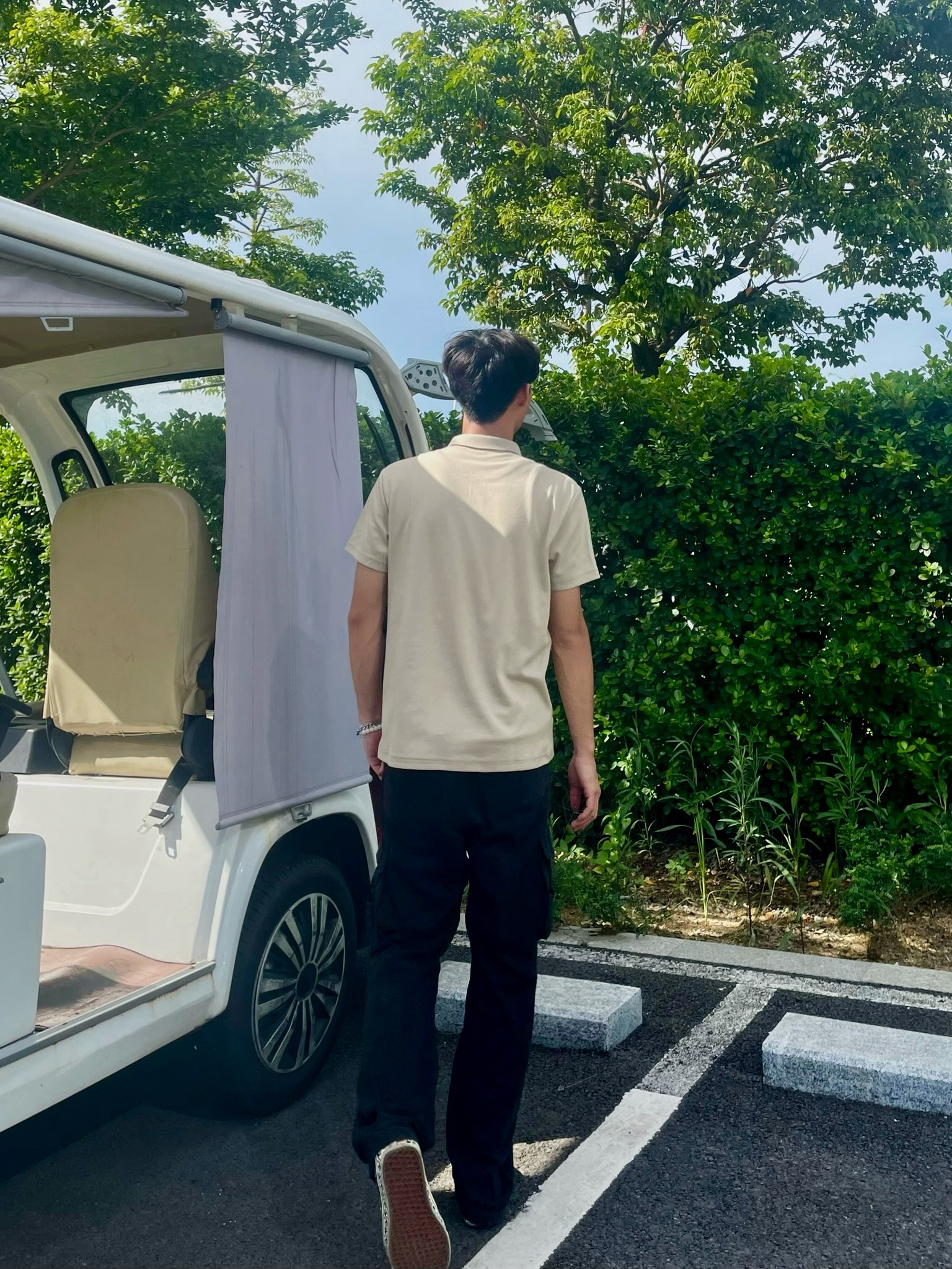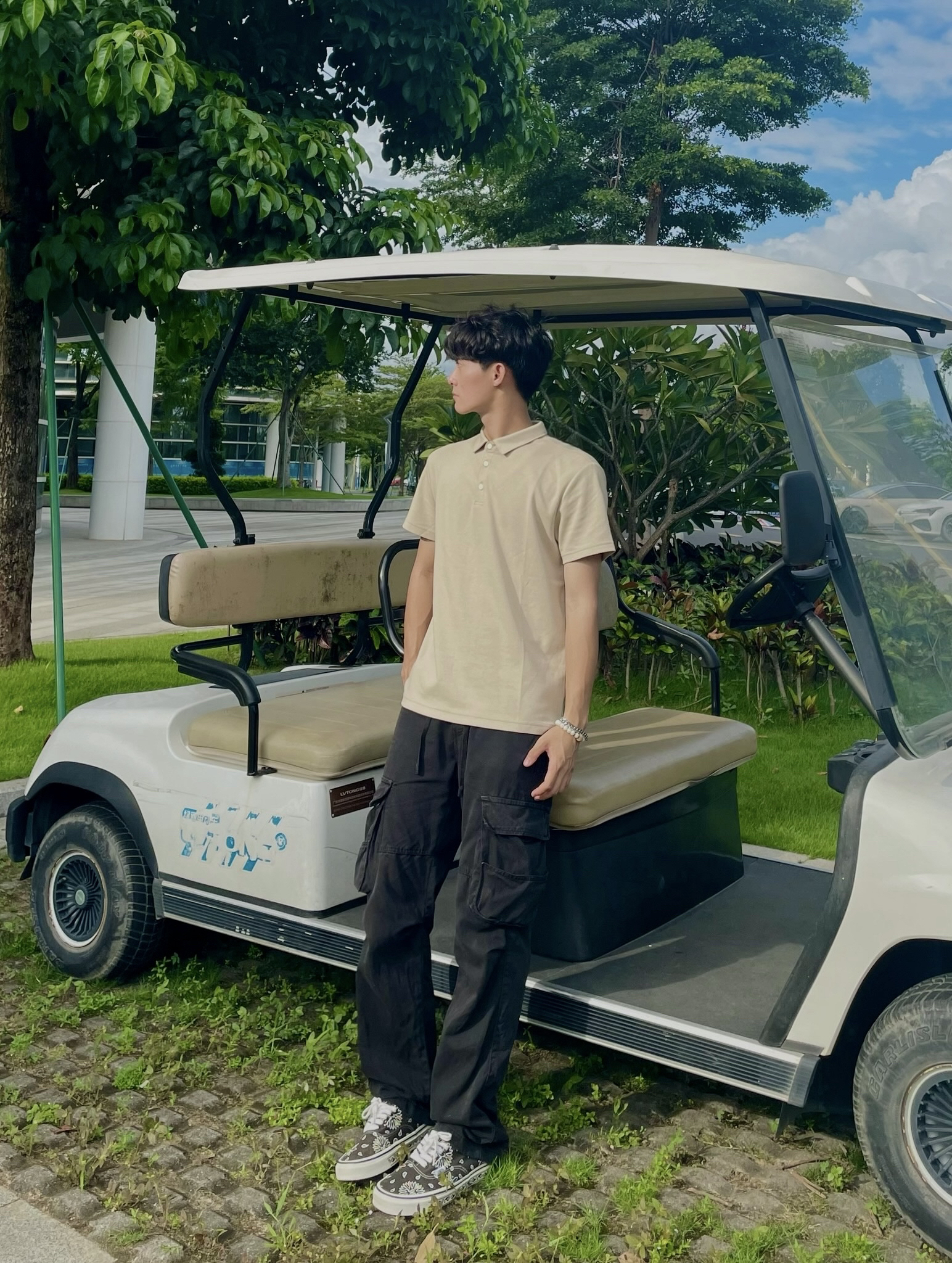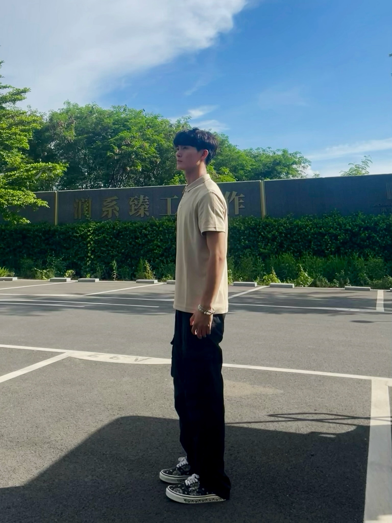 🏑分享一下今天出行穿搭吧[机智_blue] 🛺坐高尔夫球车出行,穿纯杏色基础T恤很休闲 — — — — — — — — — — — — — — — ①OOTD 👕纯杏色Polo衫,美式复古210g重磅克数,纯棉索罗娜面料,上身舒适凉感,免烫轻熟风又显瘦 — 👖纯黑色工装裤,水洗做旧的工艺,基础简约又百搭,加上碳素磨毛的效果非常的耐看 — ②tips✨ 以基础的颜色搭配,出行更简约通勤,整体正...