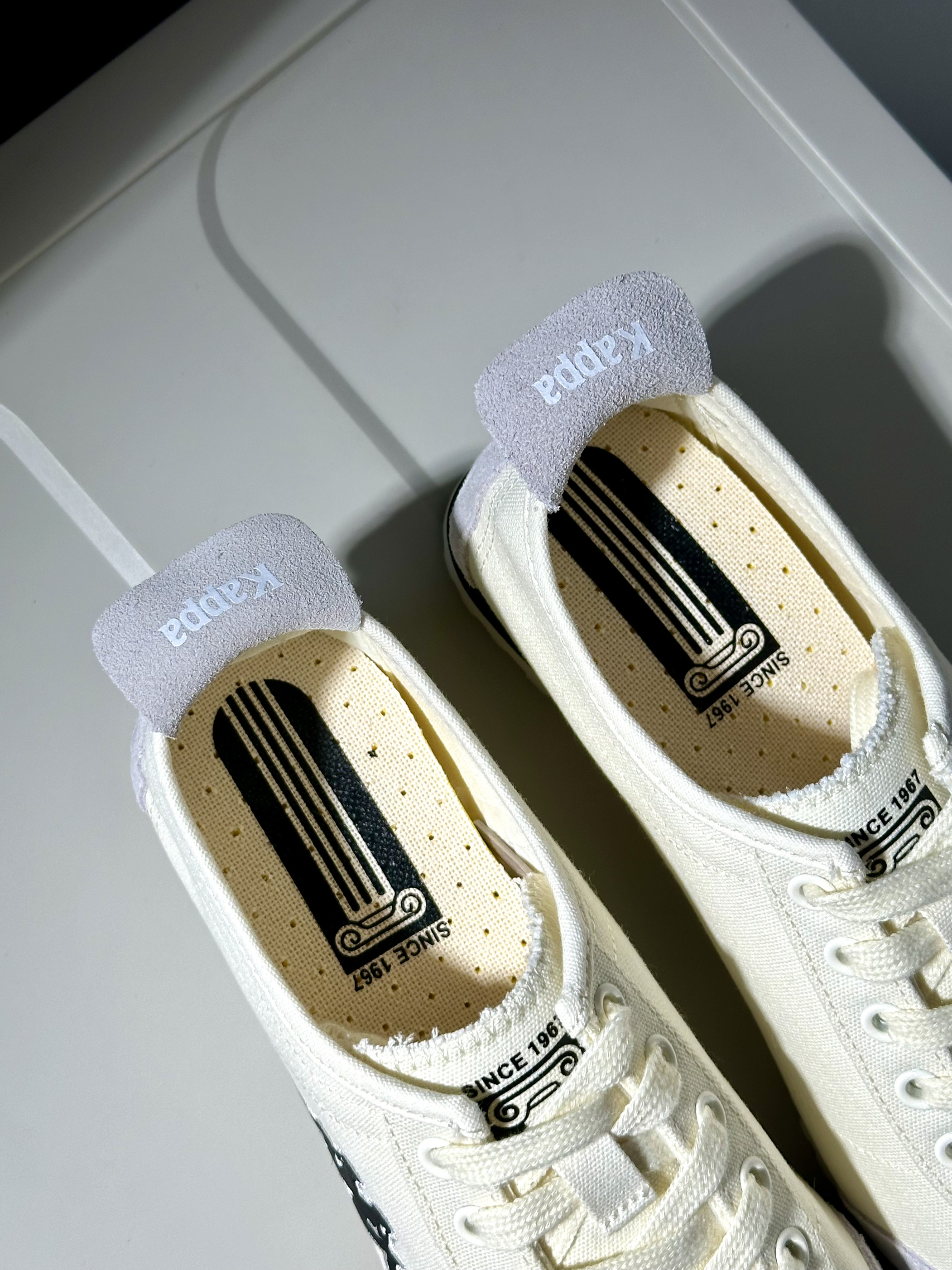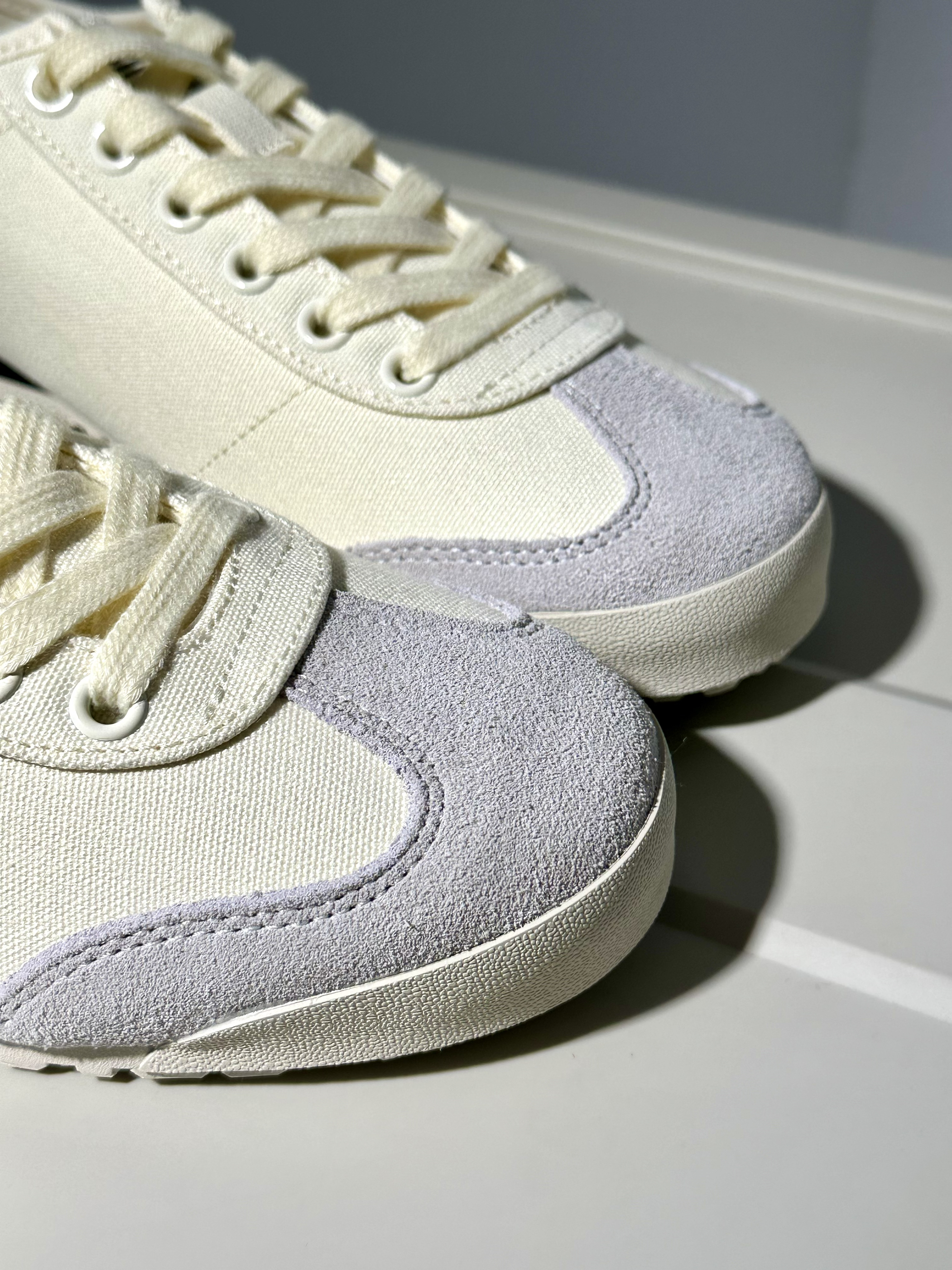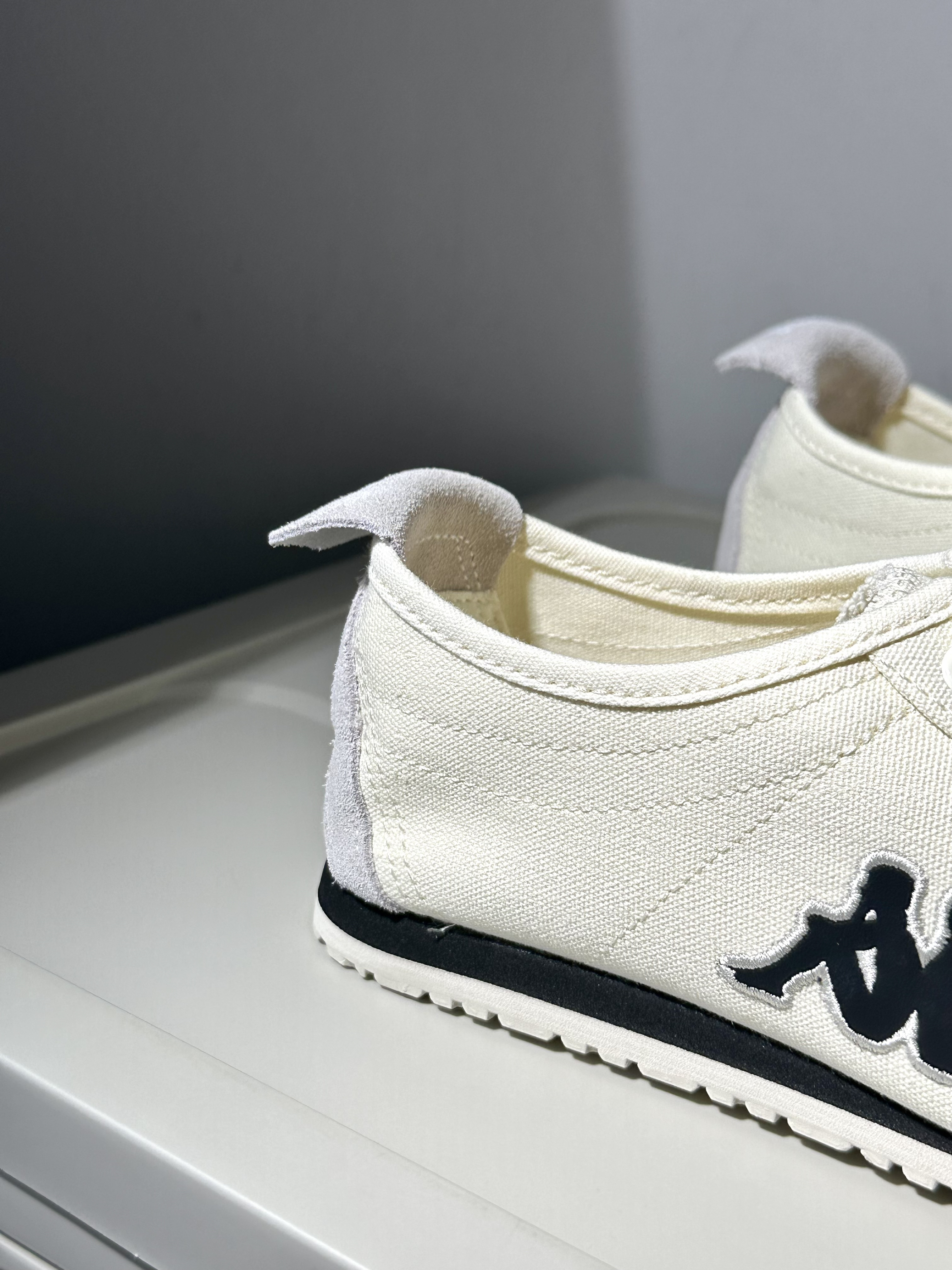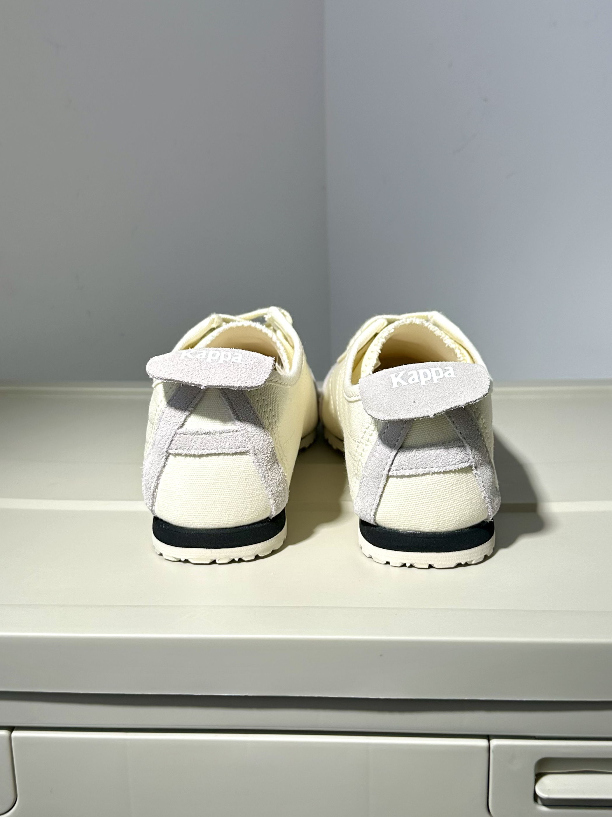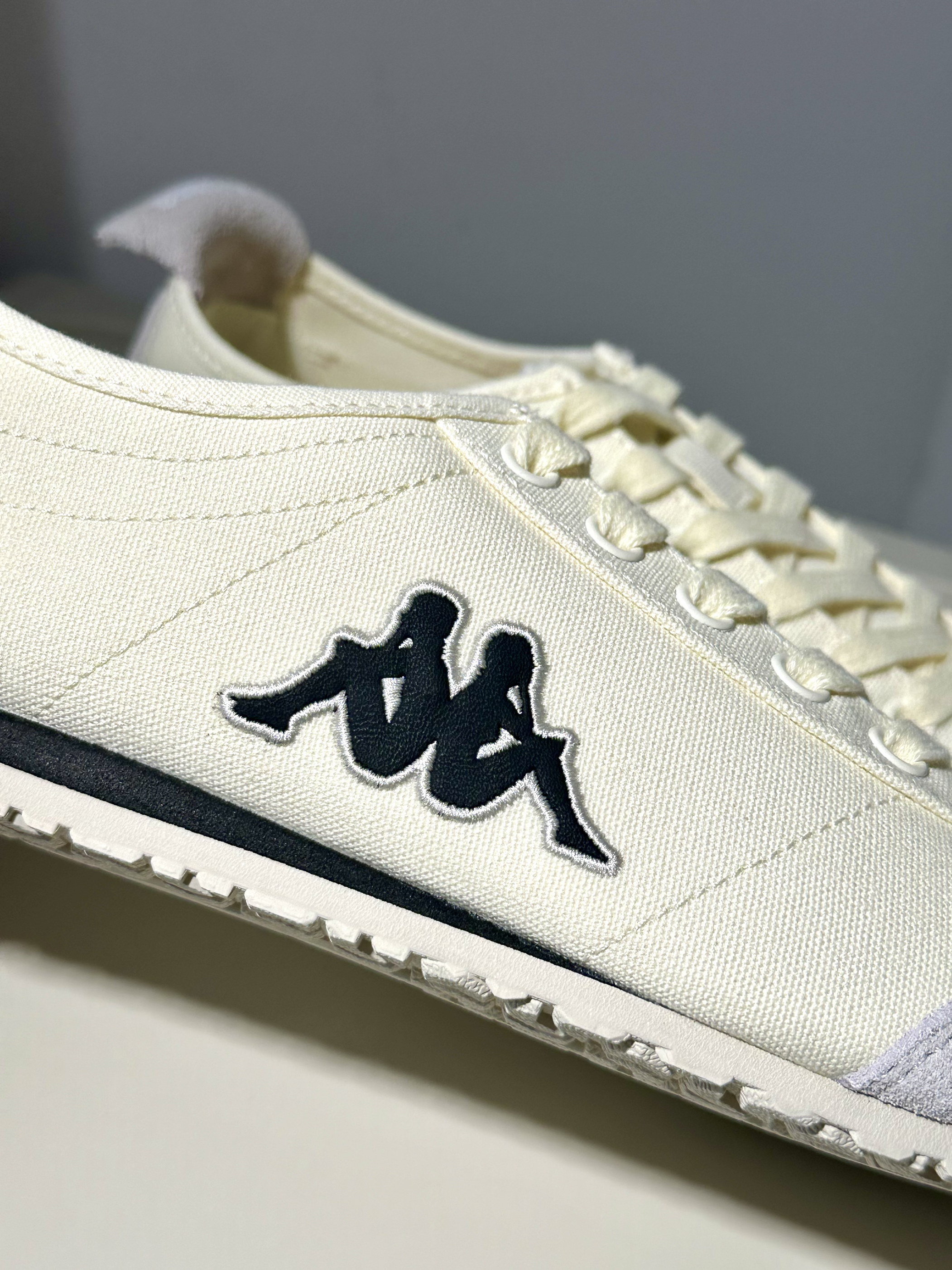 又是被kappa种草的一天~ 奶白色帆布鞋很简约也很city! 再拼接一点麂皮质感真的很绝✨ 而且夏天穿就挺合适的🍉 透气性很棒也很轻盈 通勤出街都很合适,很出片! 尺码不偏,正码选就刚好合适✅ ⚠️PS:脏了要及时打理!!!