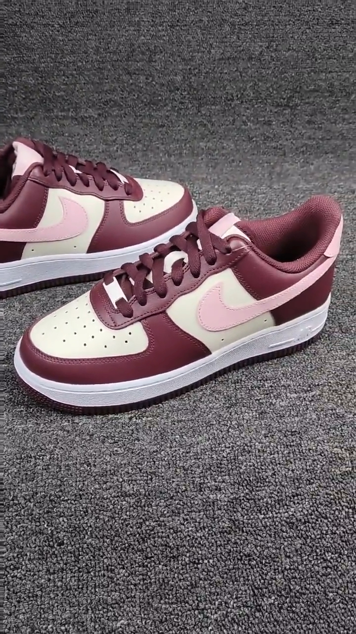 鞋身采用褐色牛皮革为基底,紫色牛剖层革打造鞋框架,后跟NIKE刺绣采用红底白字呈现,奶白色Swoosh,粉色鞋带好看,奶白色中底 褐色半透明水晶外底收尾,整体配色复古好看有点🍓草莓搭配巧克力🍫的feel,码正不偏。 帮面材质:牛皮革/牛剖层革 产 地:印度尼西亚