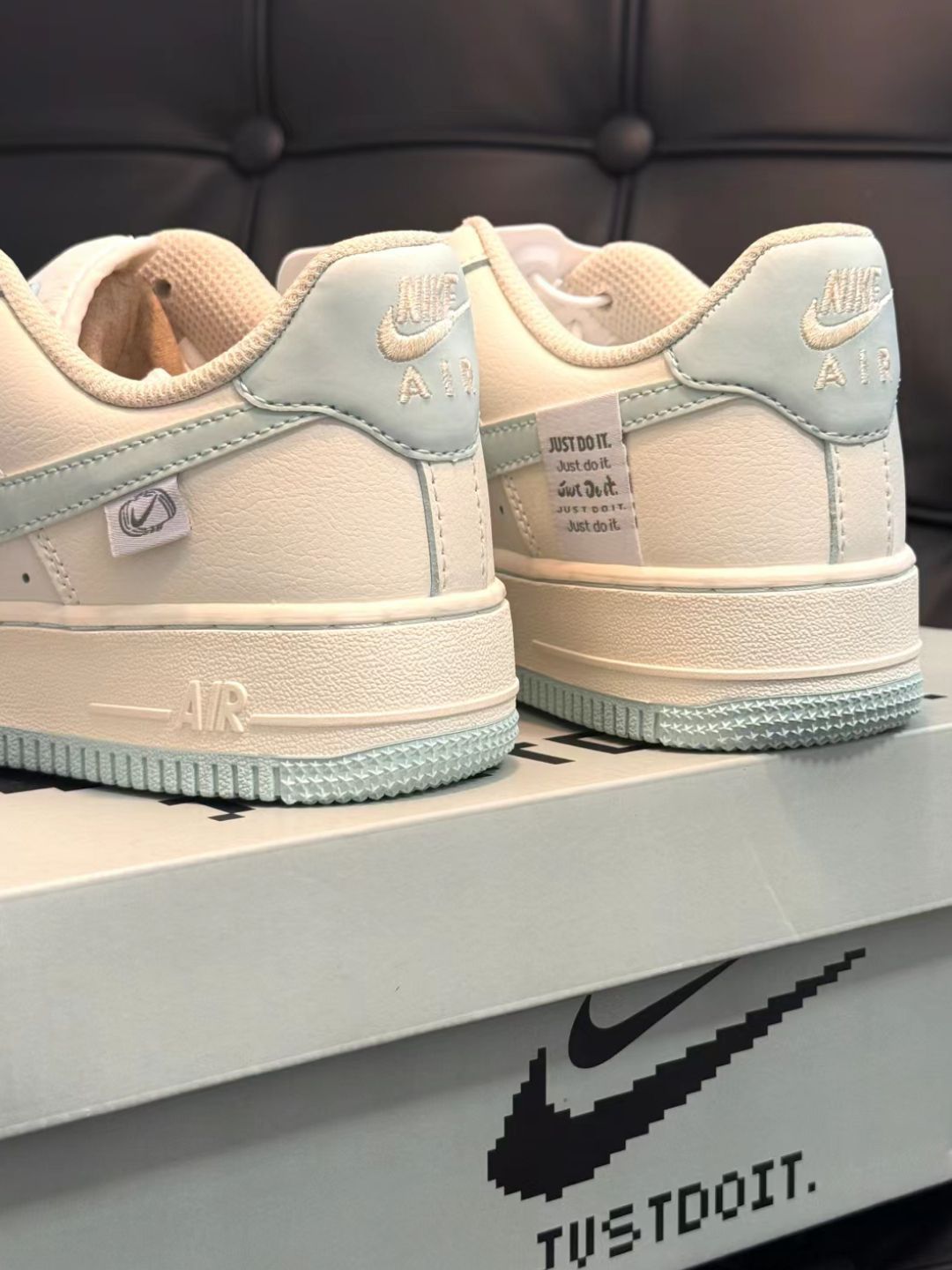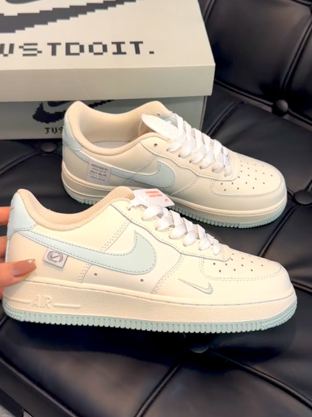 AF1这双也太适合学生党了吧!!! 便宜又好穿~颜值还很高 夏天搭配短裤漏脚脖子很显白。 奶白色鞋身搭配天空蓝的标志,颜色搭配非常的温柔清新,标志一圈加上亮片,使整双鞋子更有特色,后面还绣了刺绣图案,小小的设计感,给鞋子增加了几分俏皮。 上脚也是更不用说,好看,鞋底厚度3.5厘米左右,有一定的增高效果,而且百搭显腿型,四季都可以穿