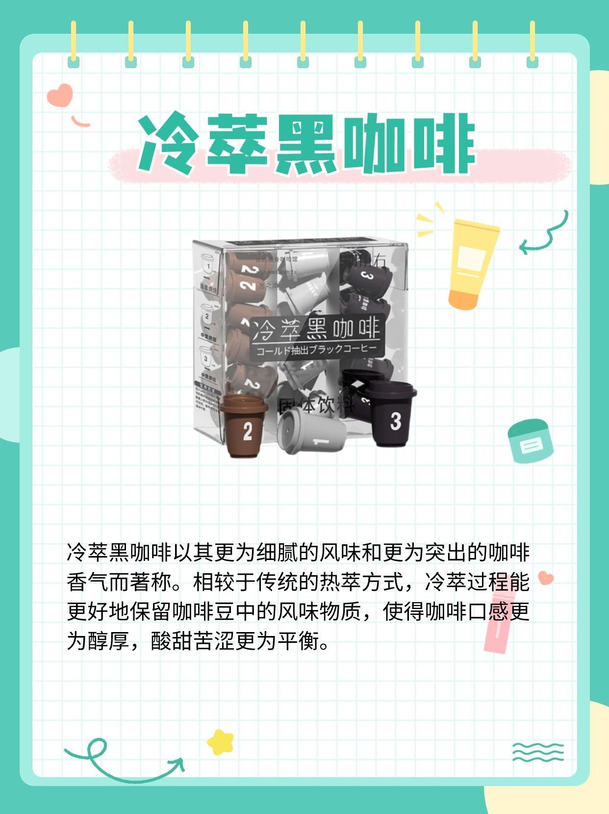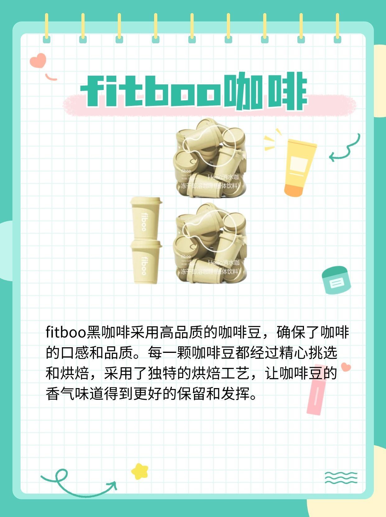 1⃣️fitboo黑咖啡 fitboo黑咖啡采用高品质的咖啡豆, 确保了咖啡的口感和品质。 每一颗咖啡豆都经过精心挑选和烘焙, 采用了独特的烘焙工艺, 让咖啡豆的香气味道得到更好的保留和发挥。 2⃣️冷萃黑咖啡 冷萃黑咖啡以其更为细腻的风味 和更为突出的咖啡香气而著称。 相较于传统的热萃方式, 冷萃过程能更好地保留咖啡豆中的风味物质, 使得咖啡口感更为醇厚,酸甜苦涩更为平衡。...