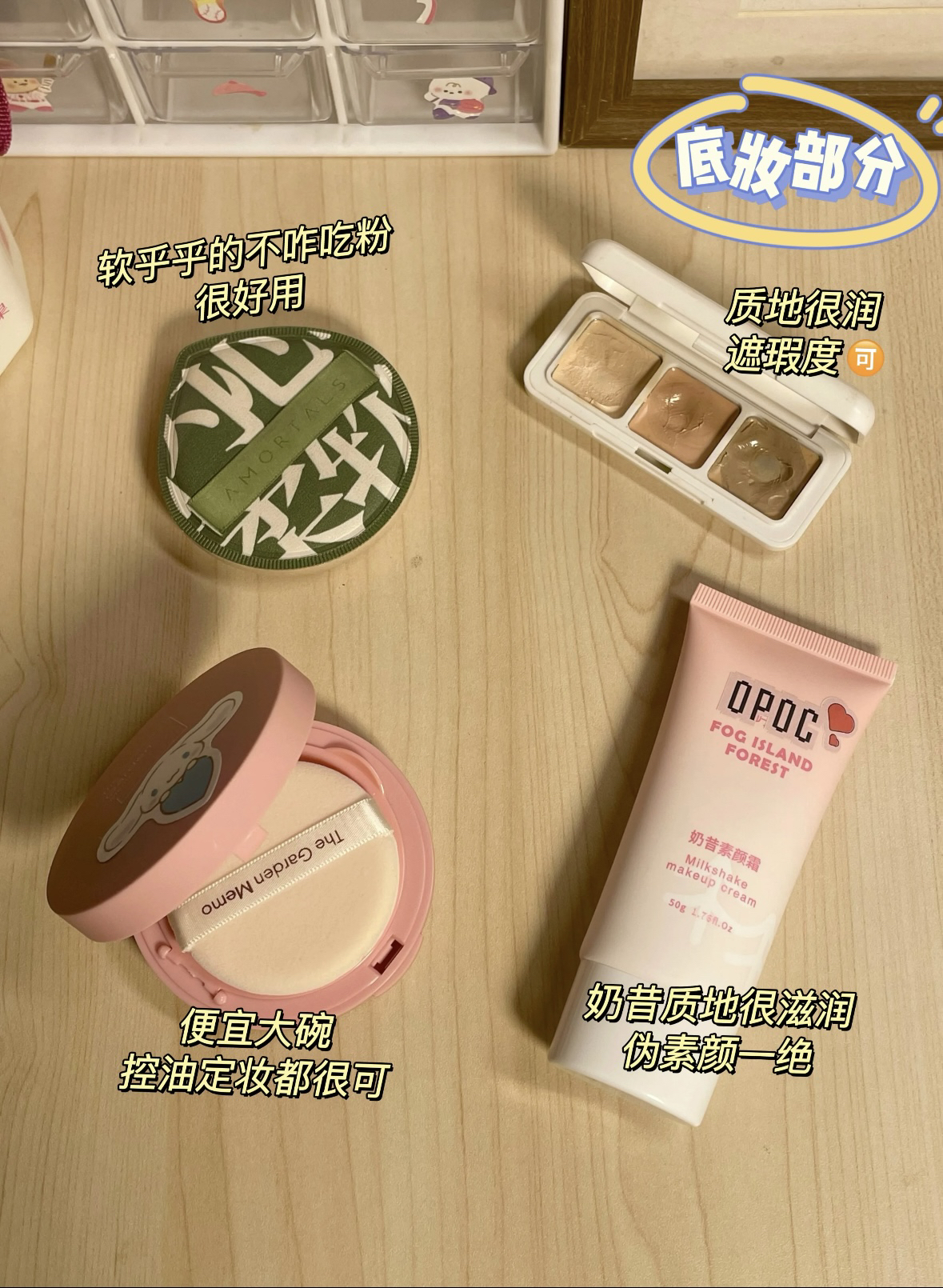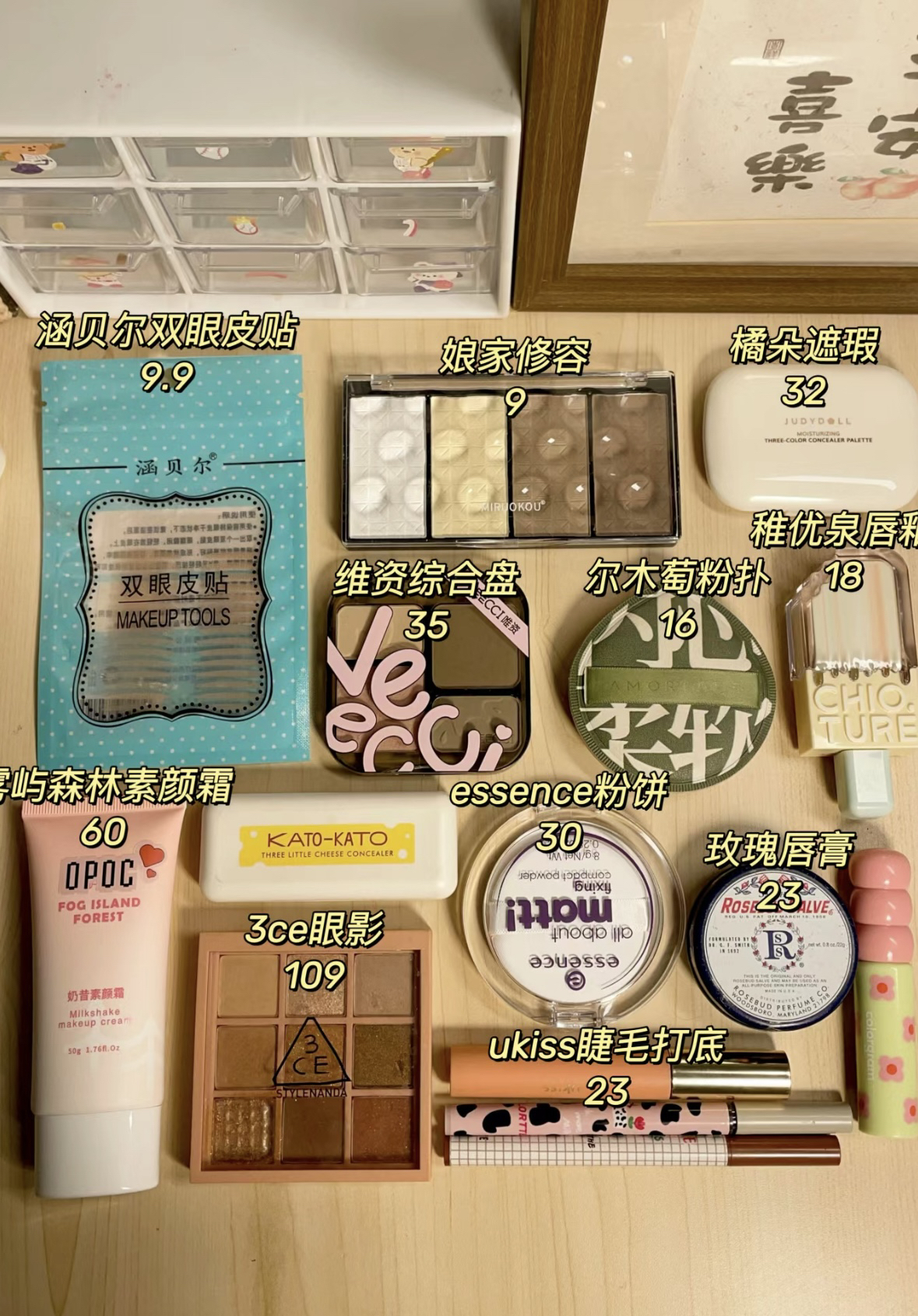 新手期一套平价好用的就可以,不用买太多,主要是学习练手,抠搜女大整理了一套自用超值的化妆品,都是特别简单易上手,无脑下手也不会失败的化妆品!很适合新手~ 🌷kato遮瑕 🌷雾屿森林素颜霜 🌷ovo粉饼 🌷3ce眼影 🌷Intoyou 唇泥 🌷花洛莉亚卧蚕笔 🌷尔木萄粉扑 🌷娘家修容 🌷维资综合盘 🌷ukiss睫毛打底