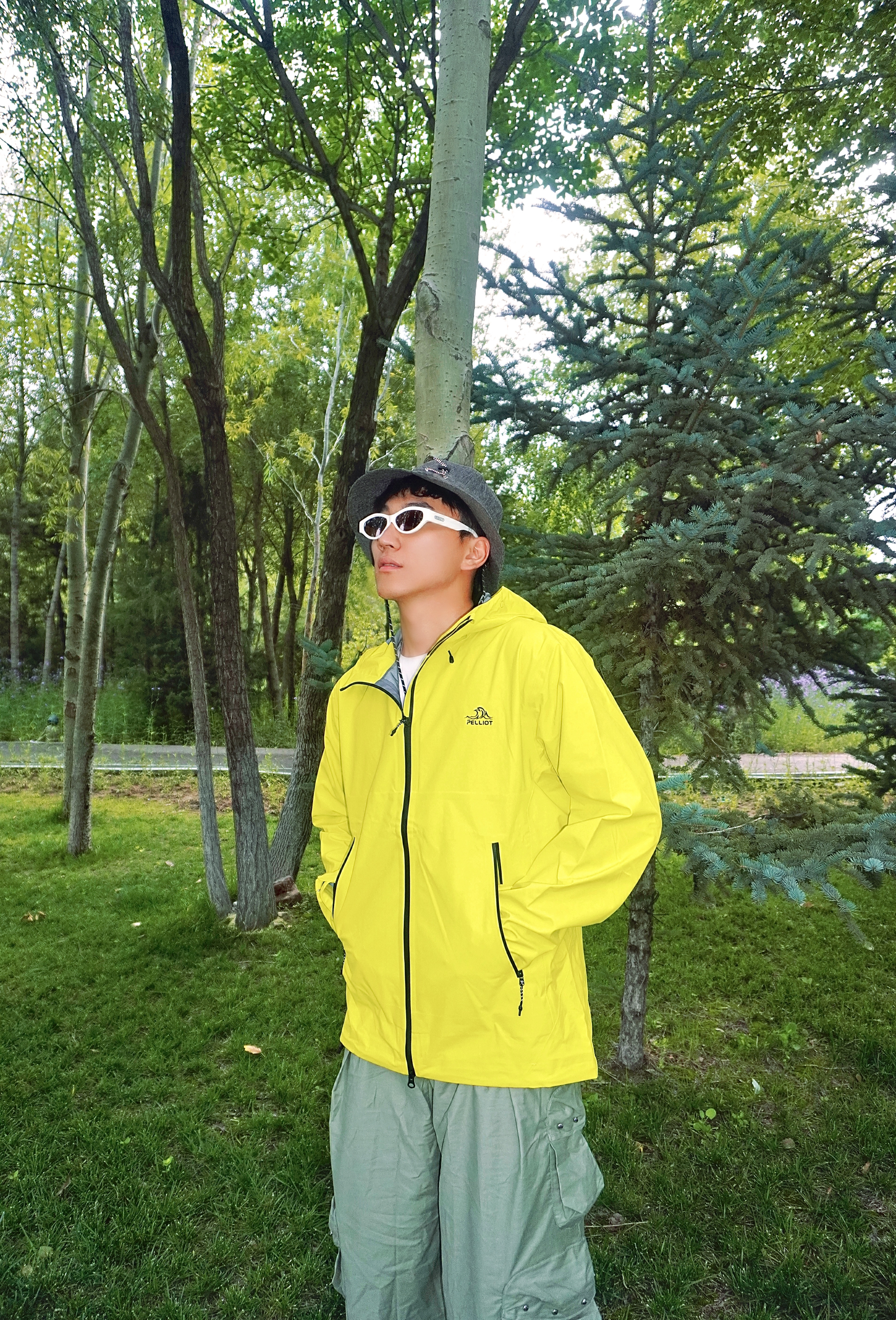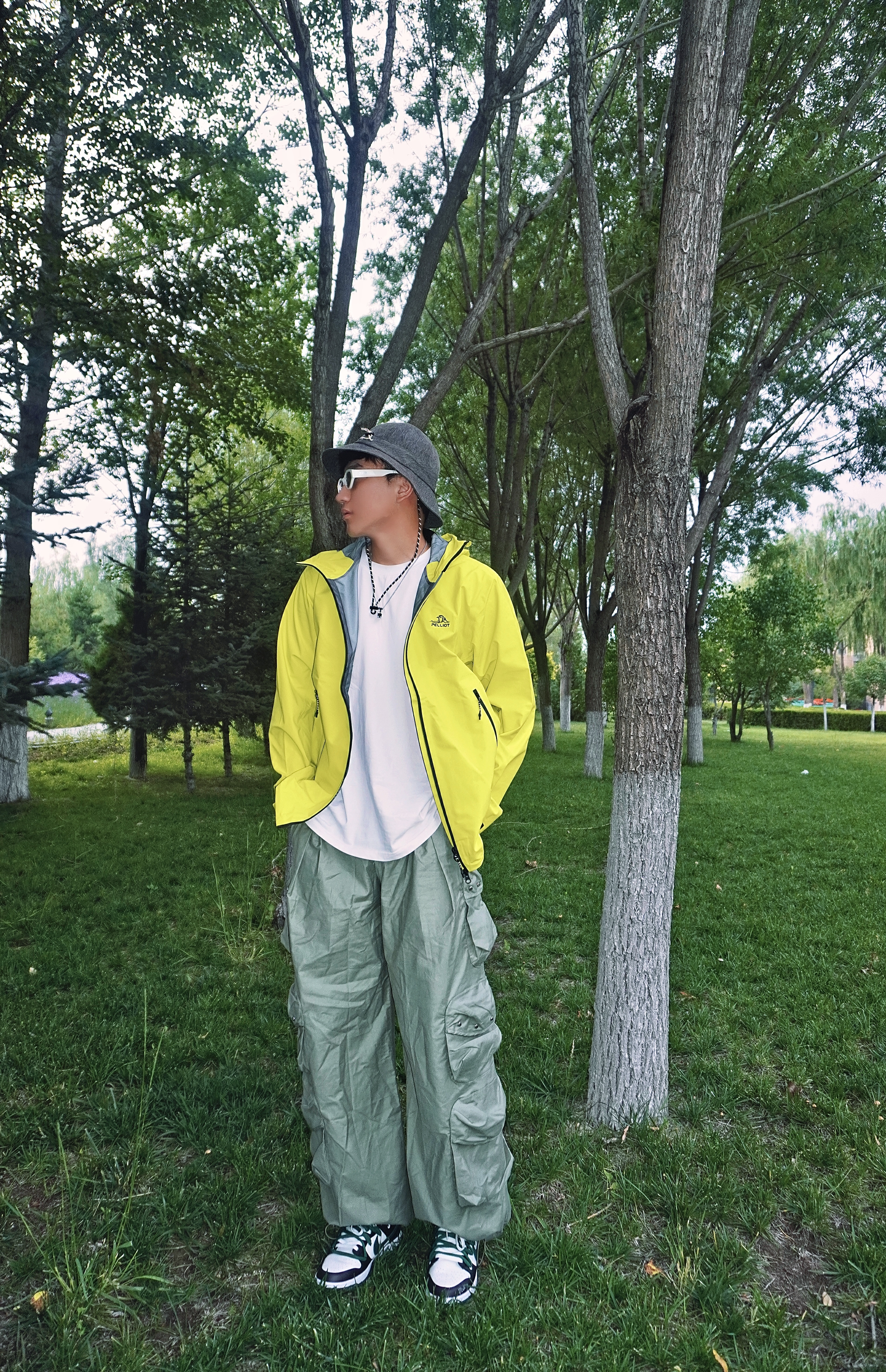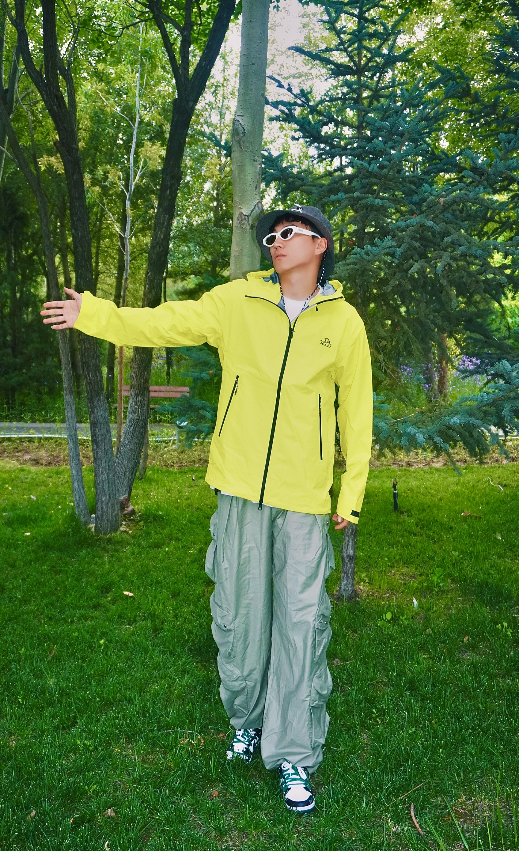 夏天户外游玩怎么穿☀️ 山系徒步𝓸𝓸𝓽𝓭 上身伯希和脉冲绿配色冲锋衣 亮绿色真是属于夏天的颜色🌟 在树林中自己hin特殊 防风风水专业硬核防护✅ 硬壳的材质上身舒适 搭配一条个性的机能裤👖 再来一双休闲的板鞋👟 氛围感不就来了嘛~