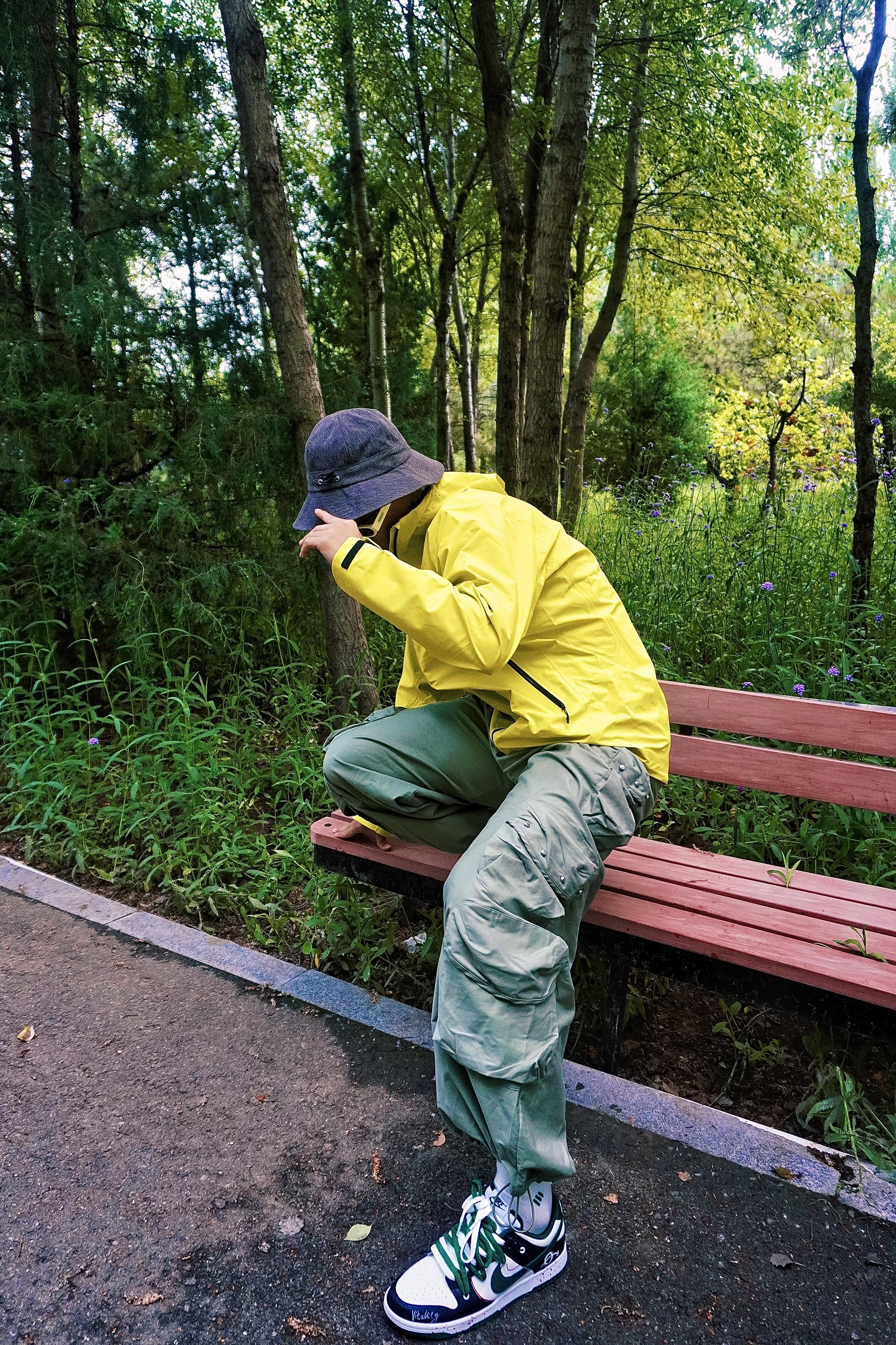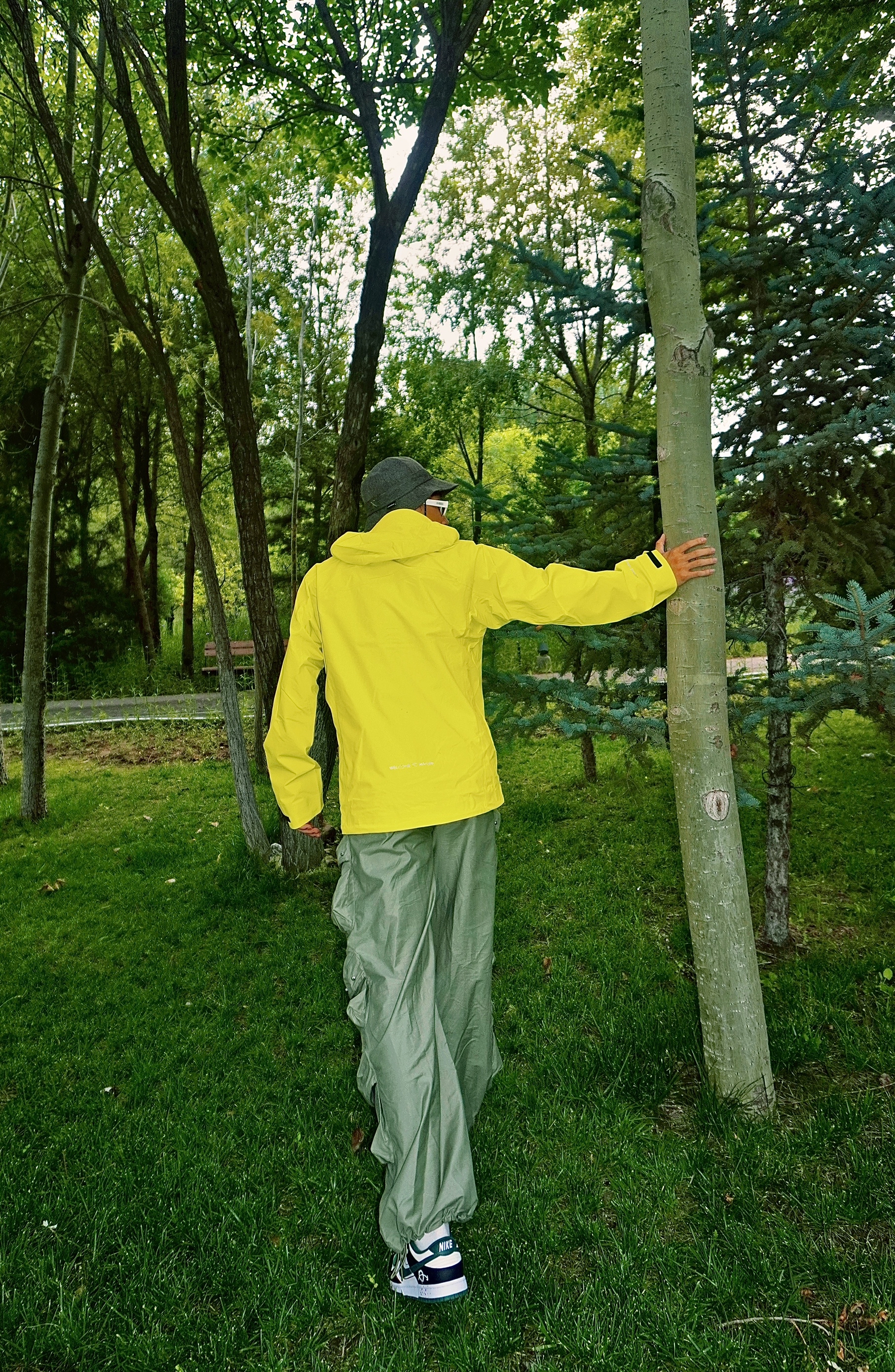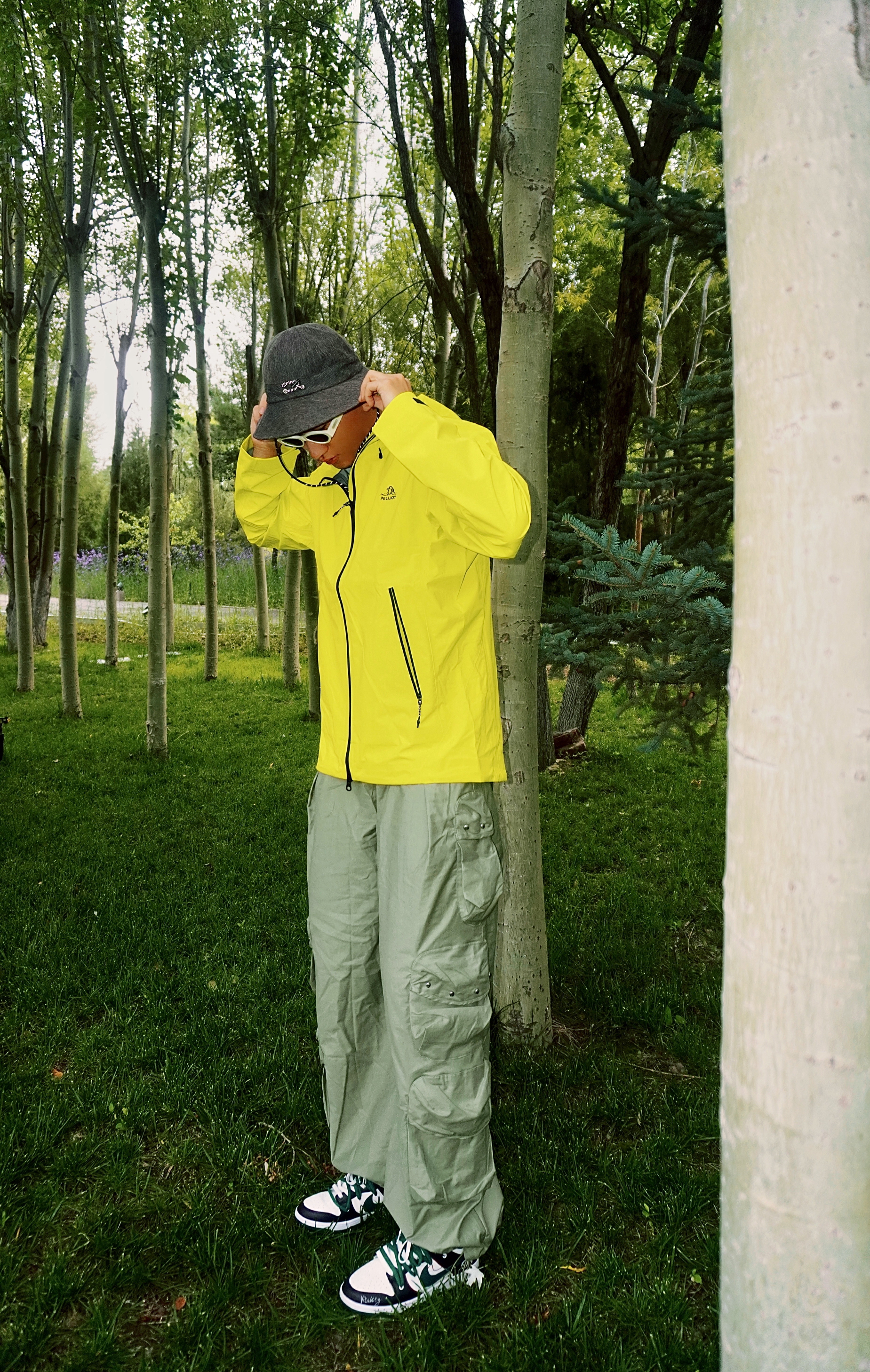 夏天户外游玩怎么穿☀️ 山系徒步𝓸𝓸𝓽𝓭 上身伯希和脉冲绿配色冲锋衣 亮绿色真是属于夏天的颜色🌟 在树林中自己hin特殊 防风风水专业硬核防护✅ 硬壳的材质上身舒适 搭配一条个性的机能裤👖 再来一双休闲的板鞋👟 氛围感不就来了嘛~