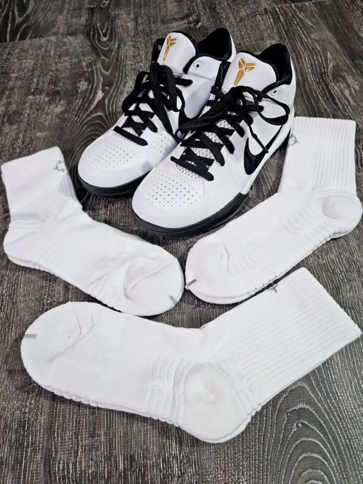 今天上脚的小白袜来自准者,这是一双性价比很高的运动袜哦,简洁又好搭,防滑、缓震、透气等功能性也都有哦,穿着脚感柔软舒适不勒脚,无论是运动还是日常穿都很不错哟! 球鞋是科比4的的gigi配色,白色的球鞋能实战也能压马路,男生女生上脚都好看呀!