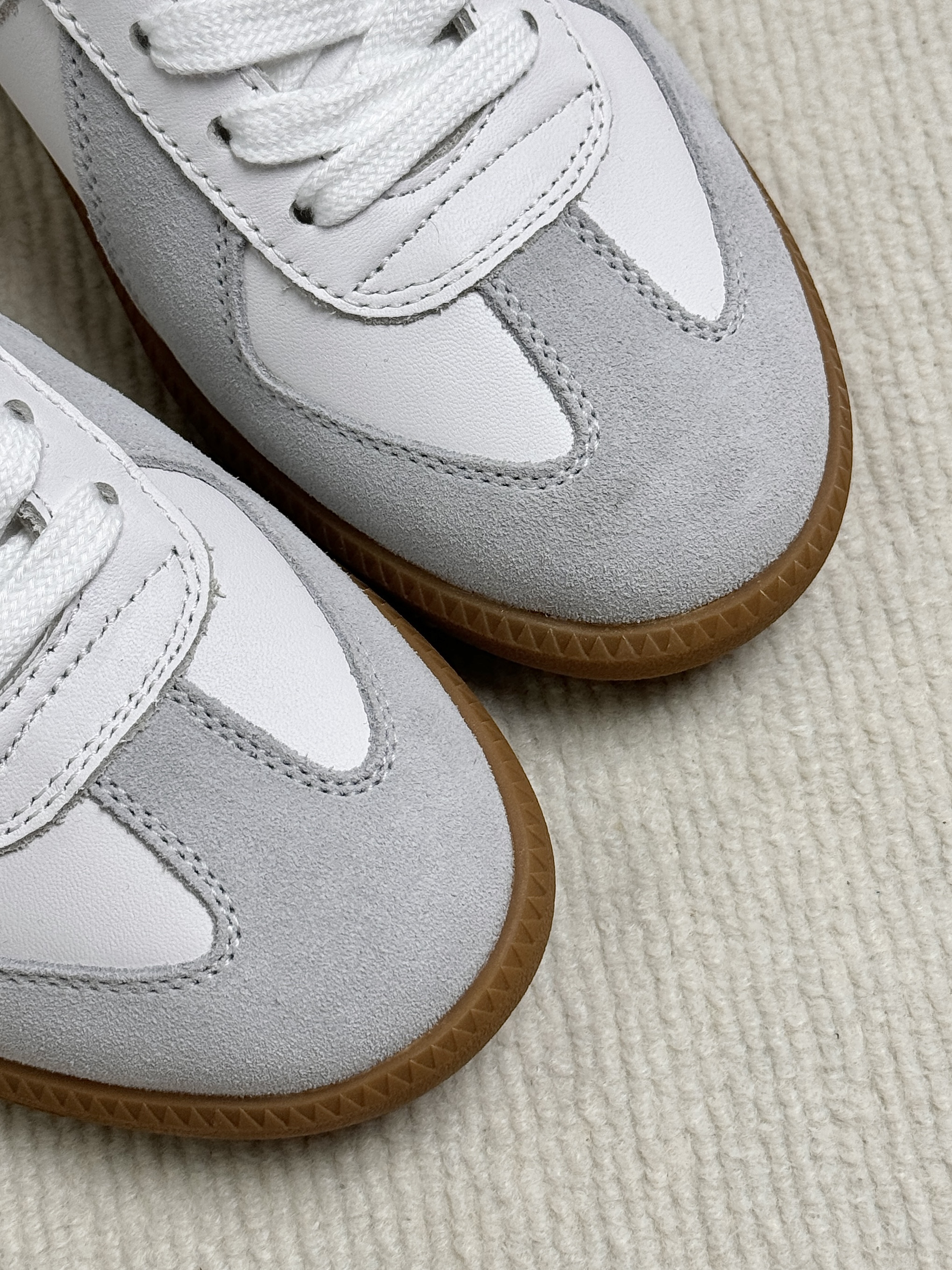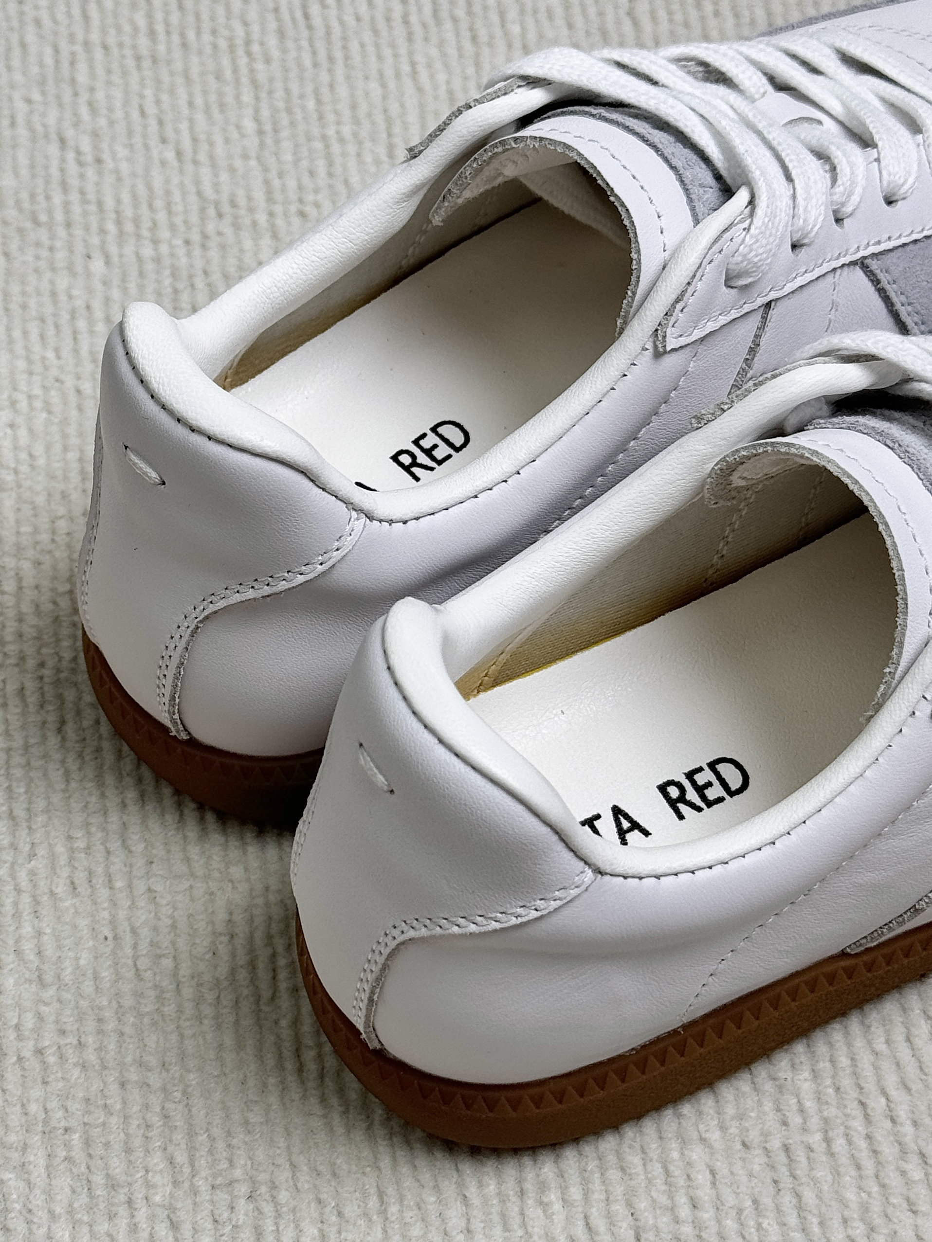 终于找到了带内增高的德训鞋了 外表一点也看不出来 厚底2cm+内增高3.5cm 大部分软弹来自于乳胶的增高鞋垫 穿起来非常舒服,一点都不累脚 白灰的配色休闲又复古 日常通勤搭配休闲裤,裙子,或者短裤都很好看