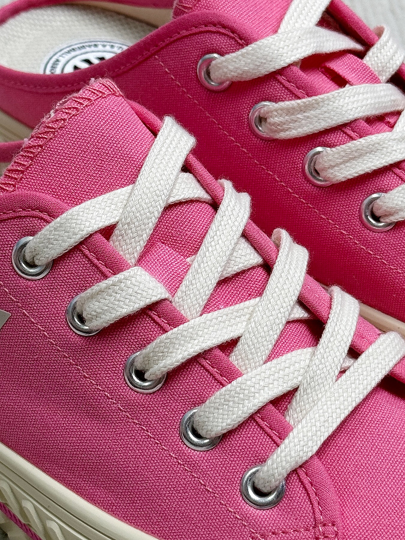 这款帆布包头拖鞋真是充满了夏日多巴胺,它的版型精致小巧,穿上后显得脚部更加纤细。玫红色的帆布鞋面显得青春有活力。厚实的乳胶鞋垫带来的脚感非常的软弹舒服。半托的设计简直就是懒人福音,尤其是出门拿个快递,或者接个孩子啥的,非常方便。