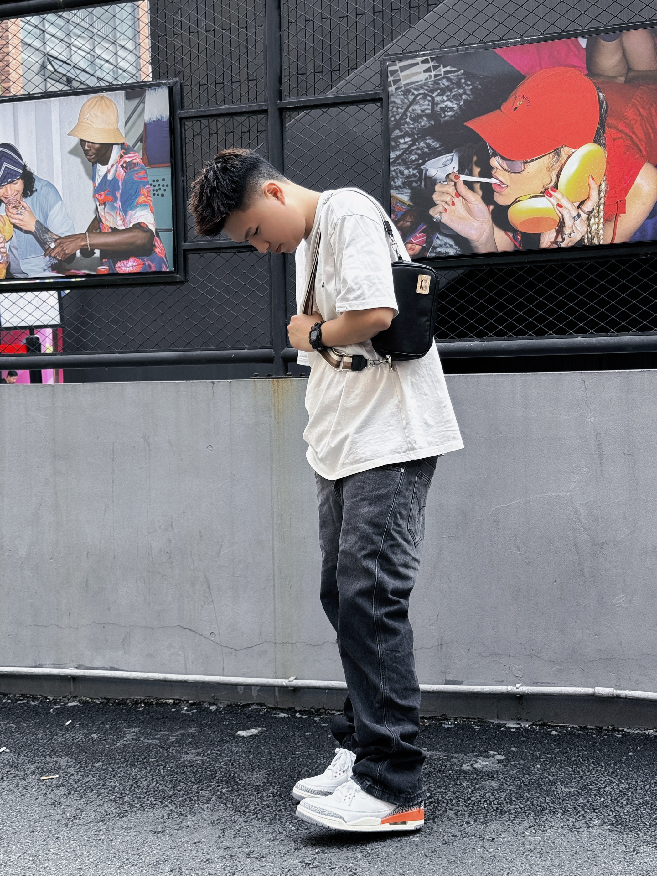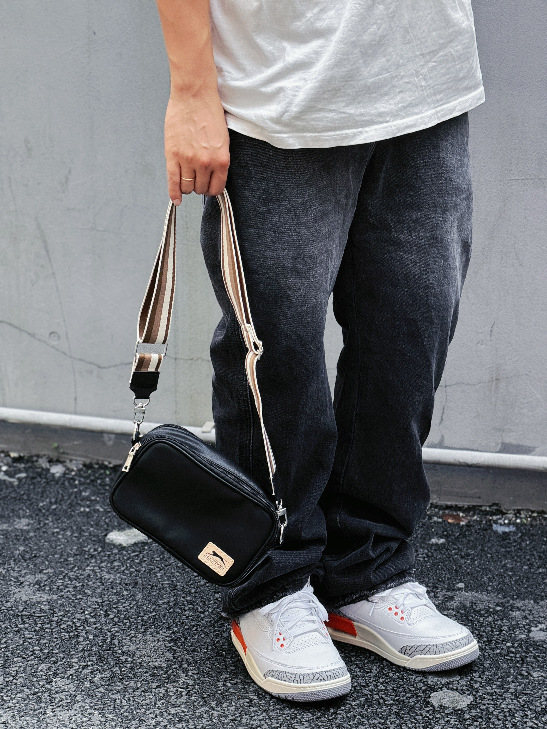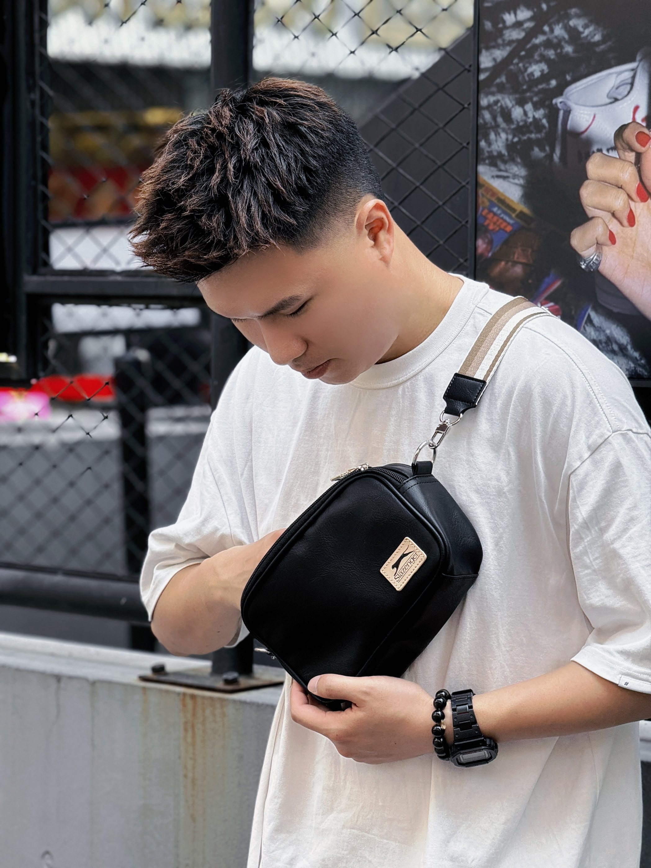 都说东山口潮到风湿💦 满街的靓仔靓女个个都穿的潮酷十足 不用心搭配一下还真不敢来瞎逛🚶 今天上衣选了一件山系主题印花的白T 搭配直筒的做旧水洗黑牛仔裤👖 再来双经典款新配色的球鞋 简简单单但又不失个性😍 出门一趟总不免要带上点小物件 可别塞在裤子口袋里鼓鼓囊囊❌ 不仅难看还容易丢三落四 选择一款稍有设计感的斜挎包就可以解决👌 今天上身这款是最近入手的Slazenger 黑色PU皮+小logo贴...