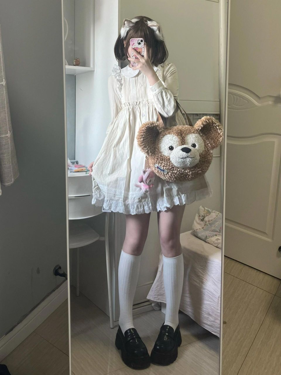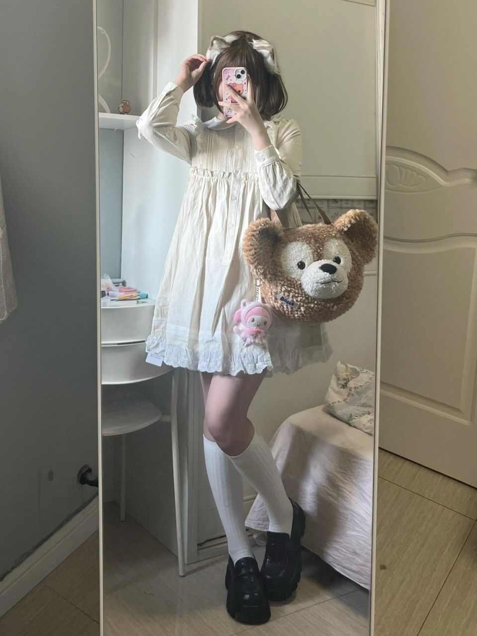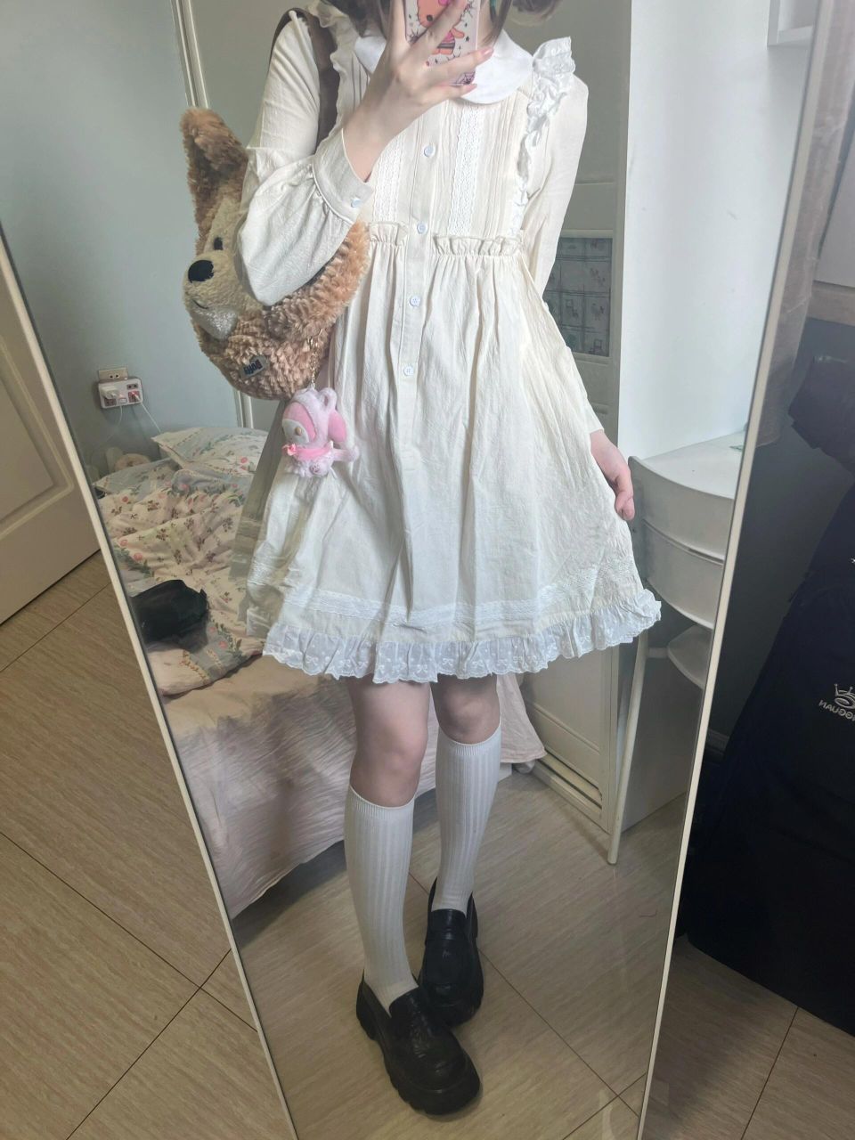 夏日就要穿小连衣裙,这件有种邻家妹妹的感觉,穿撑会比较doll感,不穿撑就很日常的一件娃娃裙!