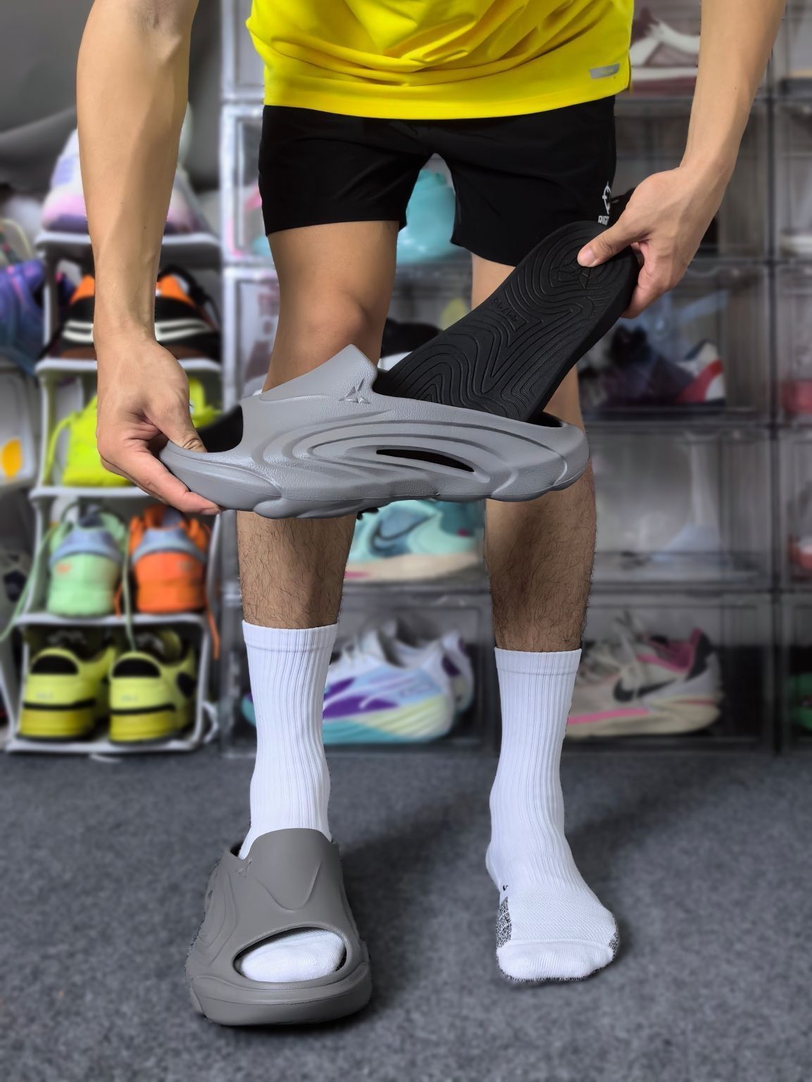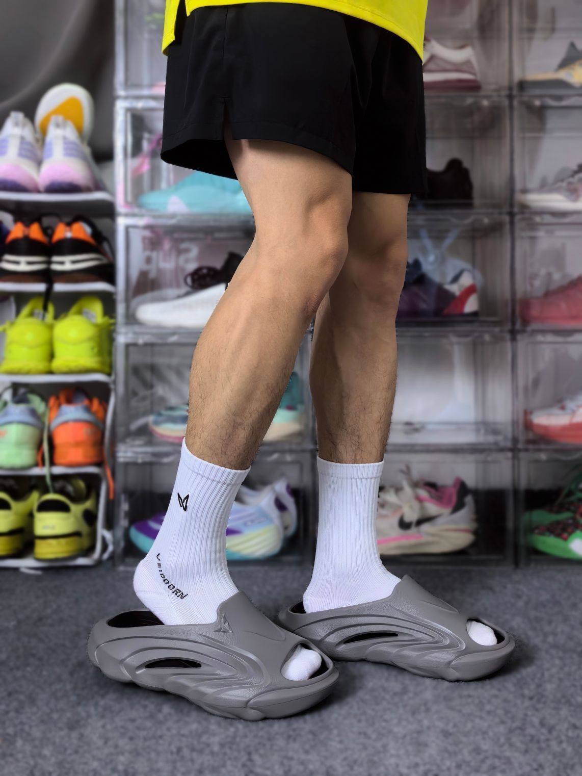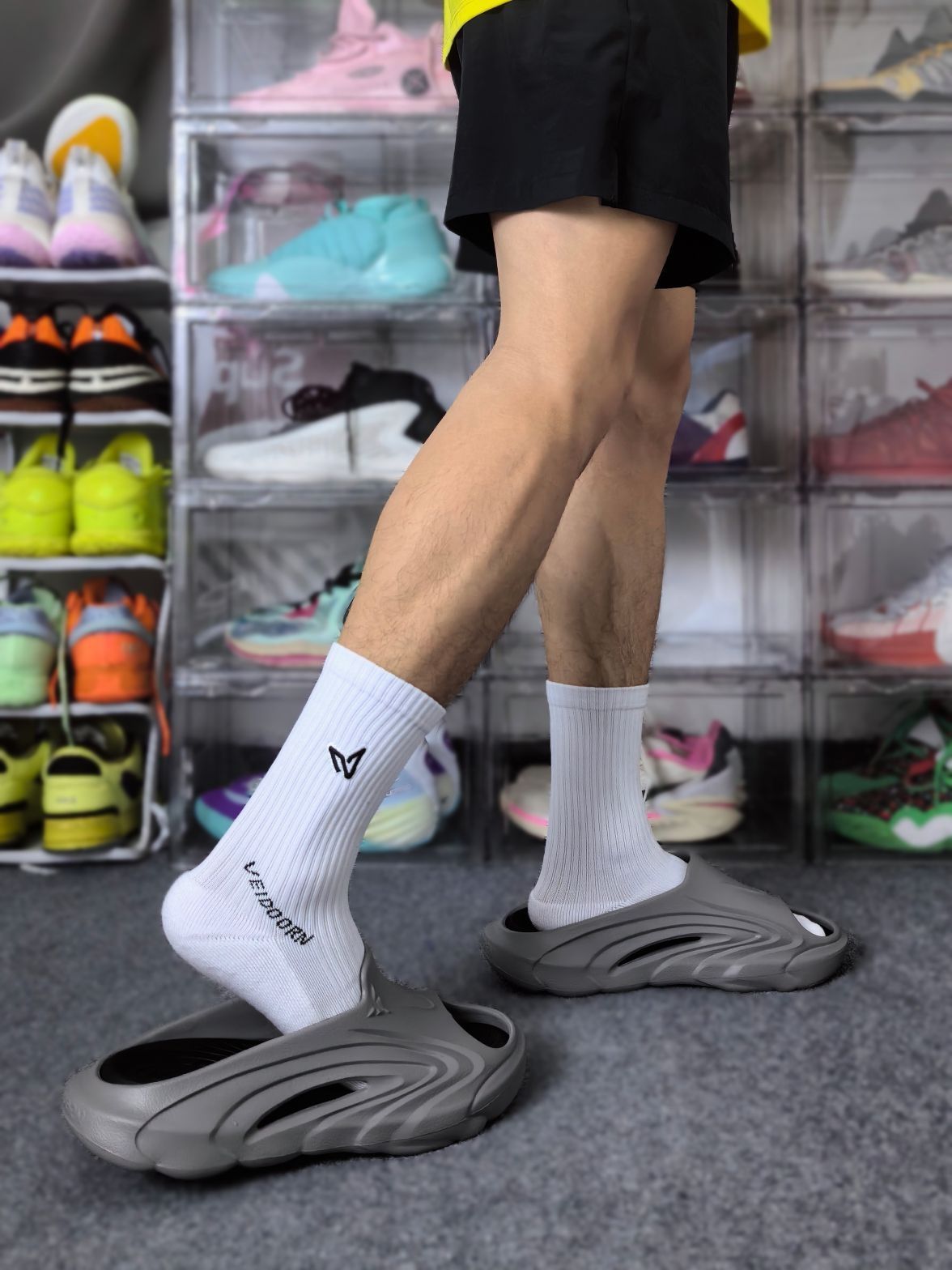 这双来自O维动 VEIDOORN 的精灵拖鞋已经是我第二次回购了!因为他这次出的这个黑灰色穿搭属性太高啦! 灰色的鞋外壳搭配黑色的内嵌式鞋垫,外壳是任性和耐磨较好的发泡材料,可拆卸的鞋垫则是用到了拥有Q弹脚感的超临界材料! 行走起来里柔外刚,很适合户外出街,可以搭配日常的休闲装出门!这双拖鞋按照正常的尺码选择即可,不需要特意拍大一码!