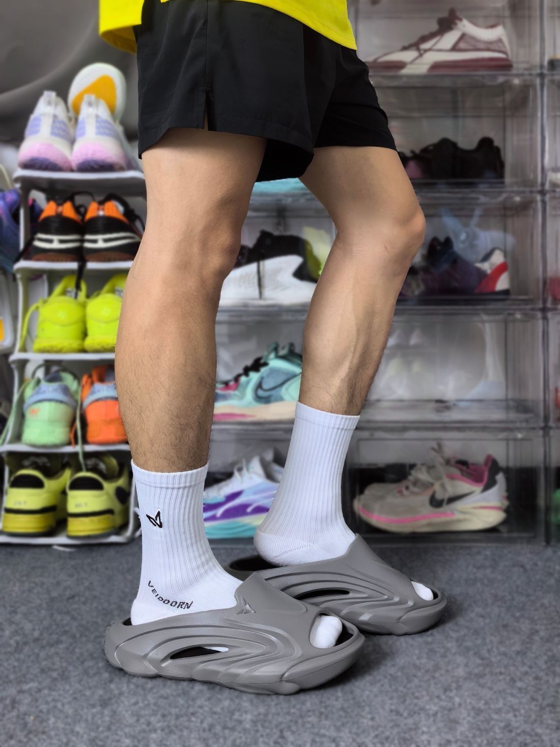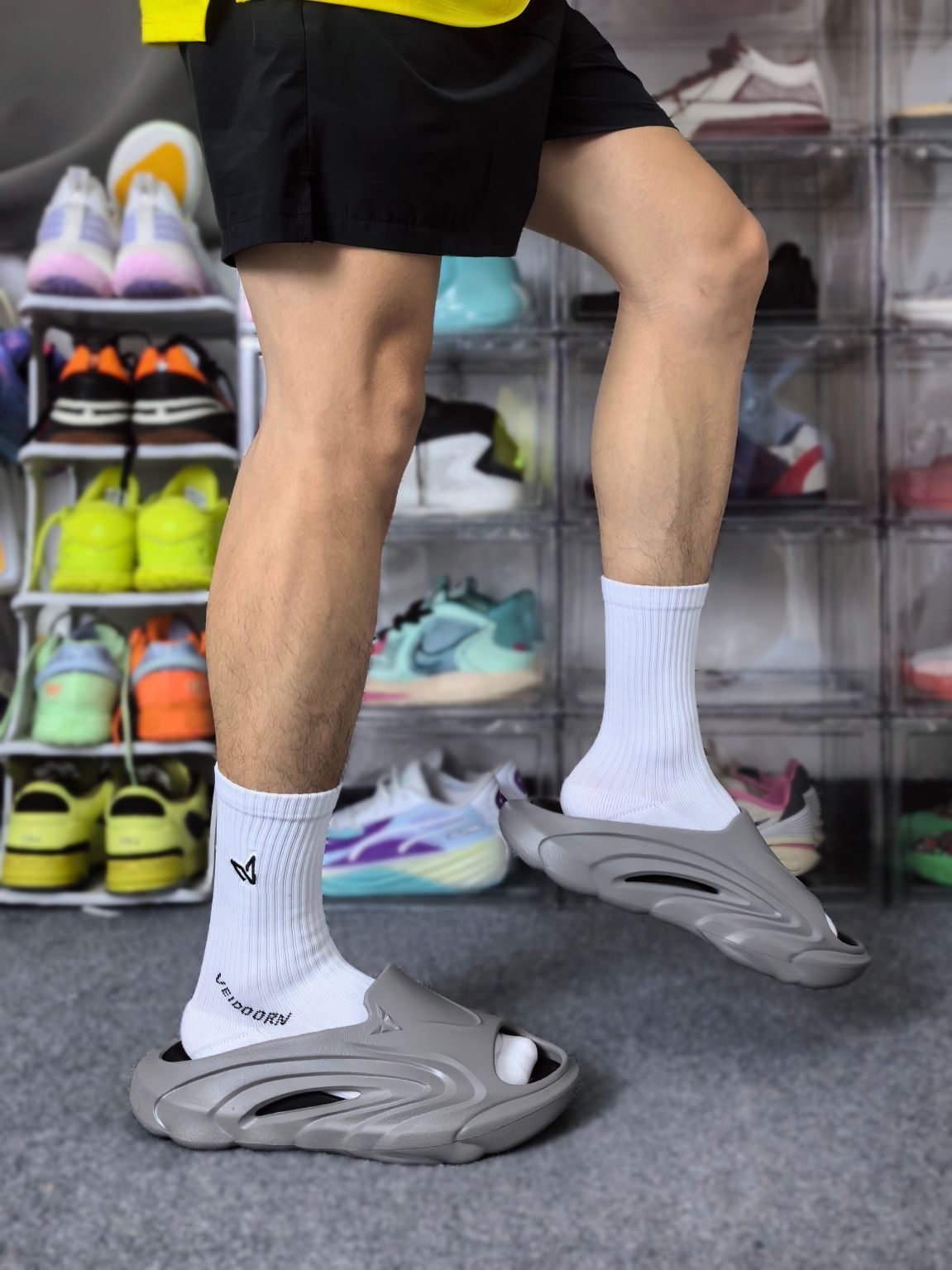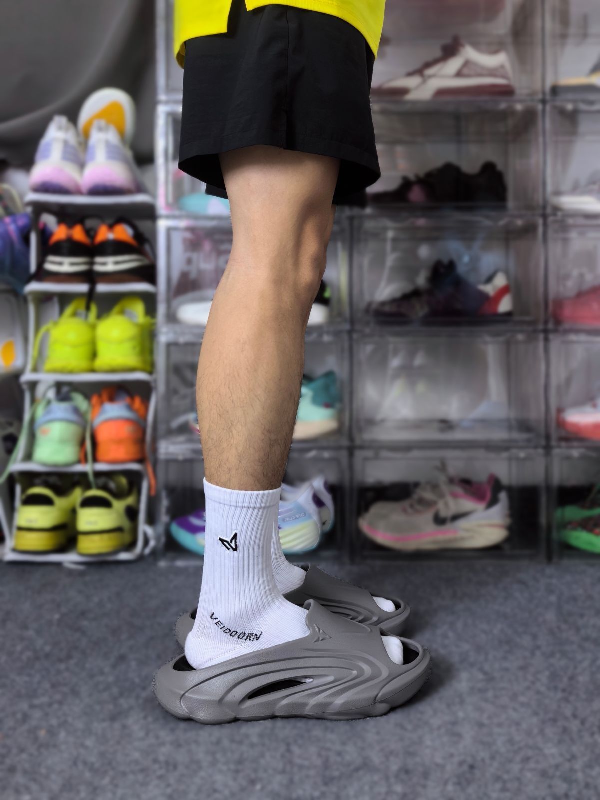 这双来自O维动 VEIDOORN 的精灵拖鞋已经是我第二次回购了!因为他这次出的这个黑灰色穿搭属性太高啦! 灰色的鞋外壳搭配黑色的内嵌式鞋垫,外壳是任性和耐磨较好的发泡材料,可拆卸的鞋垫则是用到了拥有Q弹脚感的超临界材料! 行走起来里柔外刚,很适合户外出街,可以搭配日常的休闲装出门!这双拖鞋按照正常的尺码选择即可,不需要特意拍大一码!