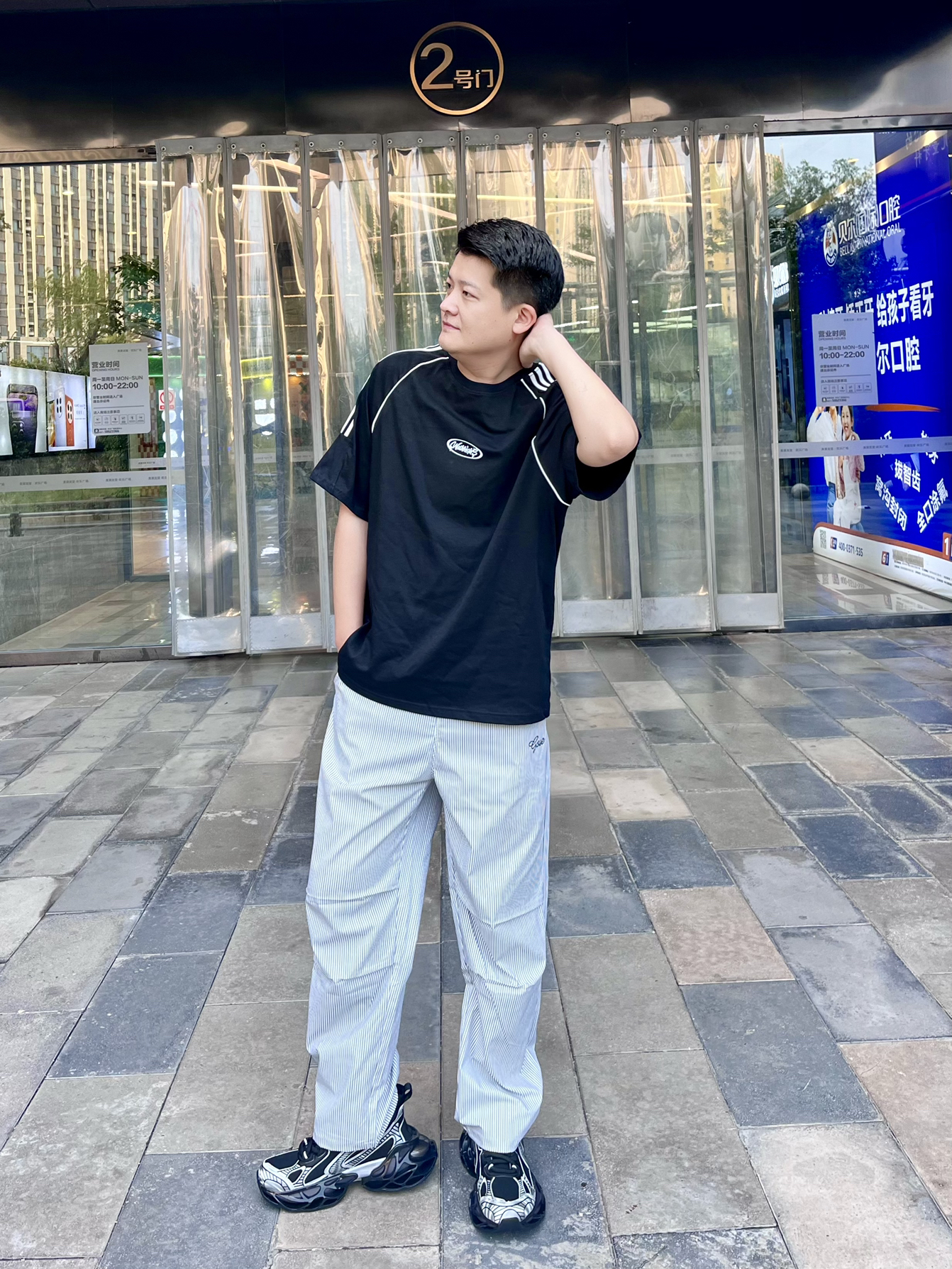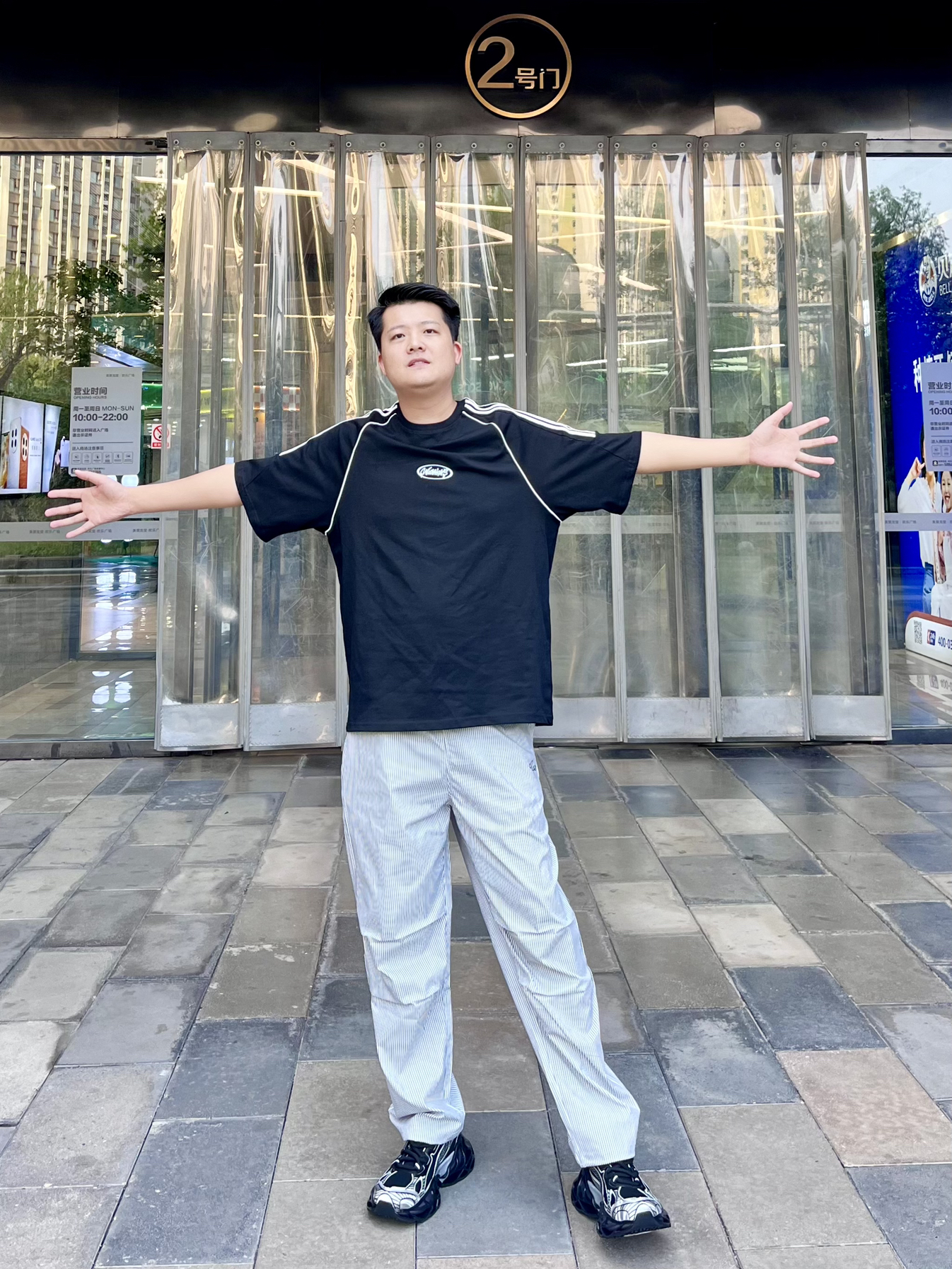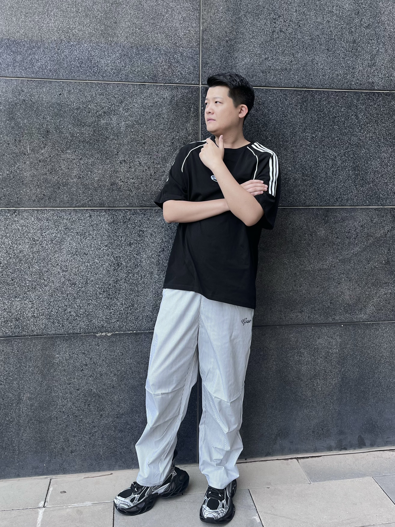 大家好👋这里是Akirasen51 身高:186cm 体重:85kg 尺码:2XL 👕:条纹简约风格t恤跟裤子搭配,适合夏天 🩳:选择了伞兵式工装裤,颜色也挺适合夏天穿,而且穿着也挺凉快,出游不惧热 👟:夏天鞋子我首先选择透气性好的,黑白色和这一身也挺搭配