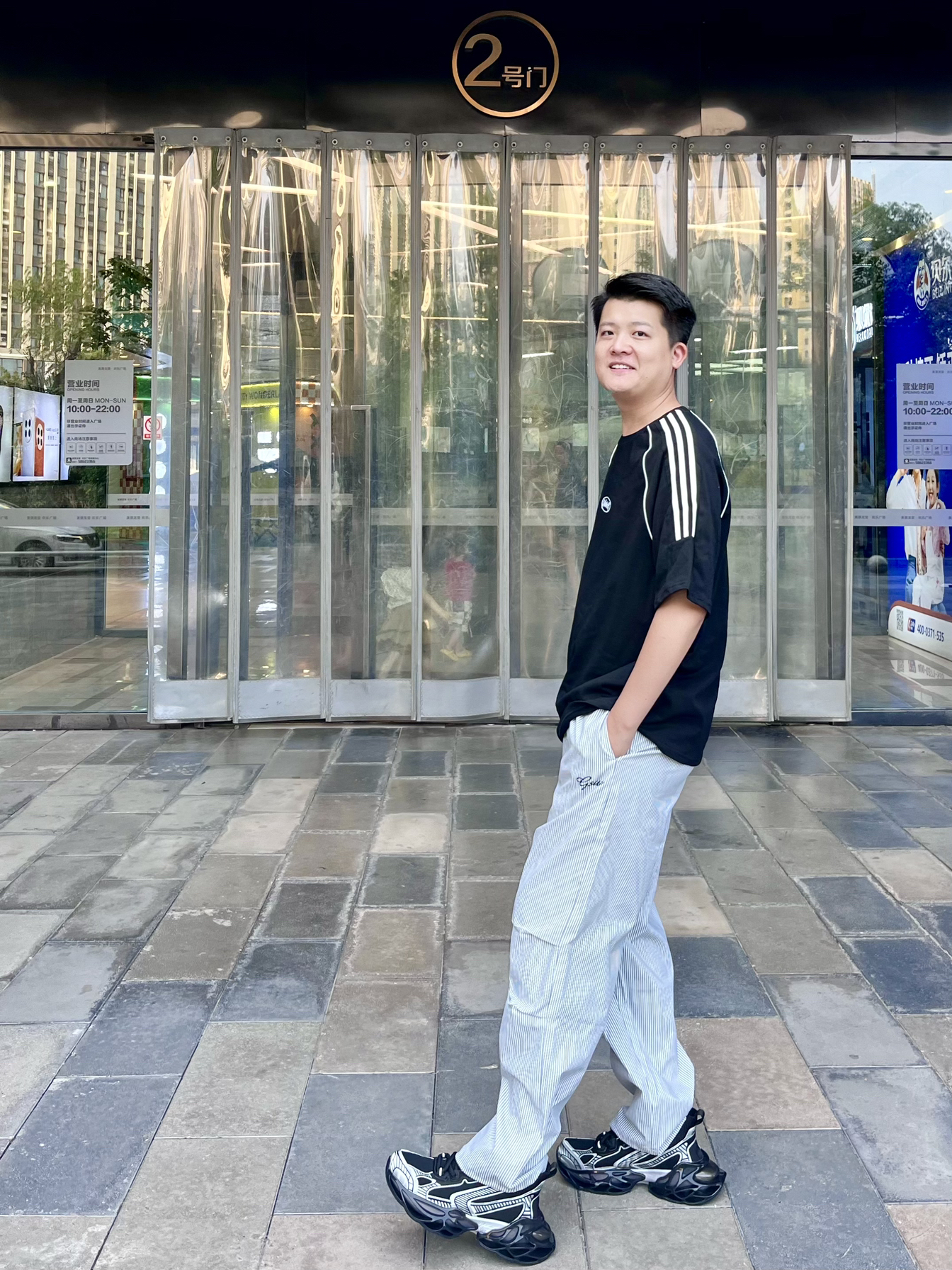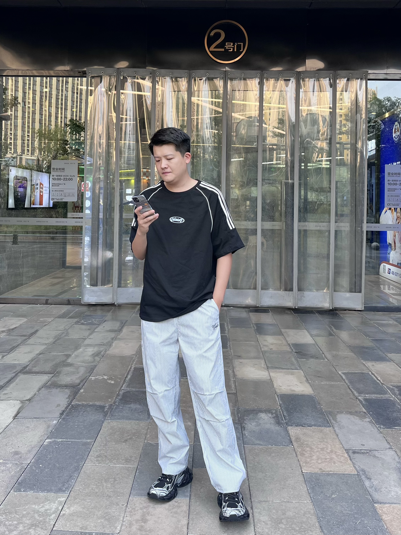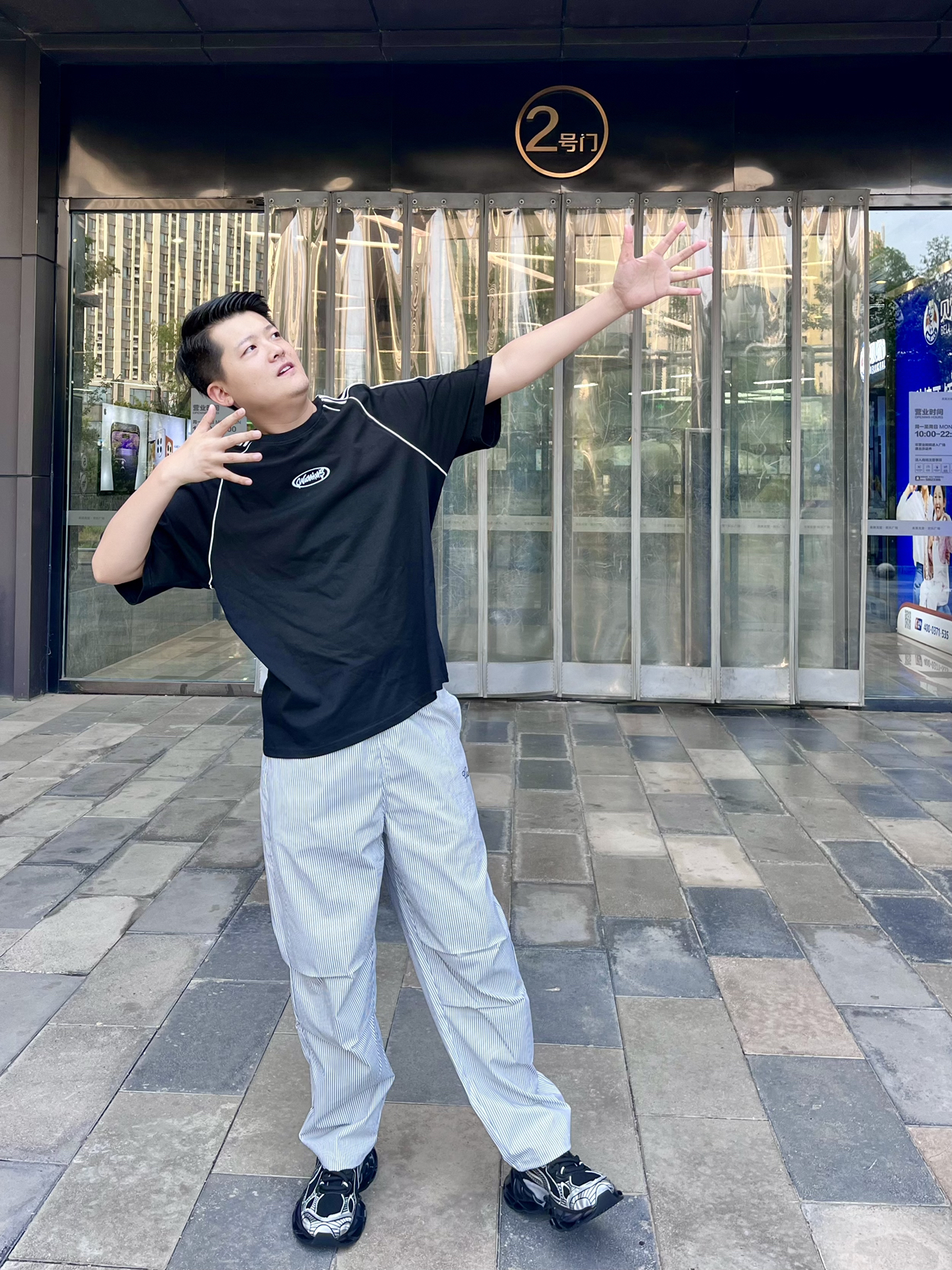 大家好👋这里是Akirasen51 身高:186cm 体重:85kg 尺码:2XL 👕:条纹简约风格t恤跟裤子搭配,适合夏天 🩳:选择了伞兵式工装裤,颜色也挺适合夏天穿,而且穿着也挺凉快,出游不惧热 👟:夏天鞋子我首先选择透气性好的,黑白色和这一身也挺搭配