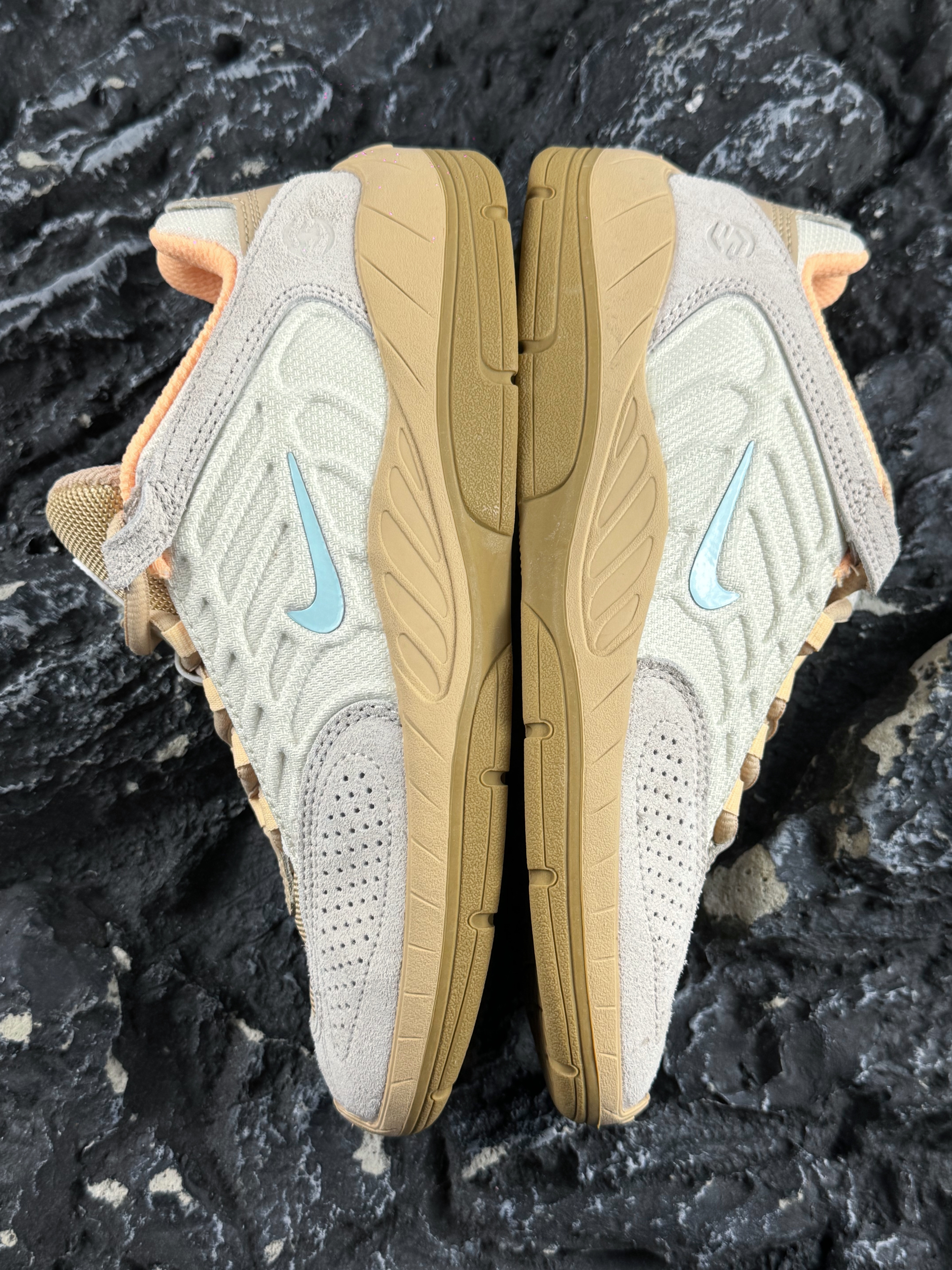 开箱即分享 今天和大家分享一款高颜复古球鞋 就是这双Nike Sb Vertebrae morden comfort 时尚复古男鞋 米黄色 实物开箱还是蛮惊艳的 加上复古的版型,颜值方面还是很戳我的 鞋面采用了皮革和麂皮拼接而成 质感不错,上脚的舒适度和透气性在线 外底则是耐磨的橡胶材质,防滑抓地问题不大 尺码不偏,正码