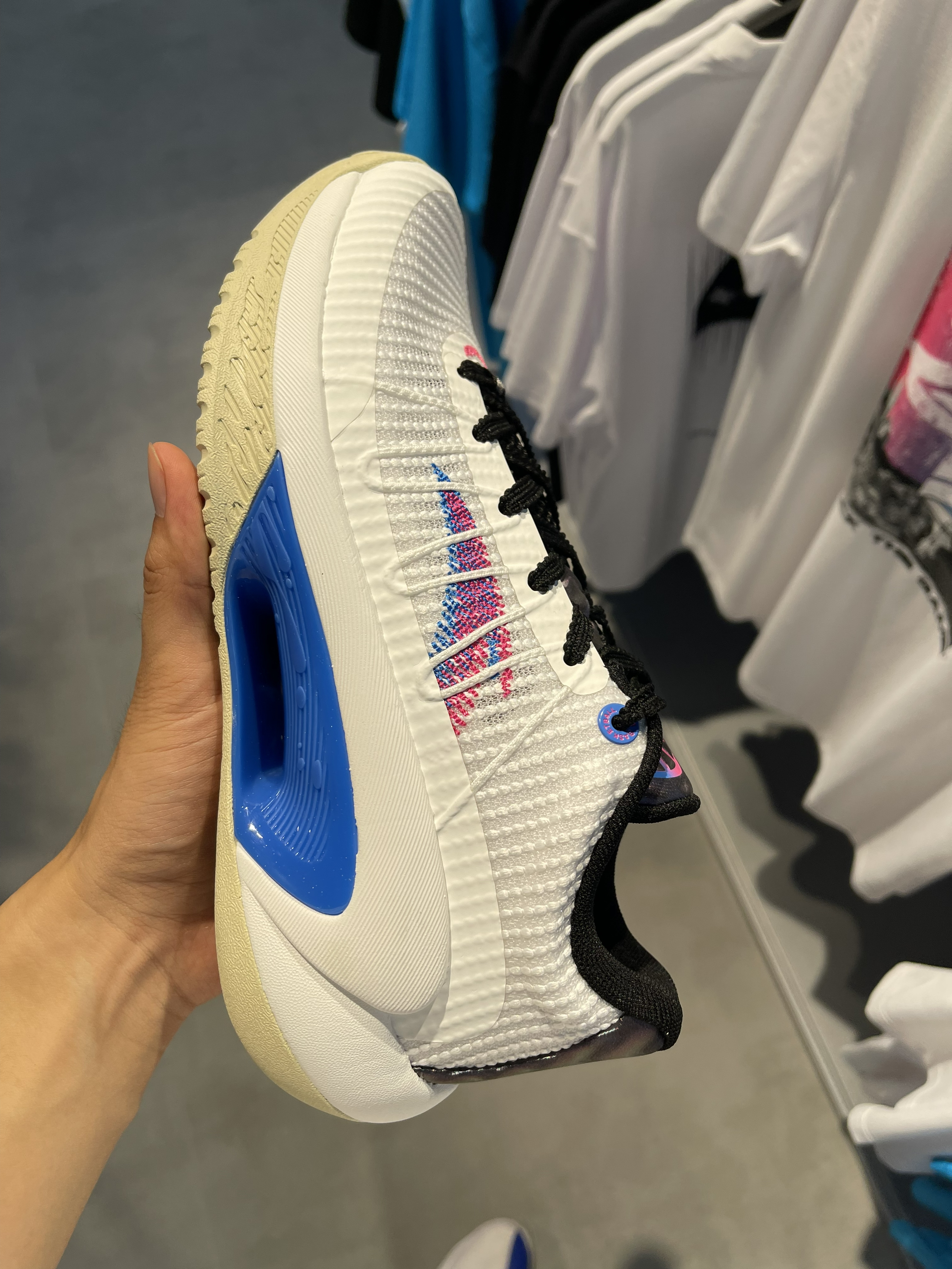 今天和大家分享一下 三分雨 拿到这双鞋还是有点惊艳的,这个设计比较新颖。 鞋子的鞋面设计的很简洁,没有过多的色彩,鞋面很透气,中足的镂空处减轻了鞋子重量,橡胶大底耐磨也不错。