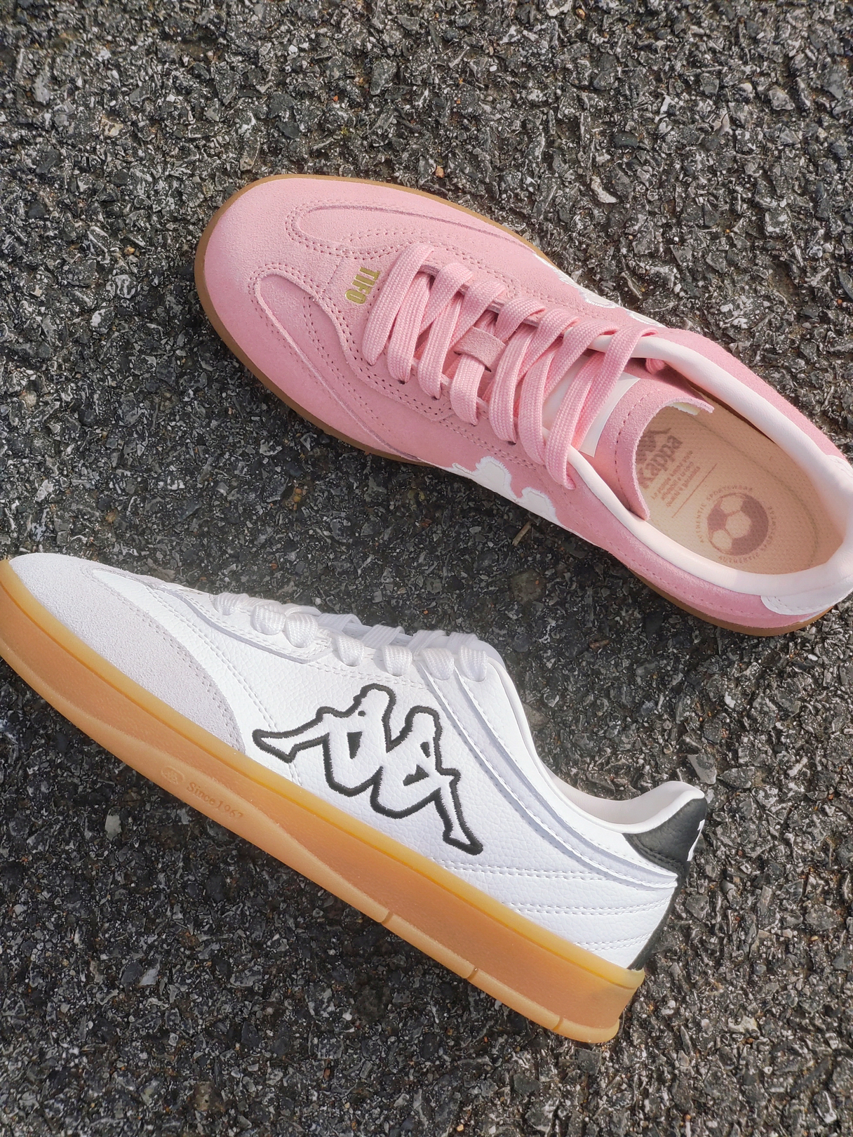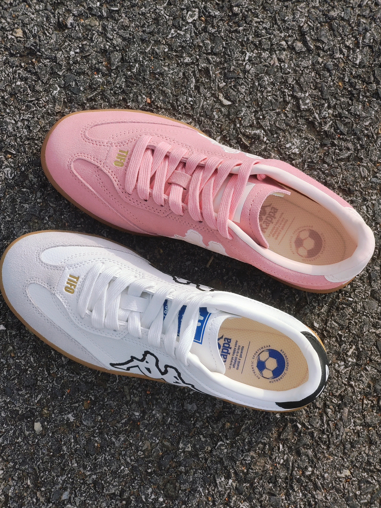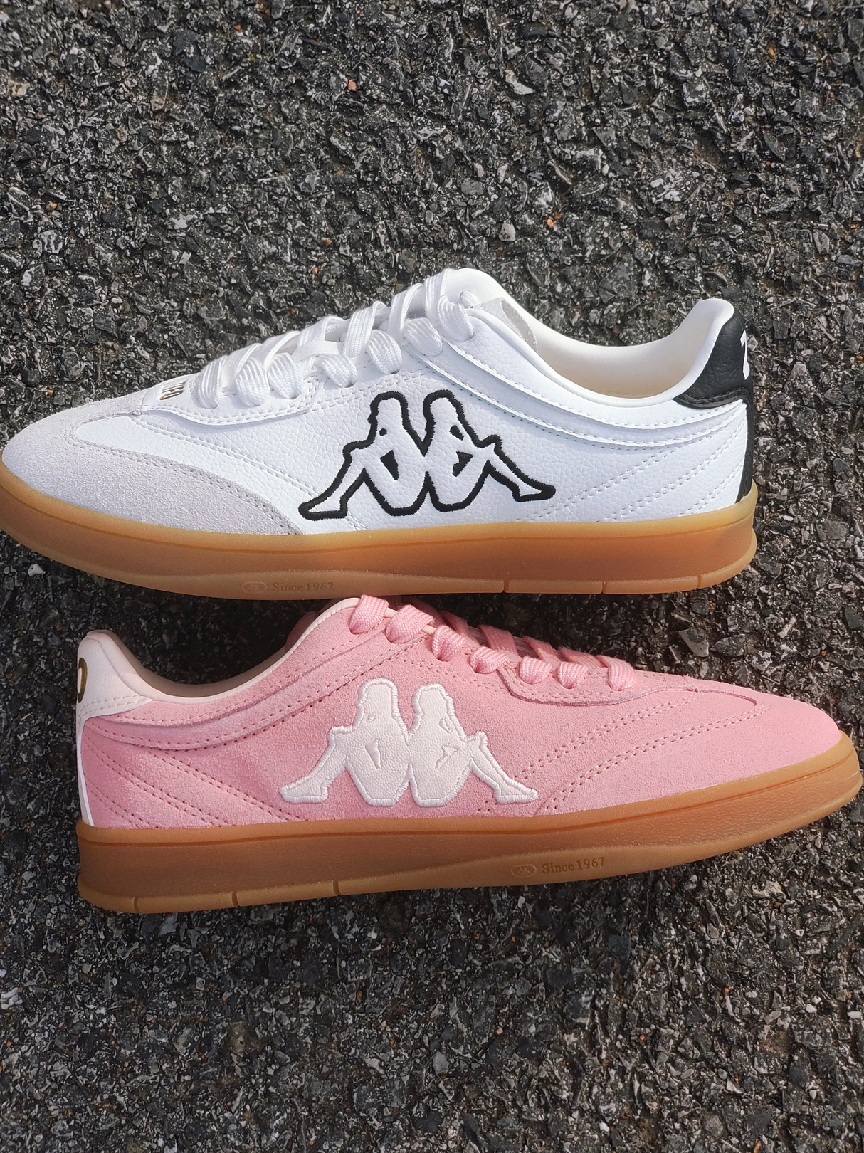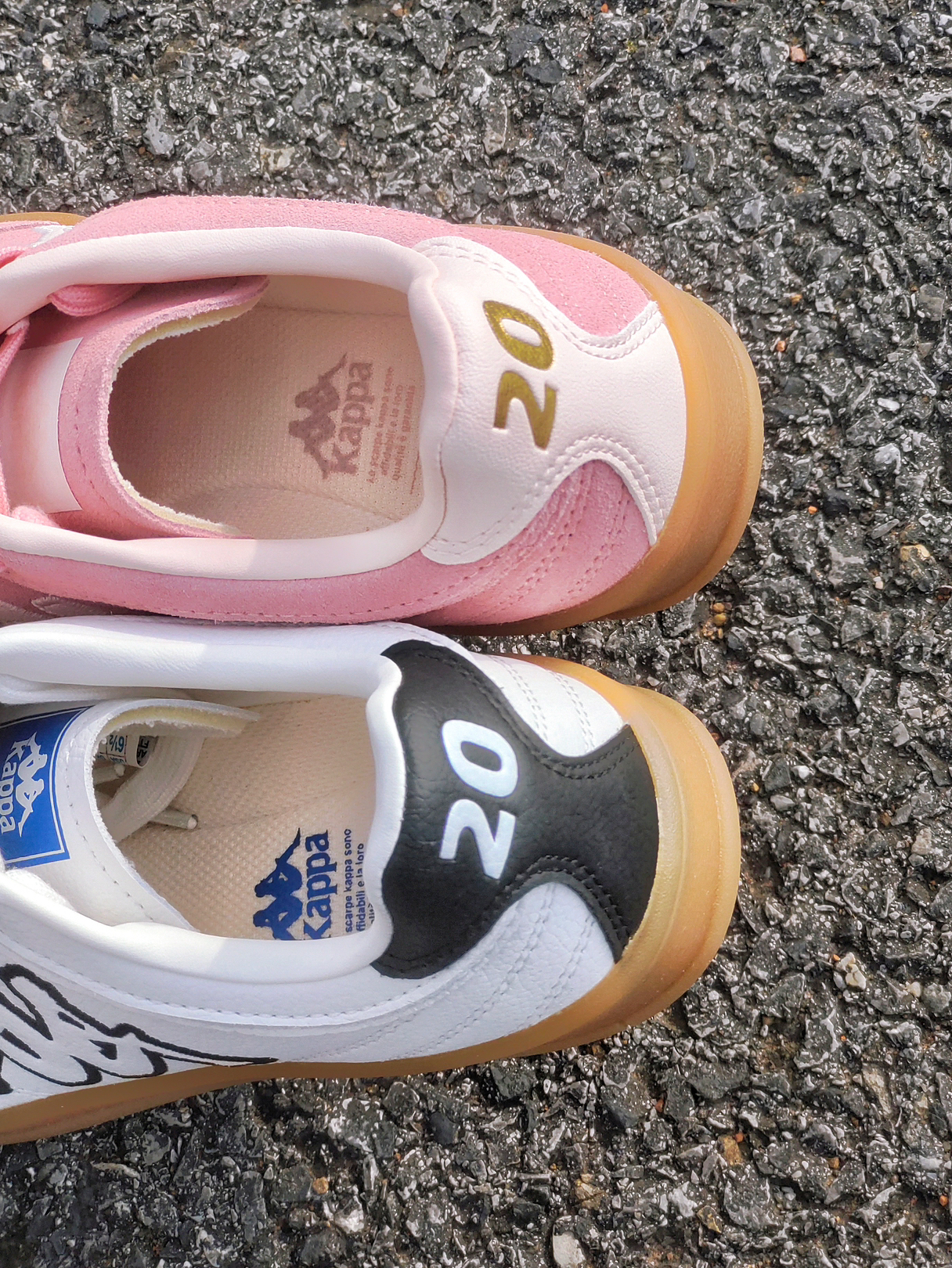 哈喽,今天给大家介绍俩双kappa得训鞋 颜值都挺不错的,一双是白色为主的,比较百搭,另一双是粉色为主的颜色比较甜,粉嫩嫩的 鞋子上脚舒适度还不错,鞋底很软 搭配一条小长裙,真嘟很显温柔 开学好鞋找到啦。