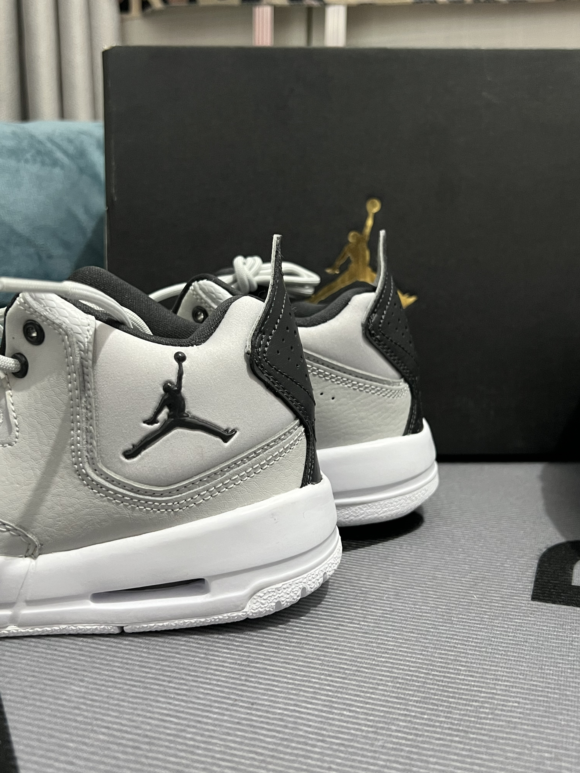 这款鞋很好看 鞋侧和鞋舌上的飞人logo不要太帅😍 鞋型设计的很饱满 包裹性很强 灰黑配色很经典 特别百搭 价格在200-300之间 可以入🌹🌹