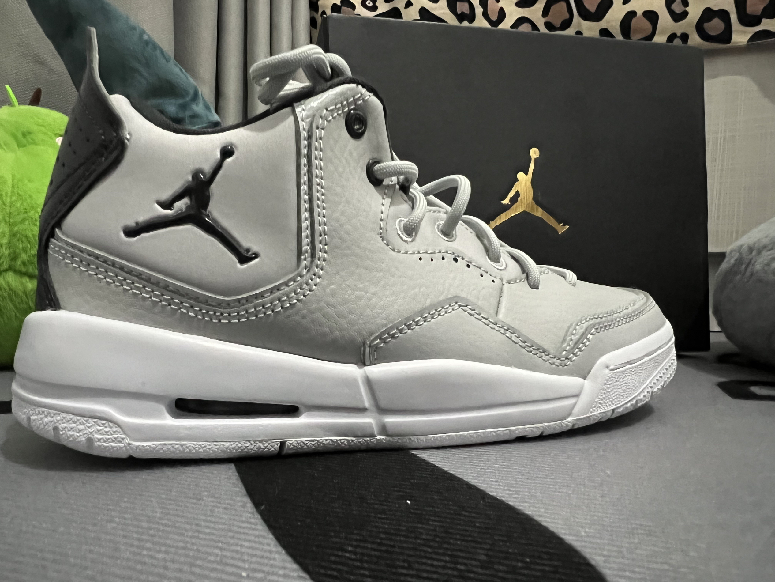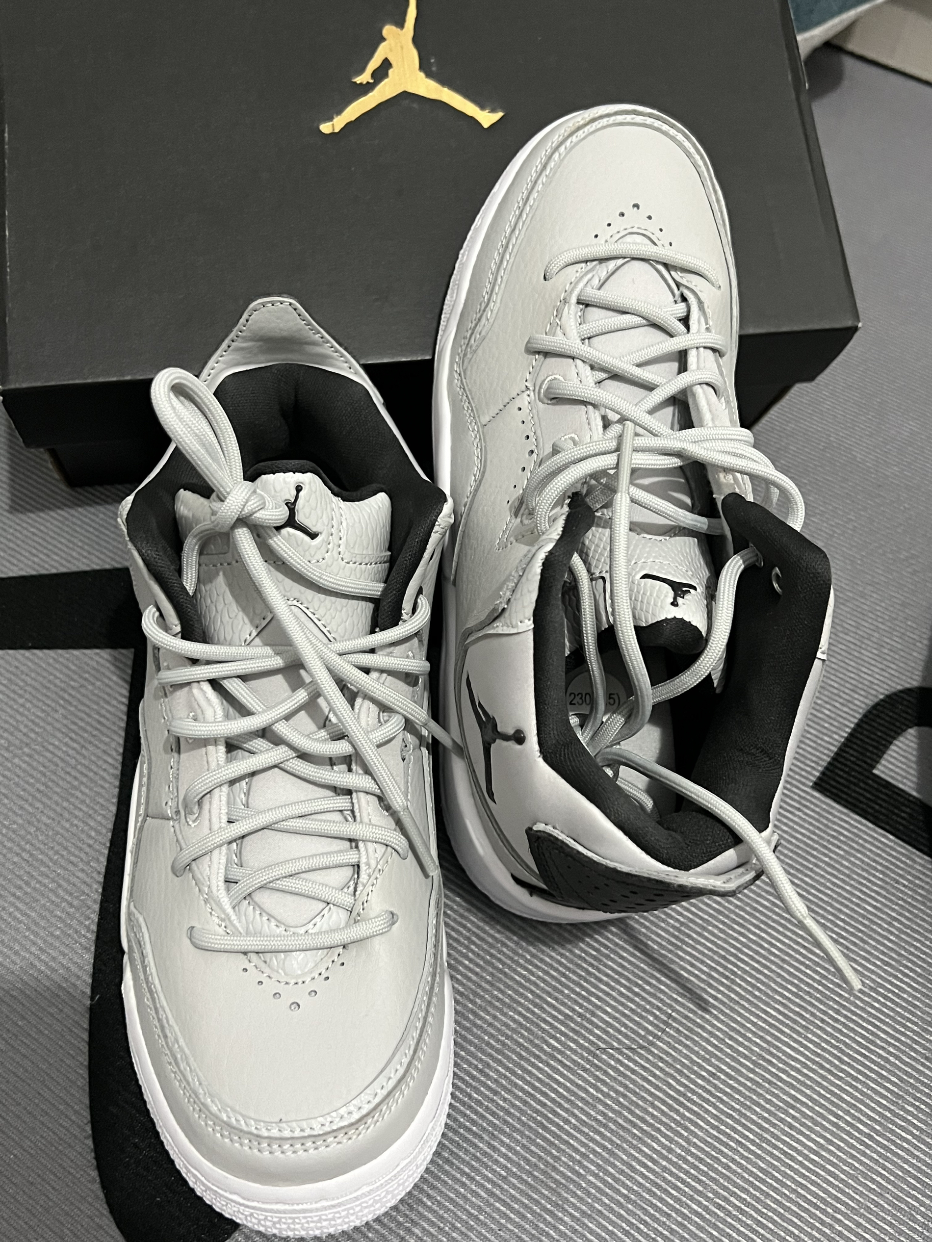 本篇笔记关联了Jordan Courtside 23 运动休闲鞋 防踢缓震潮流复古防滑耐磨支撑合成革织物人造革气垫 GS/灰色/黑色等商品,为用户提供真实的使用体验和购买参考。