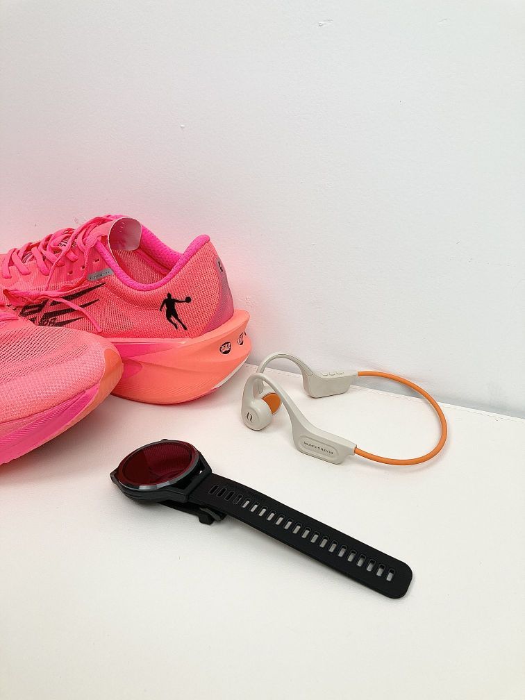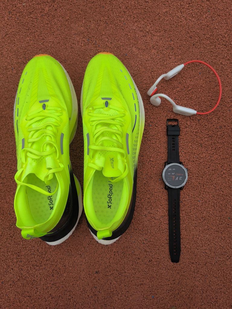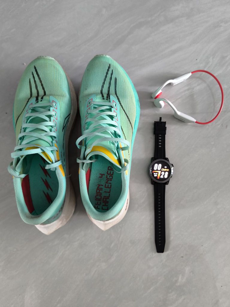 耳机:耳机是度享x7骨传导耳机,挂耳式在跑步过程中也不用担心耳机会掉落。还是不入耳设计,对耳朵非常友好,这款耳机配备了ipx8级防水,可以游泳时佩戴。并且还自带内存可以自己下载音乐导入耳机,平时也可以连接蓝牙通话,实用性非常强 手表:手表是度享ACG运动手表,运动模式可以自己添加,我拿它跑了一段时间,它的整体使用感受还是不错的,实时配速、心率、平均配速,和运动记录都是比较准确的。 鞋子:鞋子是特步...
