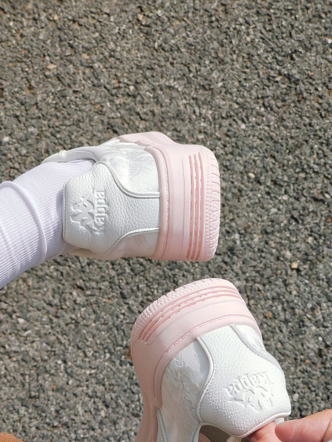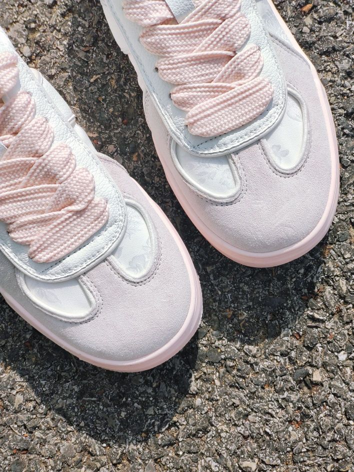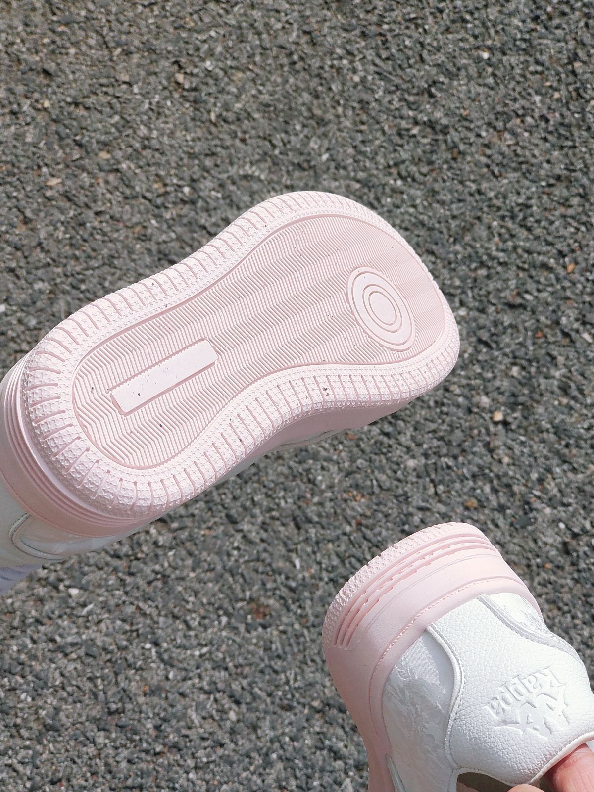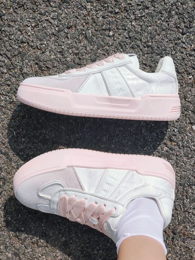 是一款很温柔的配色,侧面的丝绸吼美 这双kappa奶油粉连鞋底都是粉嫩嫩的 很百搭的一款鞋子,日常搭配一条小裙子很少女 还是很不错的