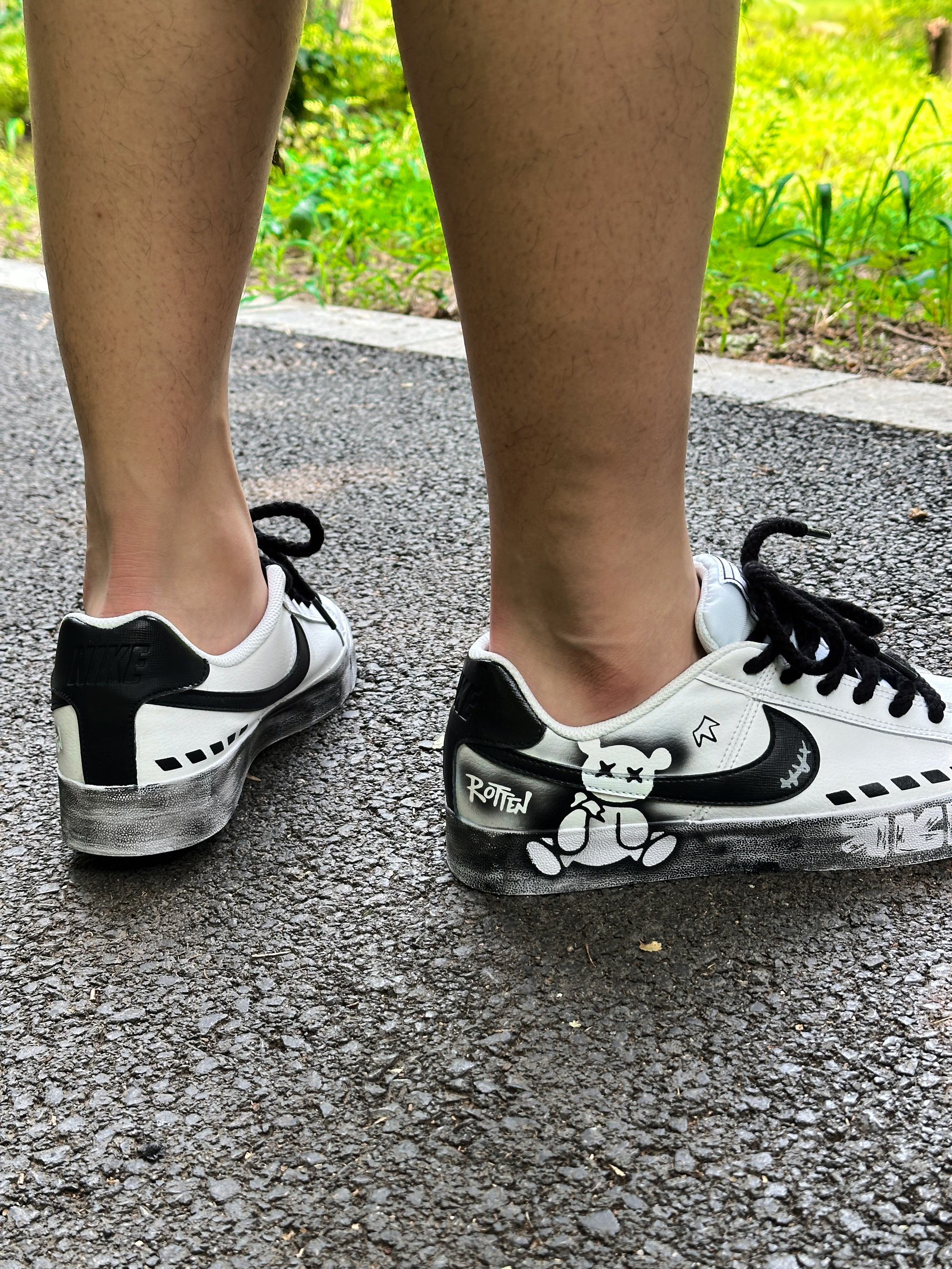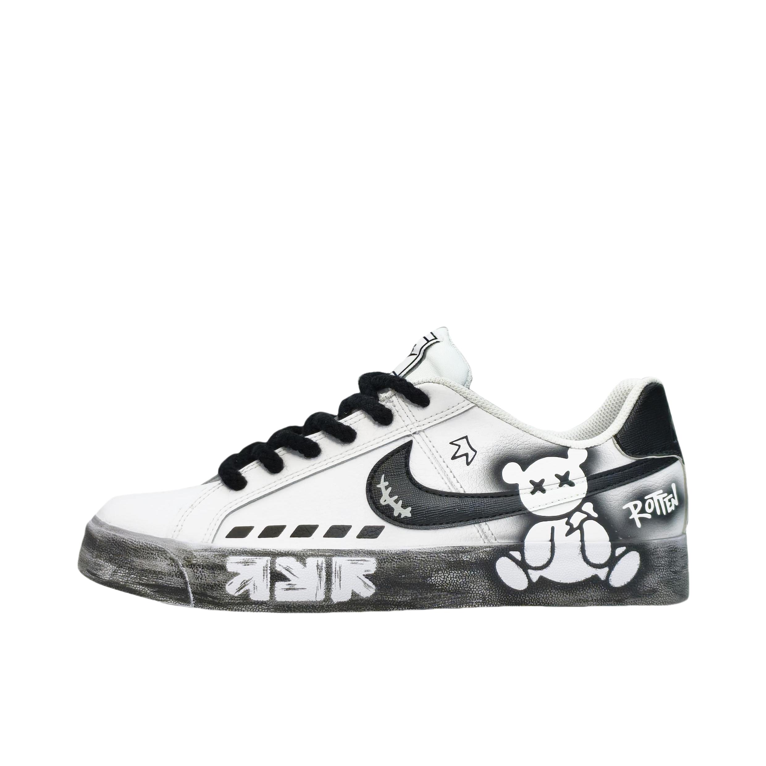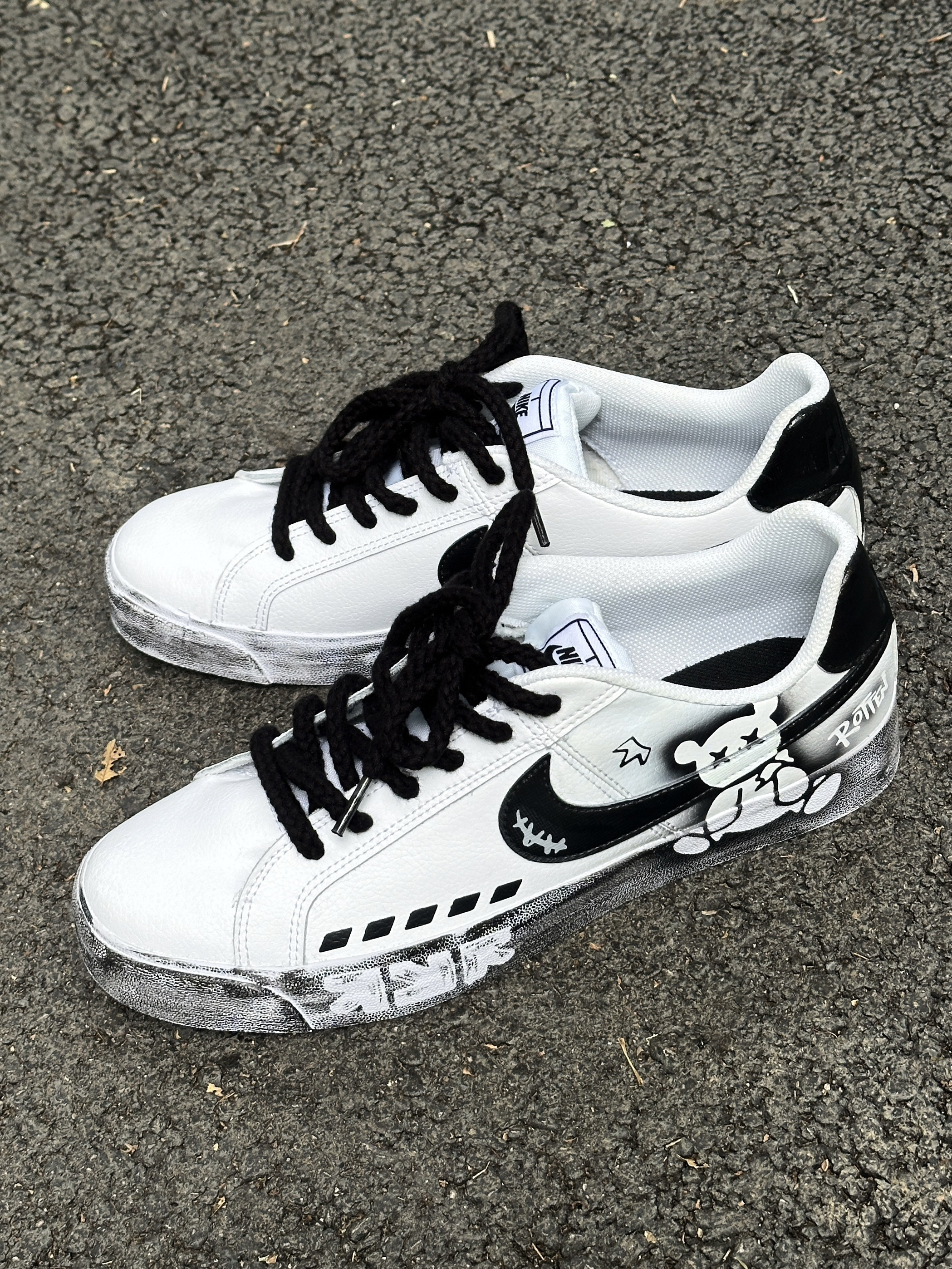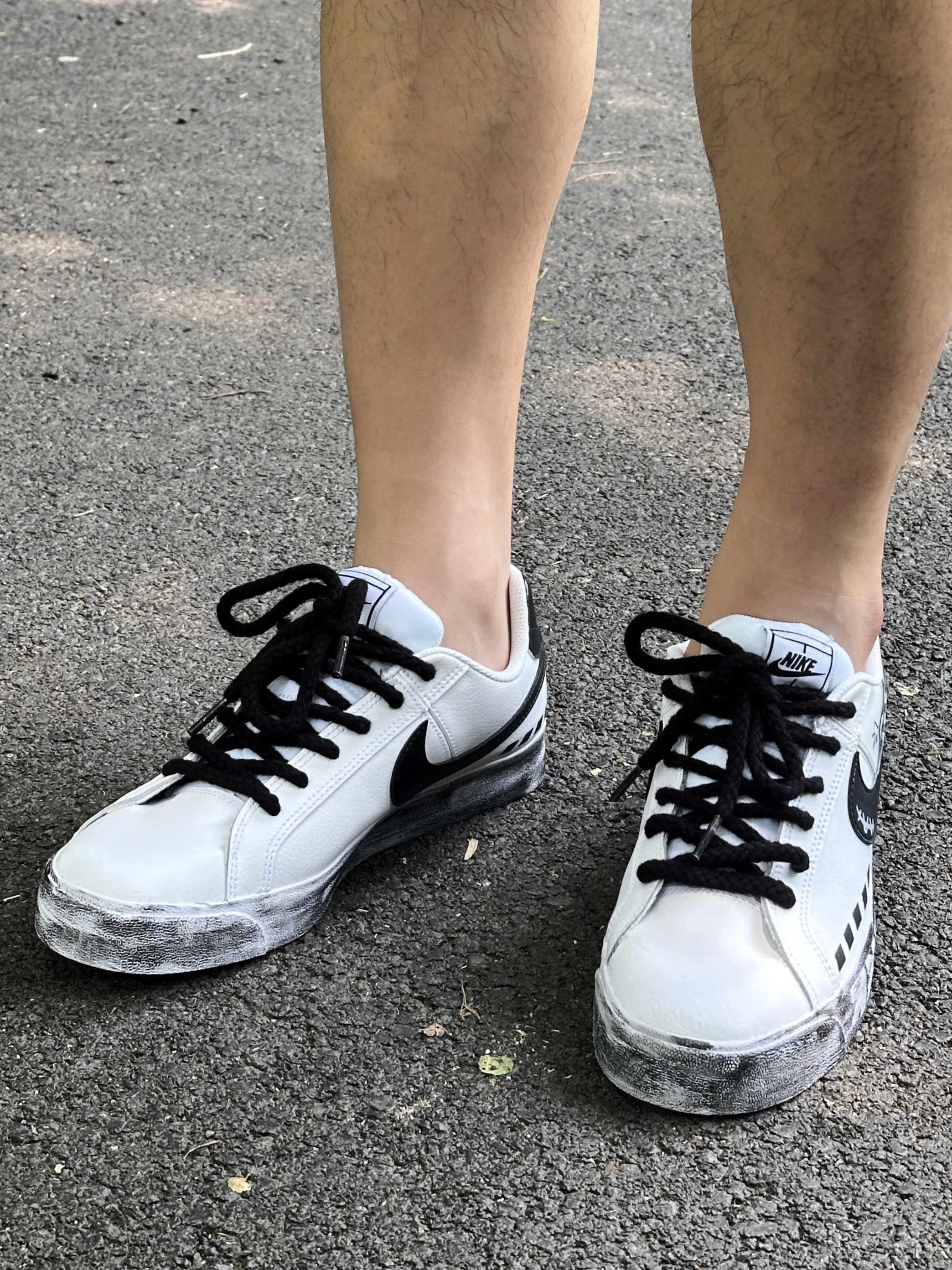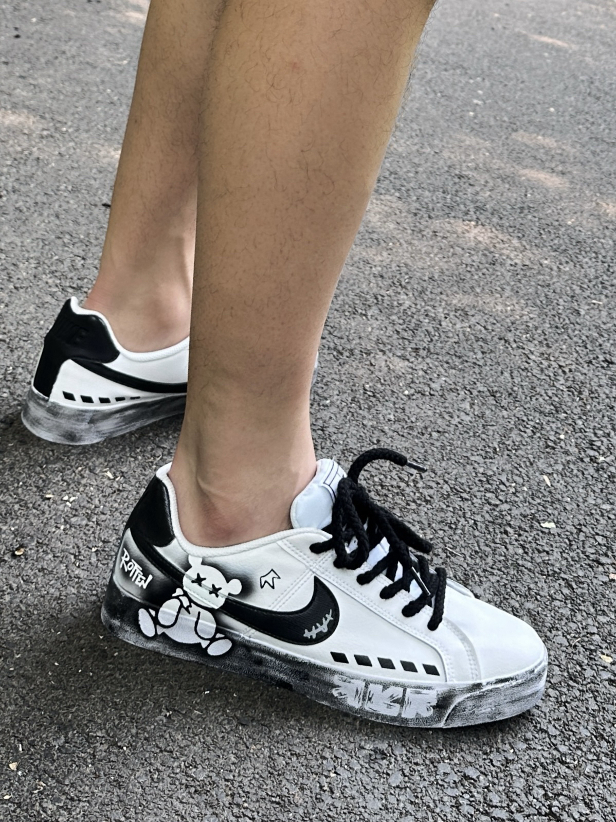 👟nike court royale 定制 好久没有给大家拍耐克鞋款了,今天给大家分享一个很特殊的定制款,保准一出门就与众不同 整体还是很百搭的黑白配色,使用到了大面积的涂鸦风,满满的街头潮流感