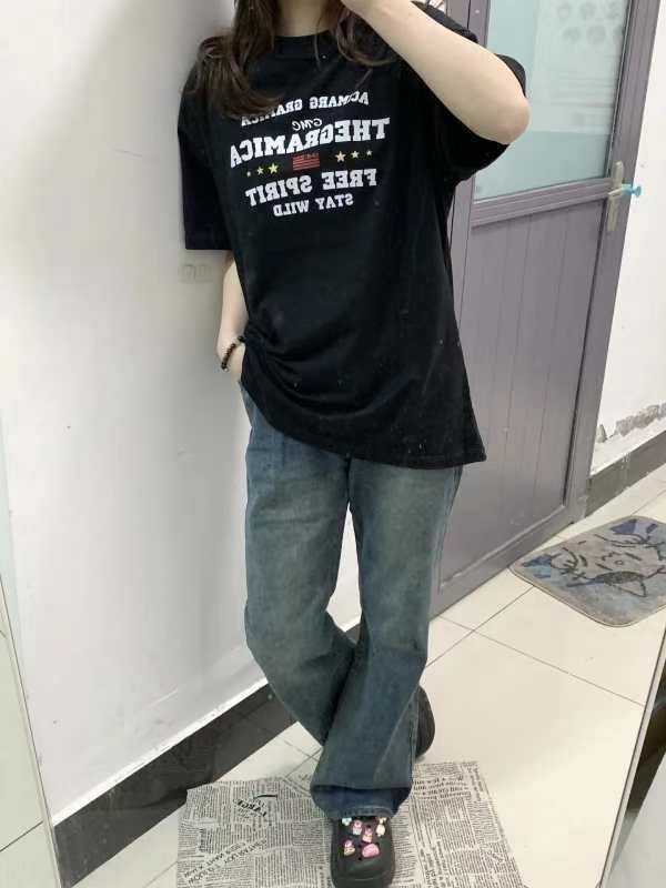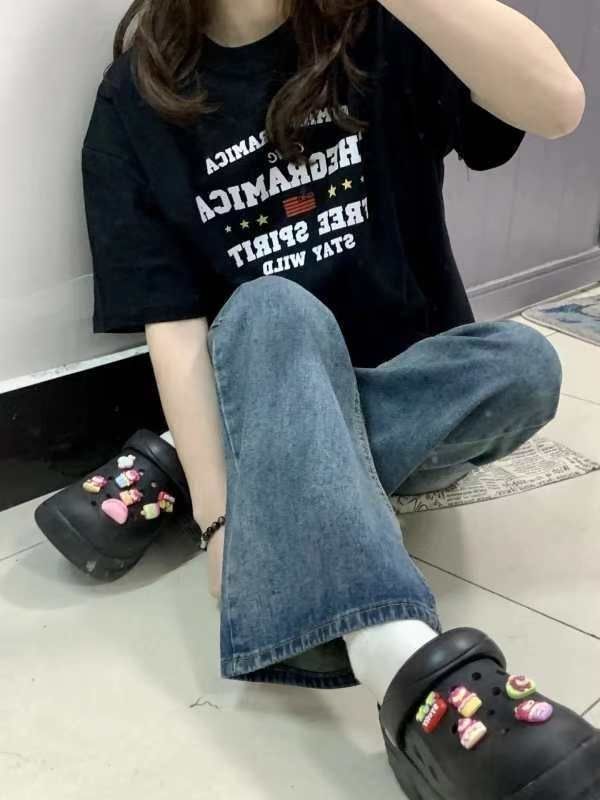 谁懂啊、好喜欢这种复古的牛仔裤 真的很好看 版型也超级好 带点微喇穿上很显瘦! 随便搭配一件短袖都很高级!!