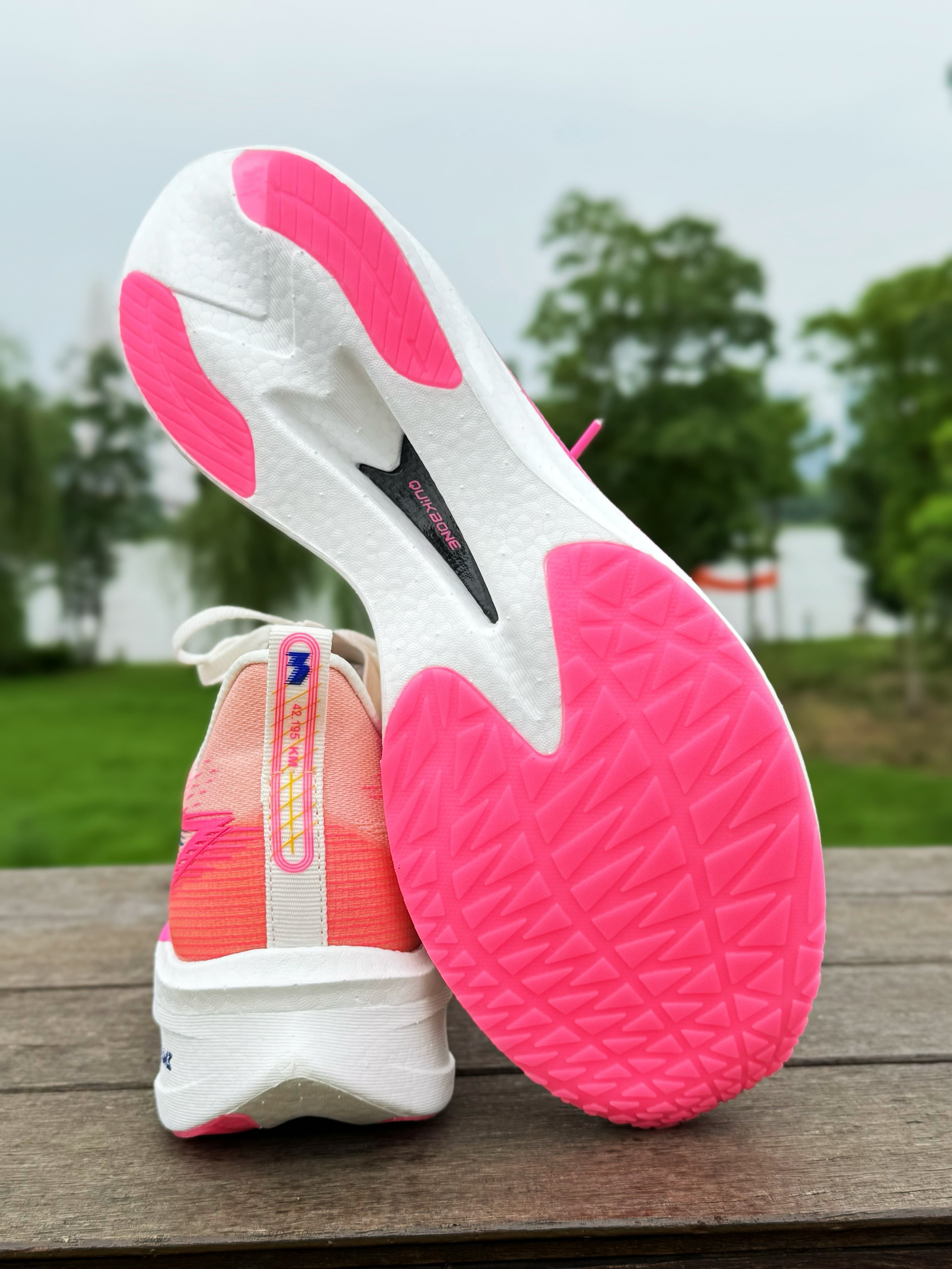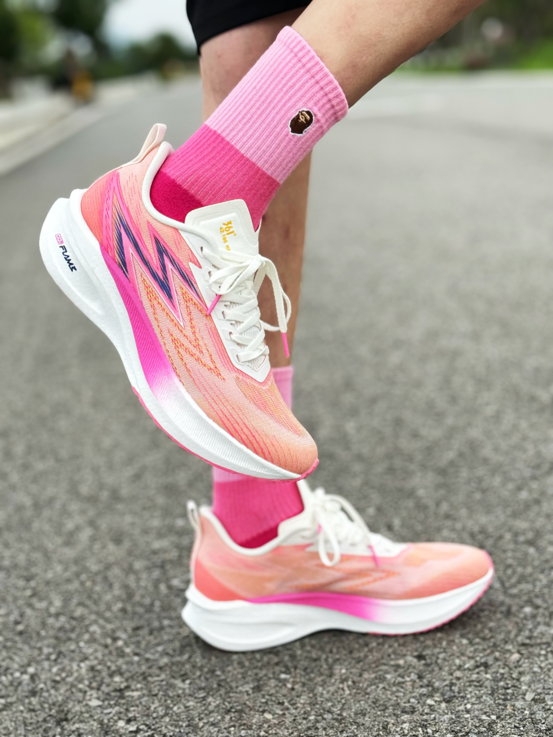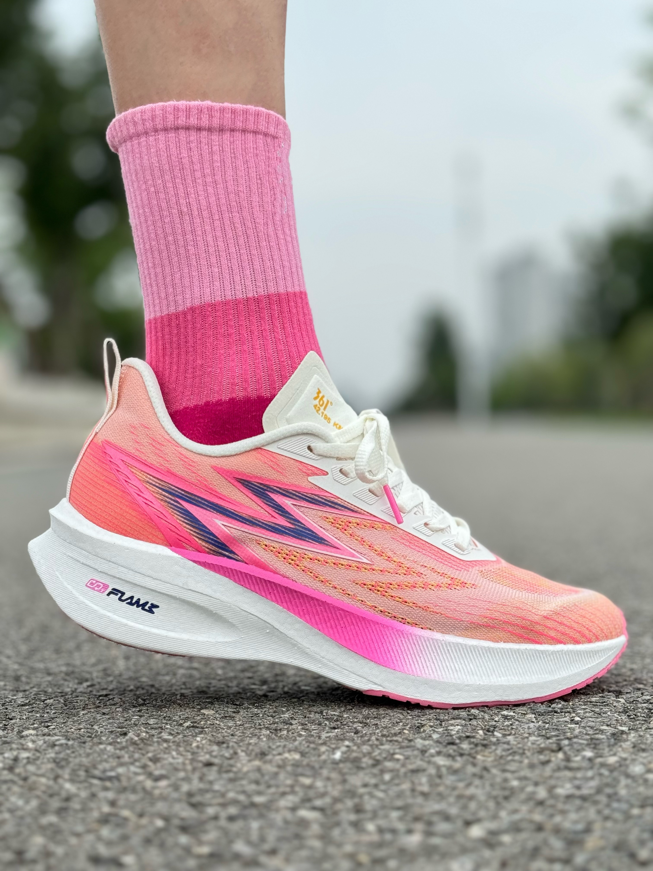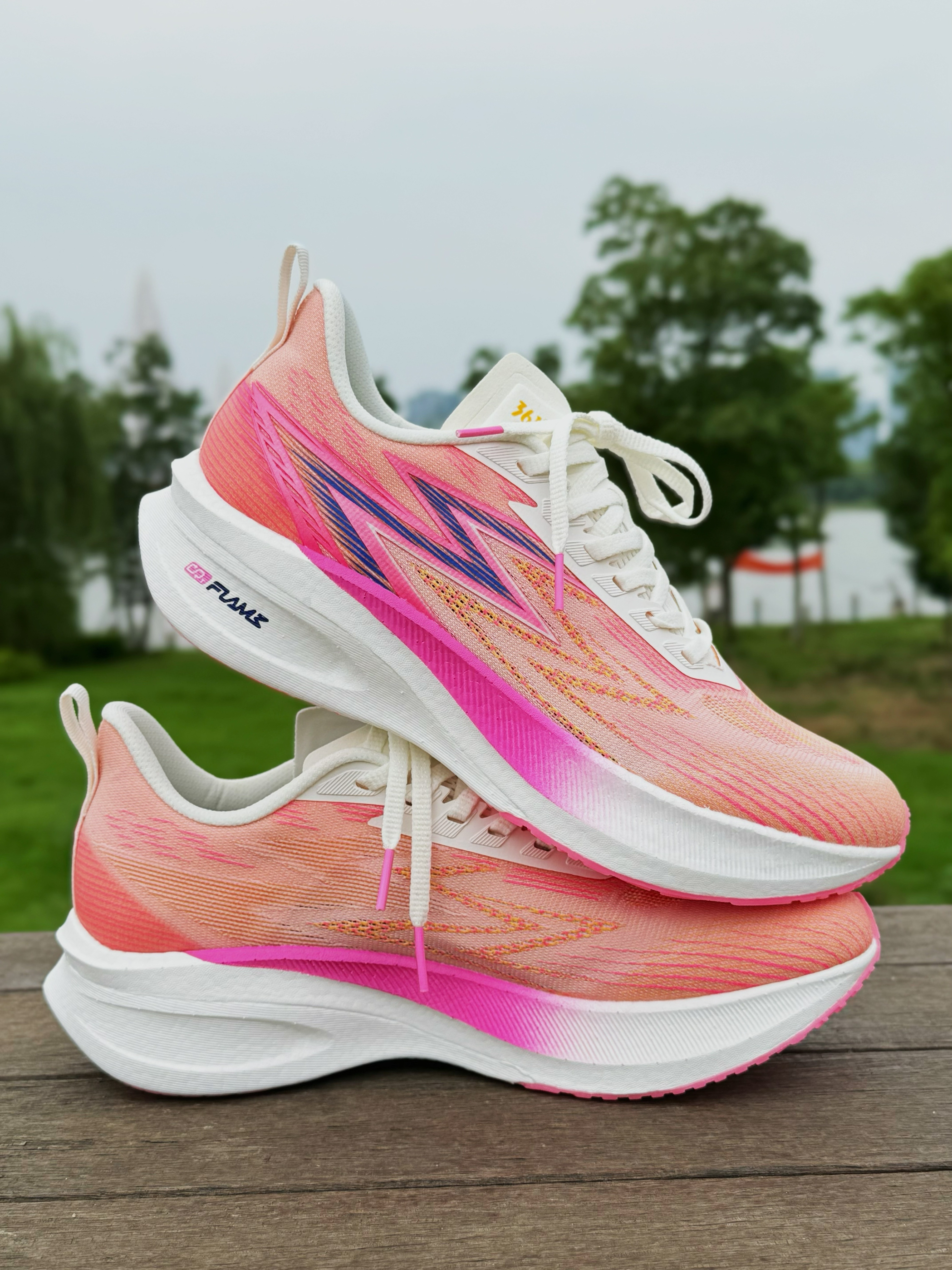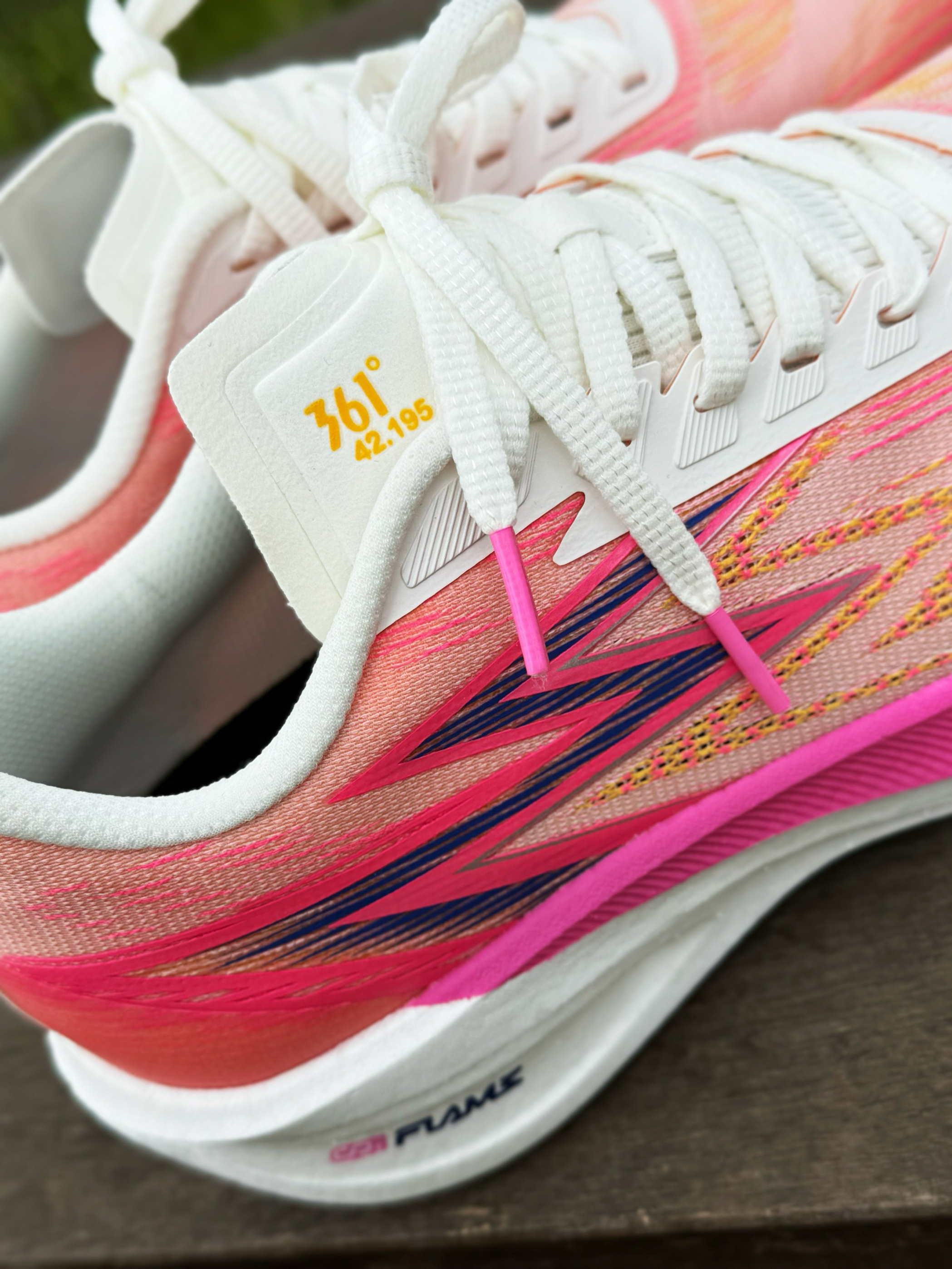 halo 阿迪来了,本期和大家分享的跑鞋是这双361°飞燃1.5 我们亚洲! 粉白配色,让人一眼夏天!整双鞋鞋面采用绞综材质!舒适性提升了不少!透气性和包裹也很不错!中底是尼龙发泡材质,脚感韧弹!内嵌一块全掌铲型碳板和全掌CQT FLAME材料,鞋头微翘,提供推进力和稳定性! RPU橡胶大底,抓地防滑性能在线!最后尺码不偏正常选择就好!感兴趣的参考一下!