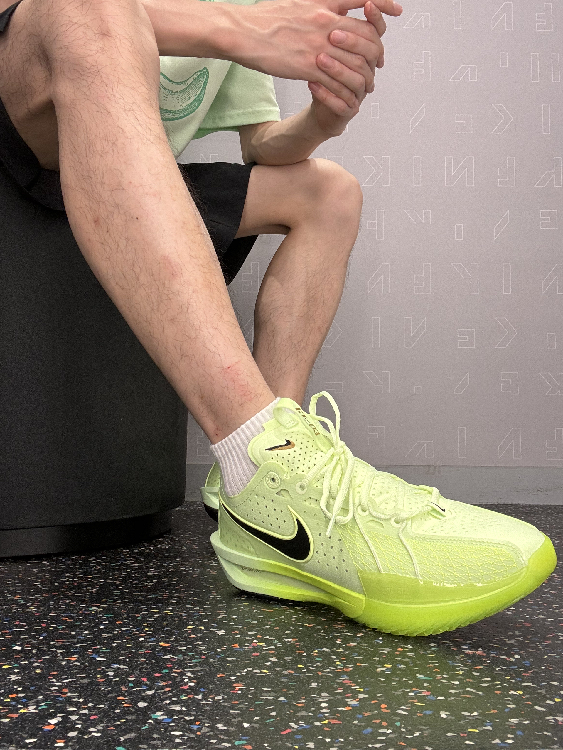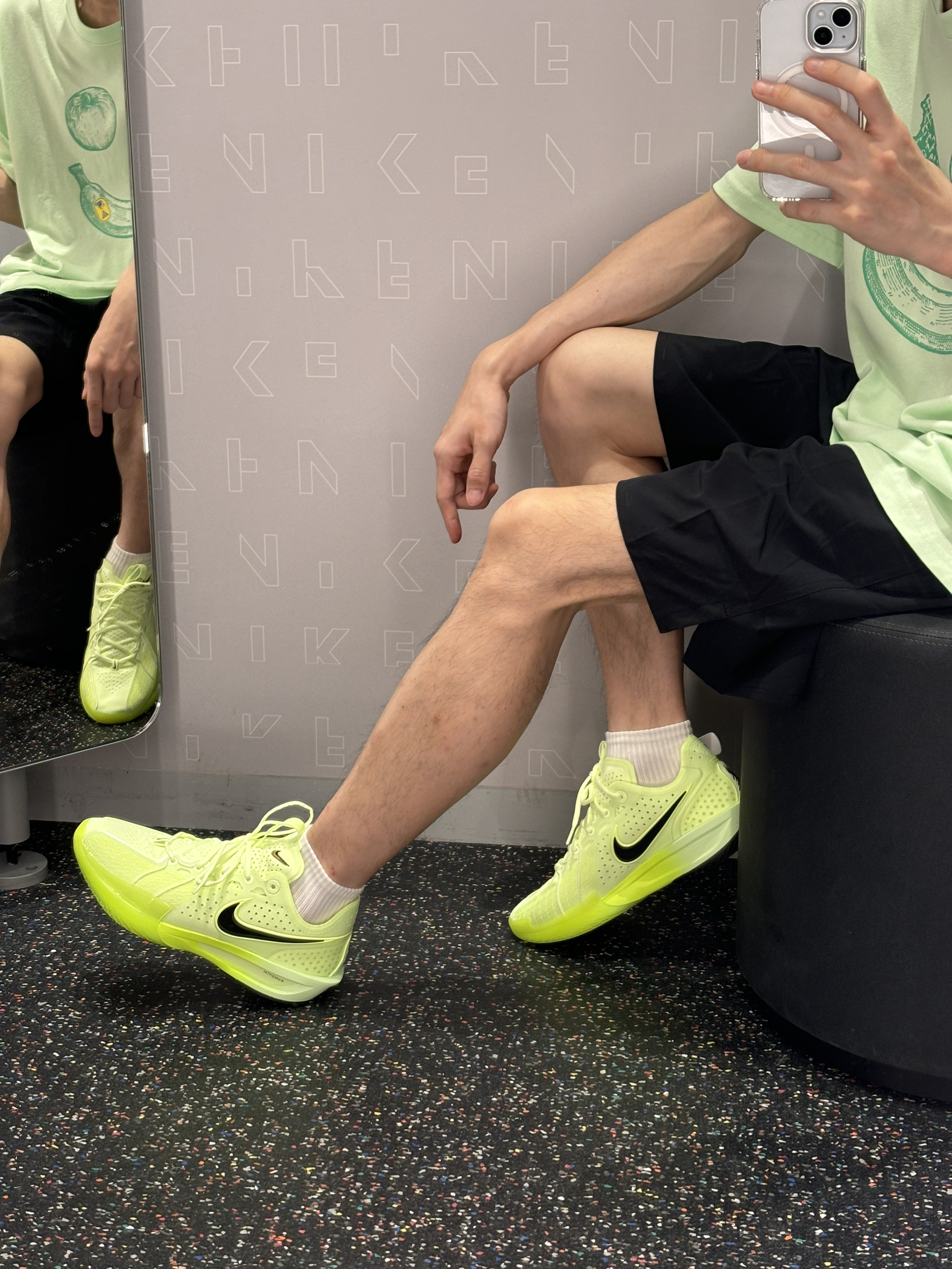 夏天就要闪闪发光,荧光绿给穿搭又增添一份色彩。 acg涂鸦短袖配合gtcut3在休闲中也多了一丝运动感 鞋子静态脚感方面能给个80分,运动表现就不用说了 在耐克实战后卫球鞋排名里也算得上号 炎热的夏天穿上它一起打球吧⛹🏻♂️
