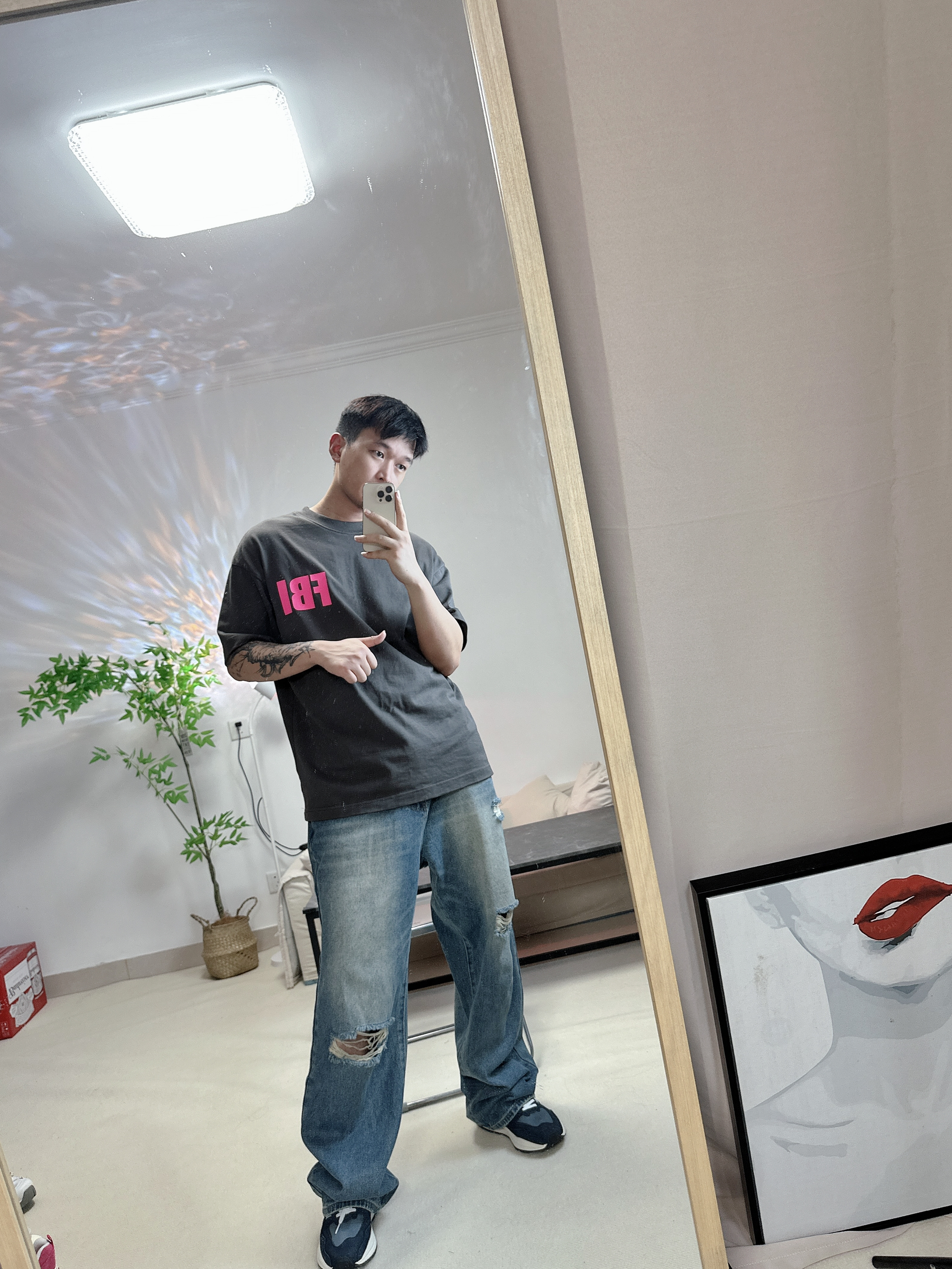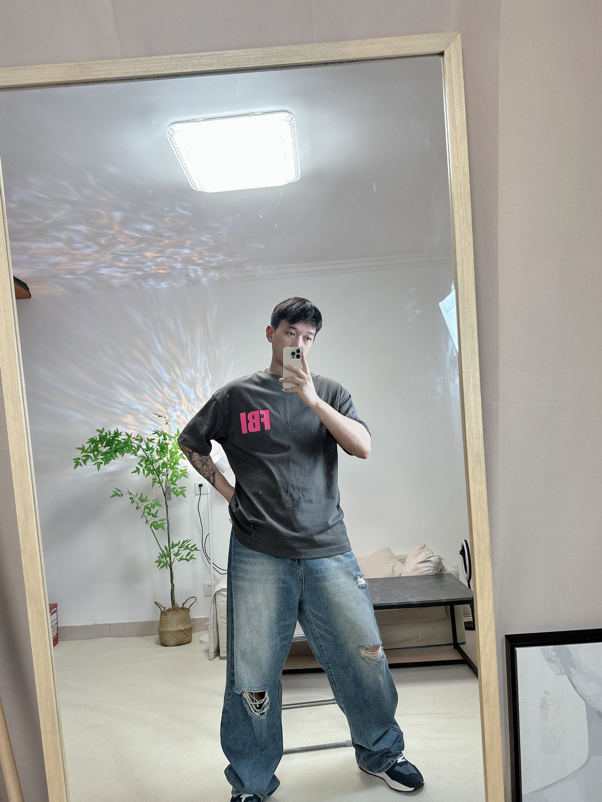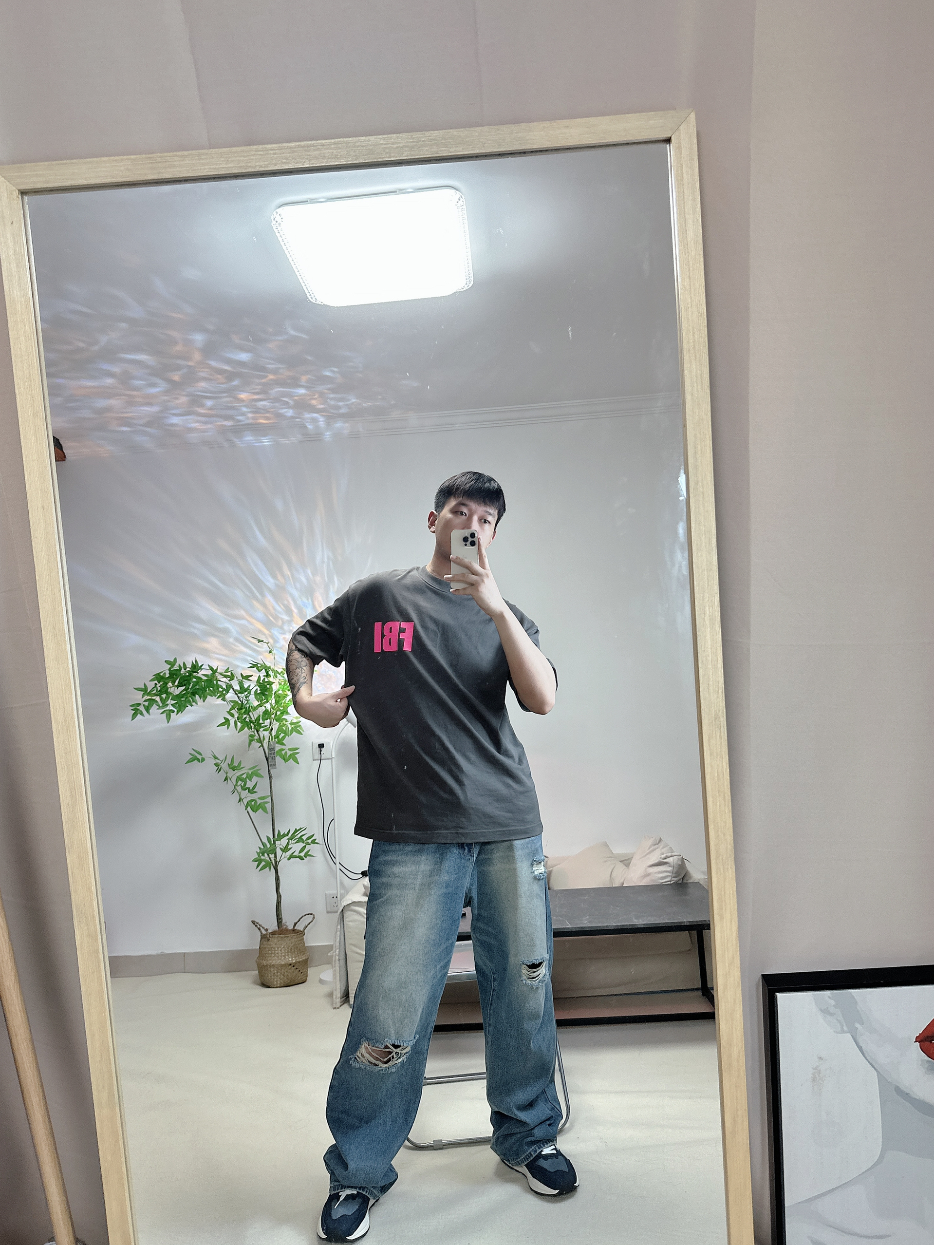 喜欢新百伦的5740 给人干净清爽的感觉 很喜欢这件粉色FBI的logo 博主每天分享不同穿搭 大家一起学穿搭