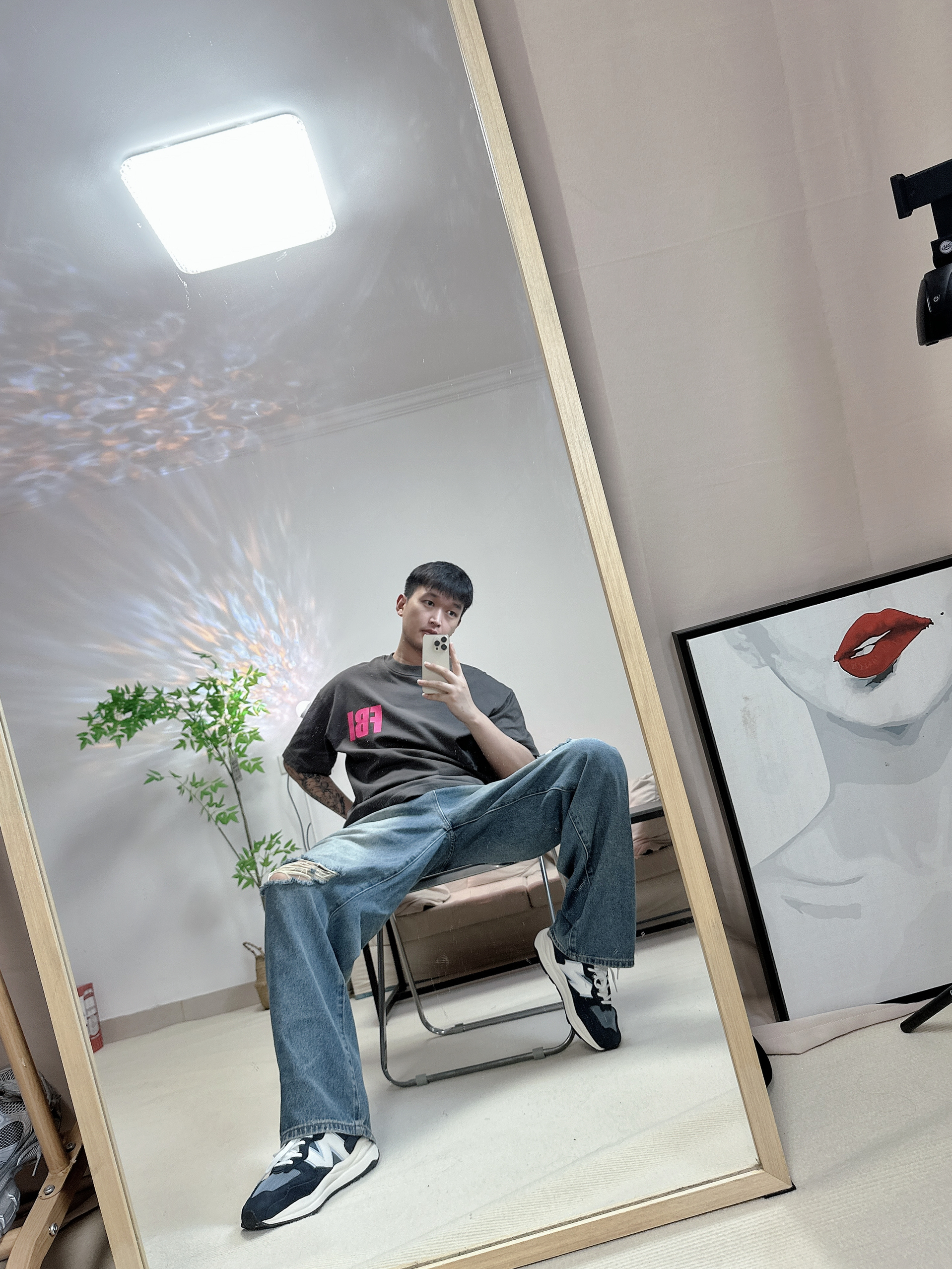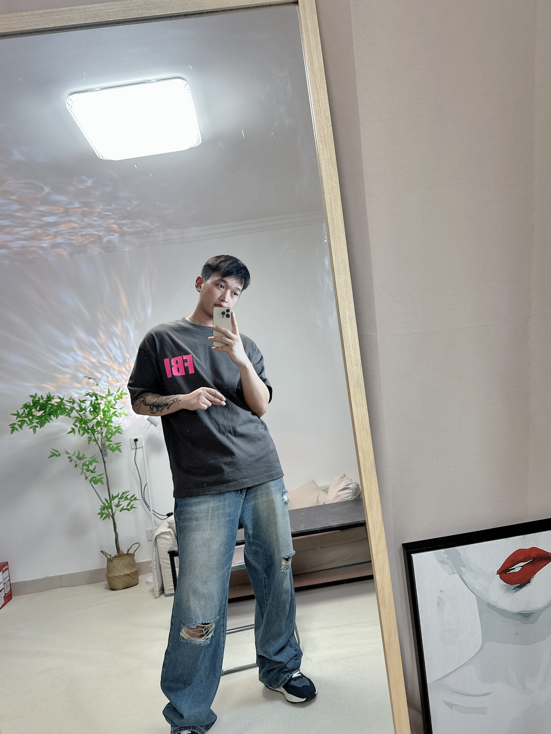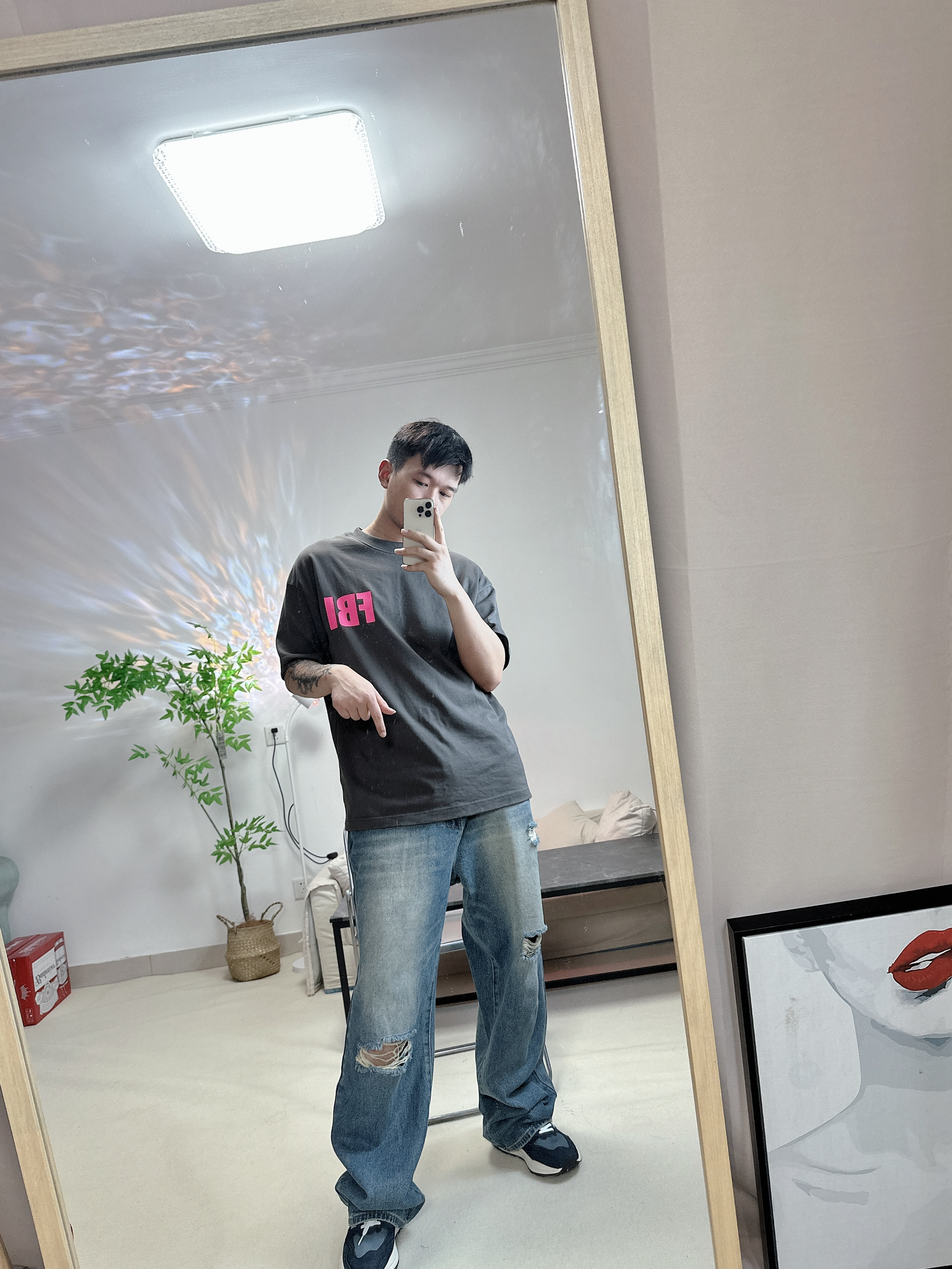 喜欢新百伦的5740 给人干净清爽的感觉 很喜欢这件粉色FBI的logo 博主每天分享不同穿搭 大家一起学穿搭