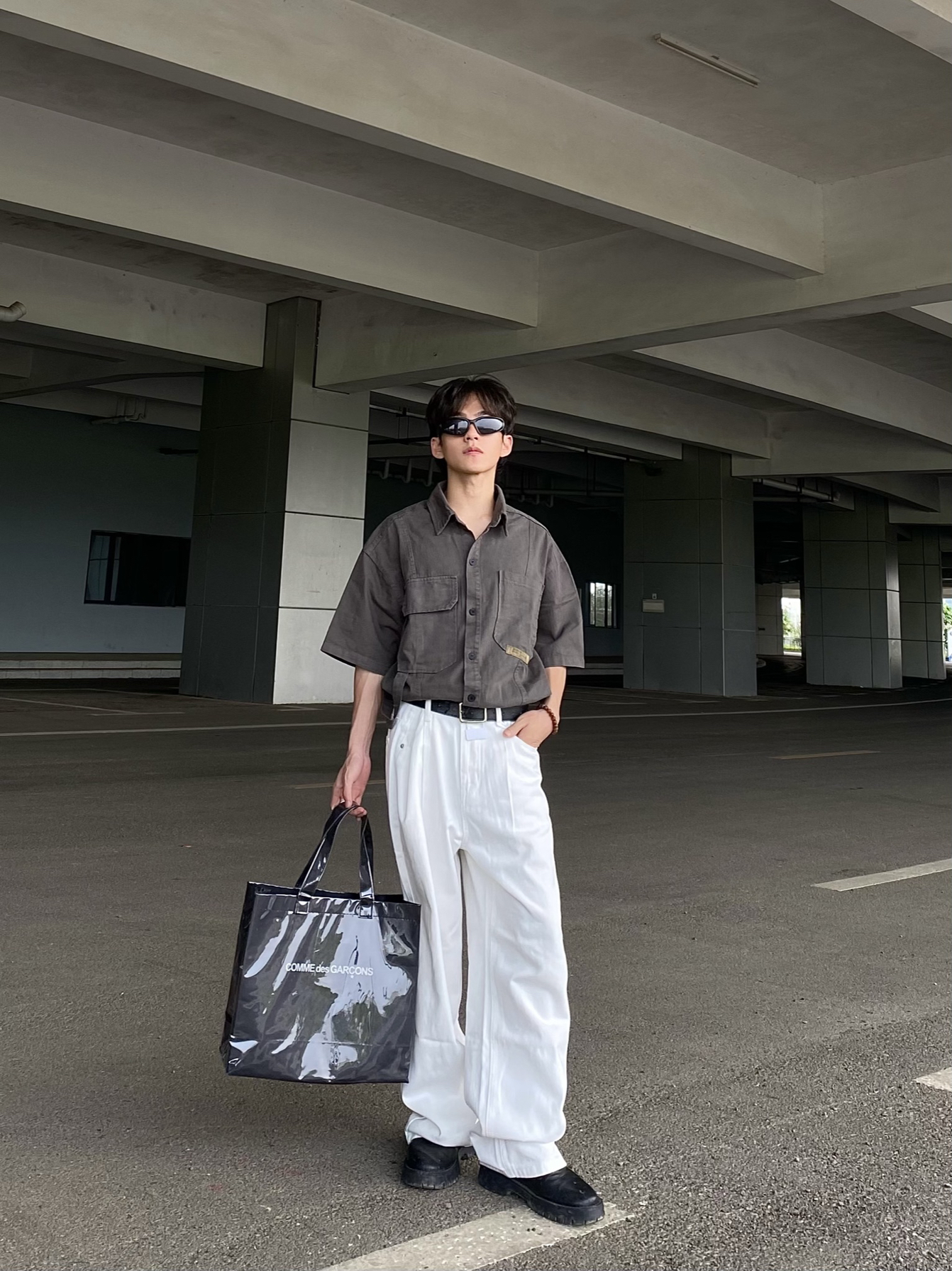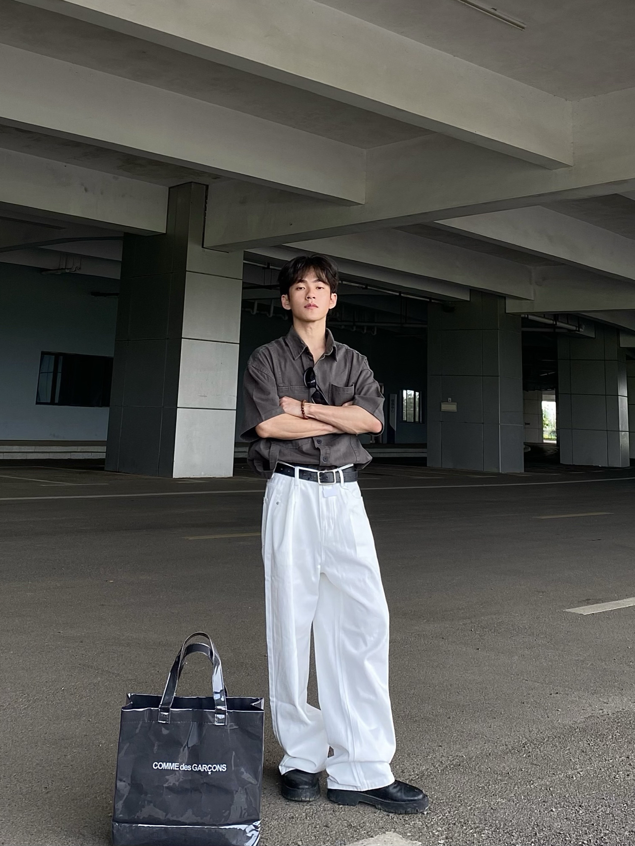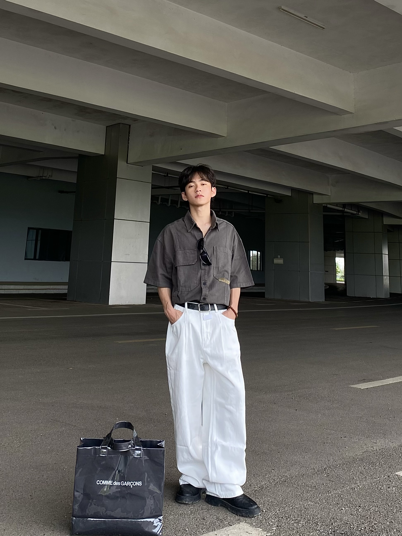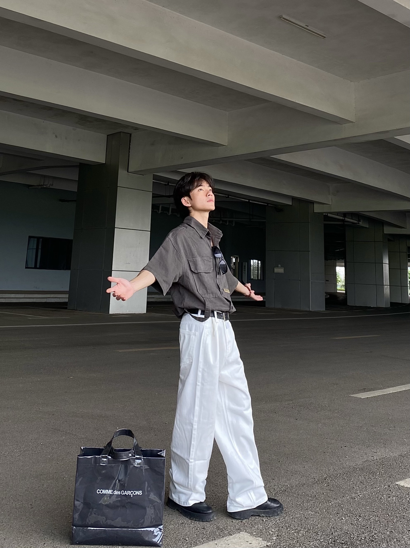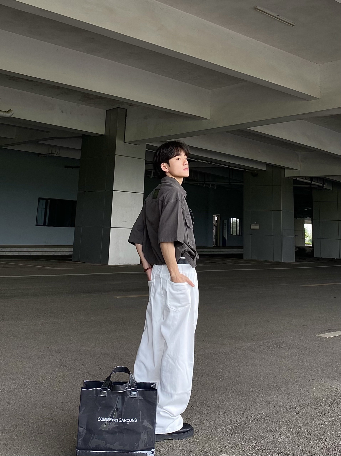 今日穿搭分享: 1⃣️上衣我选择的是一款军灰色的美式复古短袖衬衫,这款衬衫版型宽松,上身效果大气舒适,颜值高! 2⃣️裤子我选择的是一款白色的美式宽松牛仔直筒裤,裤子的颜值没有话说非常帅且显高,小个子男生真心建议尝试!