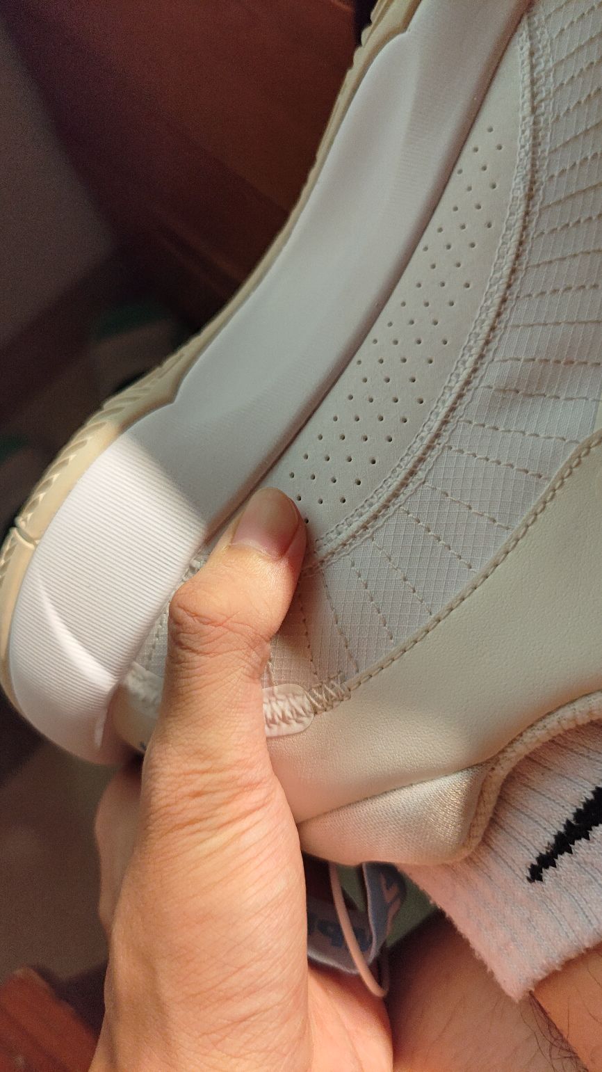 因为我这边的线下实体店找不到,所以这款鞋收回来的第一件事就是试穿,整体静态穿着没毛病,毕竟这是NIKE的基本功,也是老品牌的功底,走起路来前掌zoom气垫是有明显的推动力的,当然这一切的一切都是要建立在这款鞋只卖230块钱的情况下,毕竟200块你能买到AJ标、ZOOM大气垫、NIKE做鞋穿的舒服的功底! 【缺点】 但如果他是卖300或更贵呢?那以下的内容就是这款鞋如果卖价高于300的缺点,别看他看...