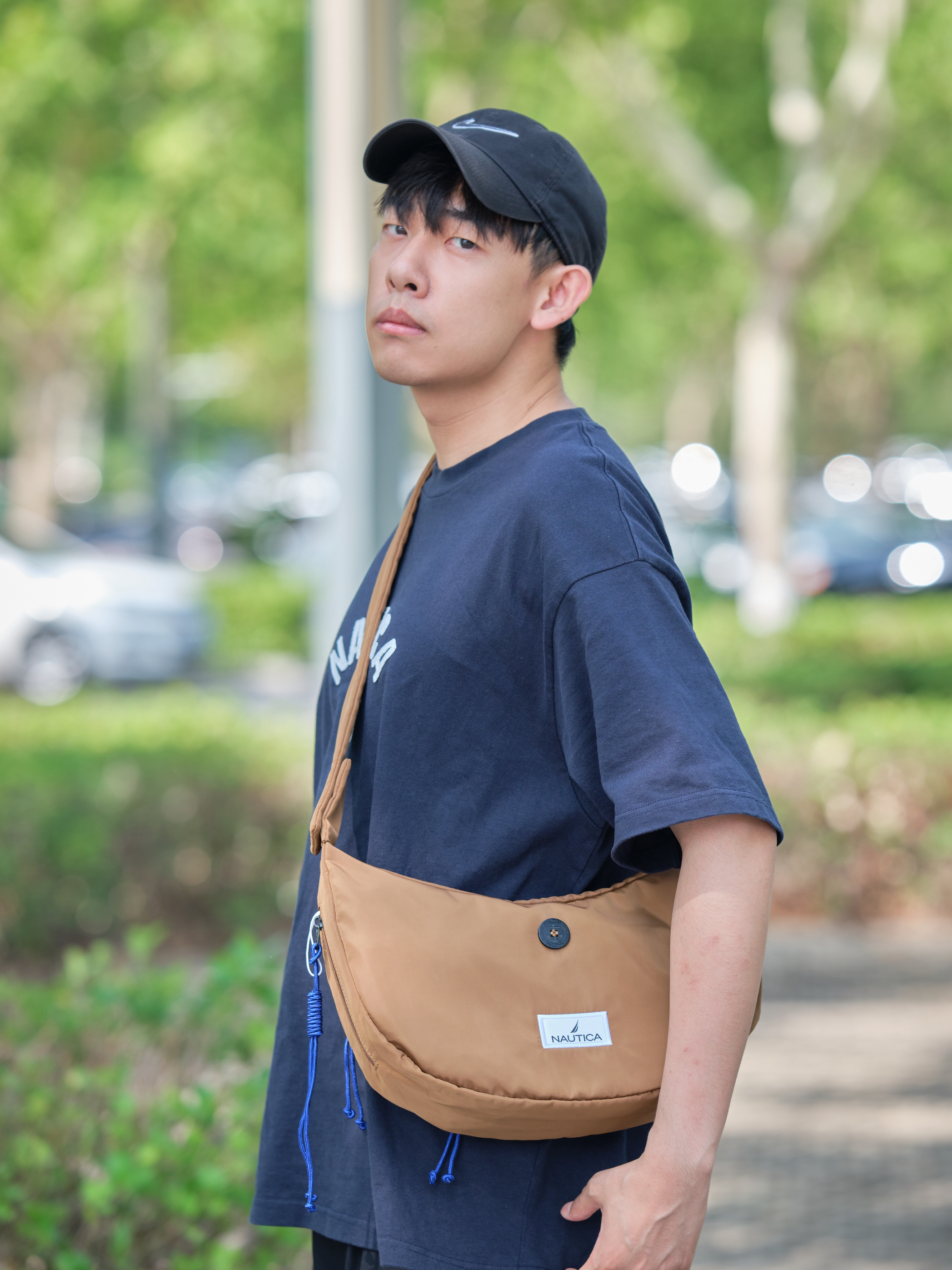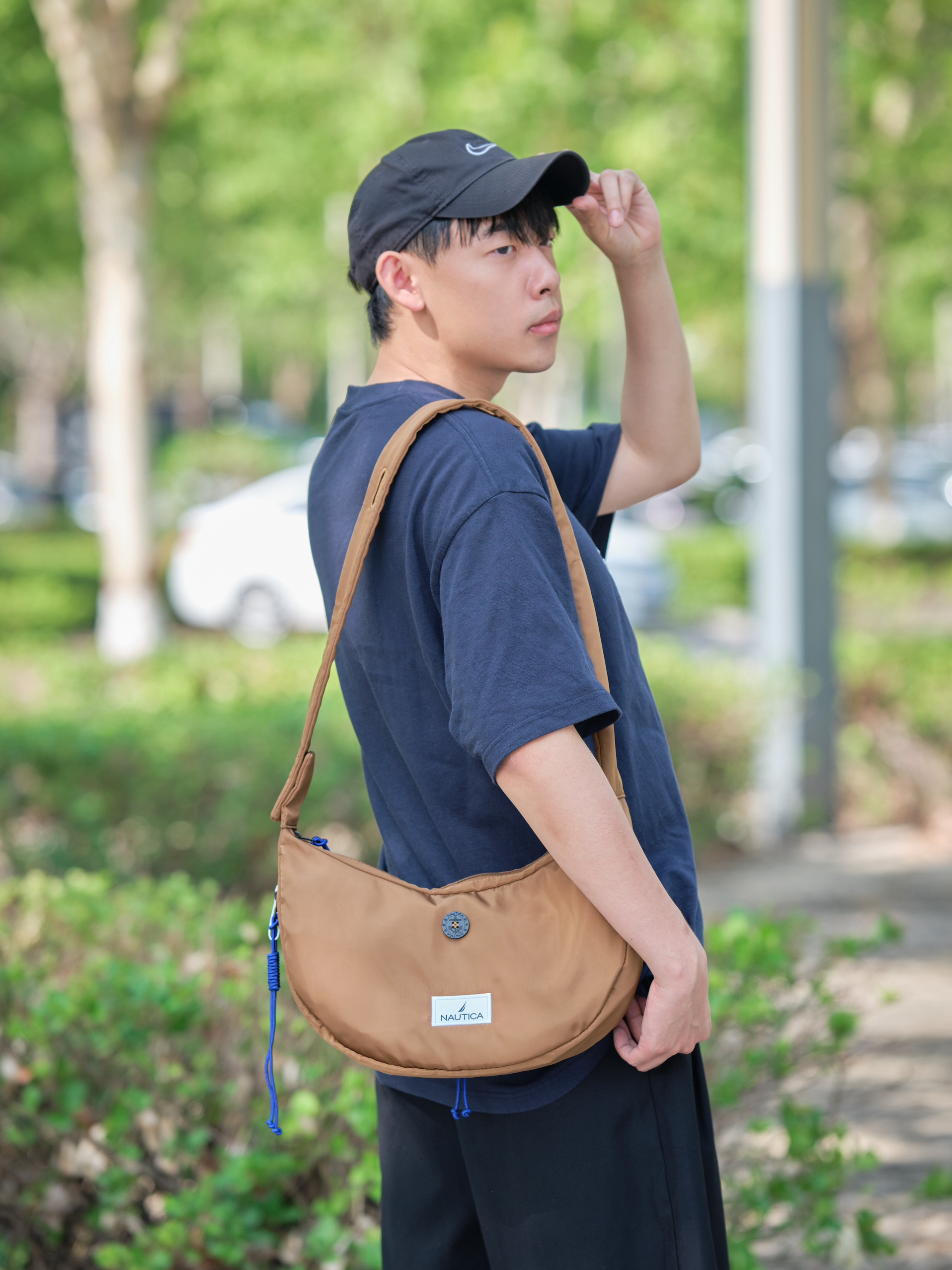 夏日通勤怎么穿? 简单干净才是清爽氛围的秘诀 通勤零碎的物品 通通装进随身带的月牙挎包 来自nautica 外观时尚感在线 不仅能点缀穿搭细节 平时多场景也蛮实用滴 七夕搭配个情侣款或送礼都不错