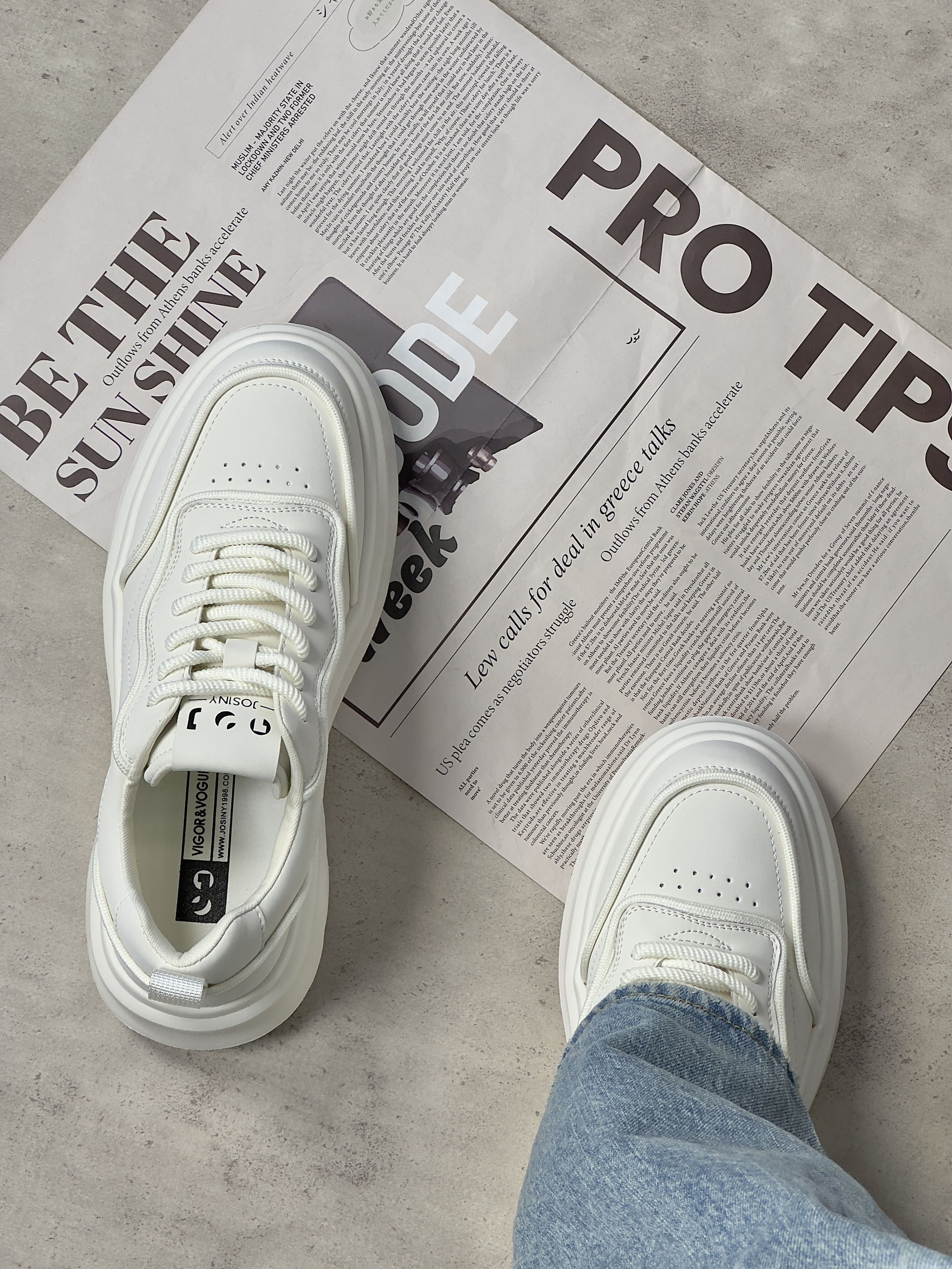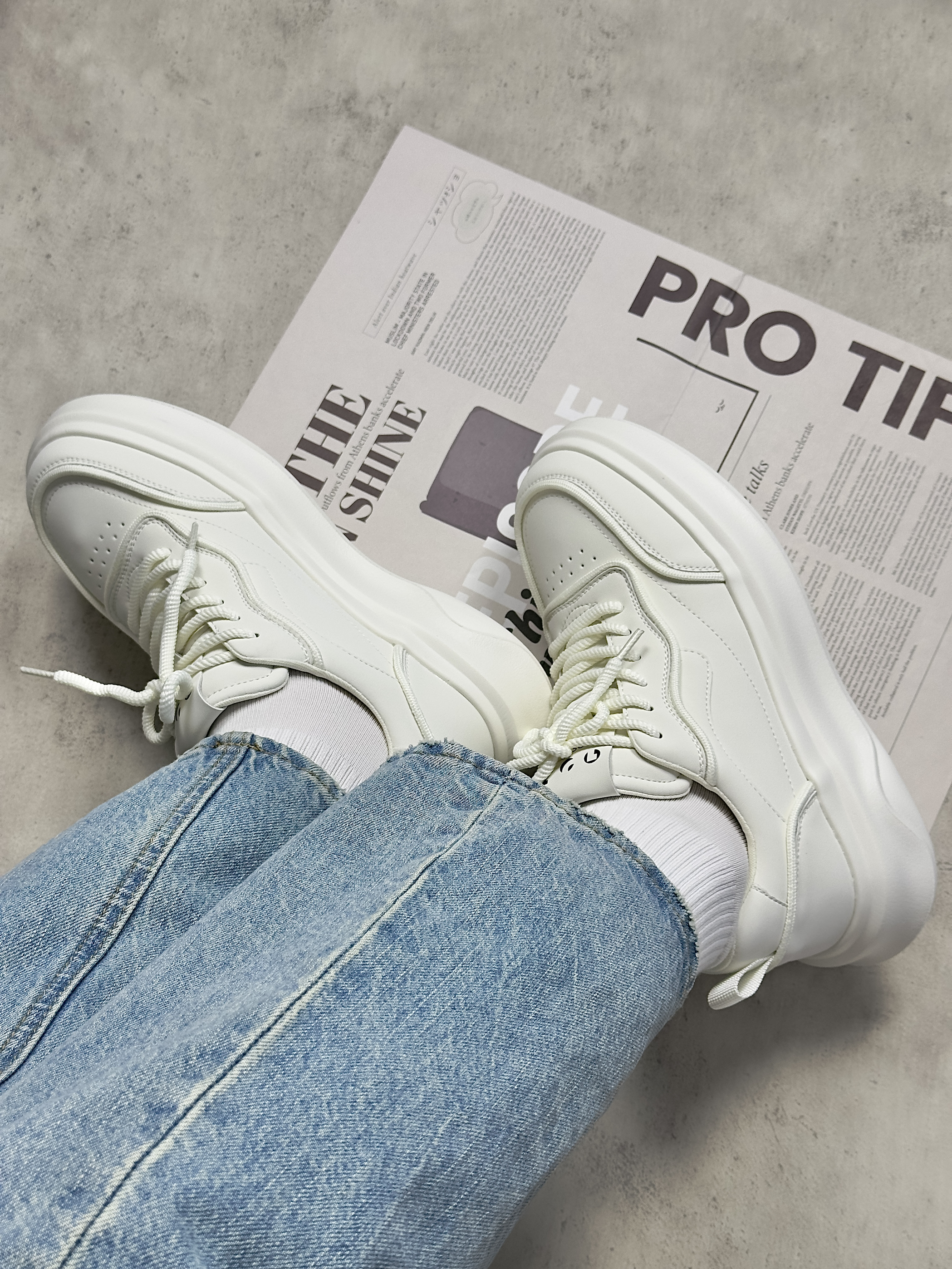 hello,这里是陈白羊🐑!今天给大家分享一款卓诗尼的厚底板鞋 TA的鞋面整体由合成皮革材质打造,大面积的白色🤍搭配上简约的线条修饰,给人一种非常清爽又很少年的感觉。而且全皮质鞋面穿脏了也不用担心,拿湿巾一擦就干净。 其次,它的中底则是由轻量化的泡棉☁️材质制成,上脚软弹舒适,关键它还有着3cm左右的显著增高,这简直就是我们小个子男生的福音。在搭配上呢,你完全可以相信小白鞋的适配程度,无论是休...