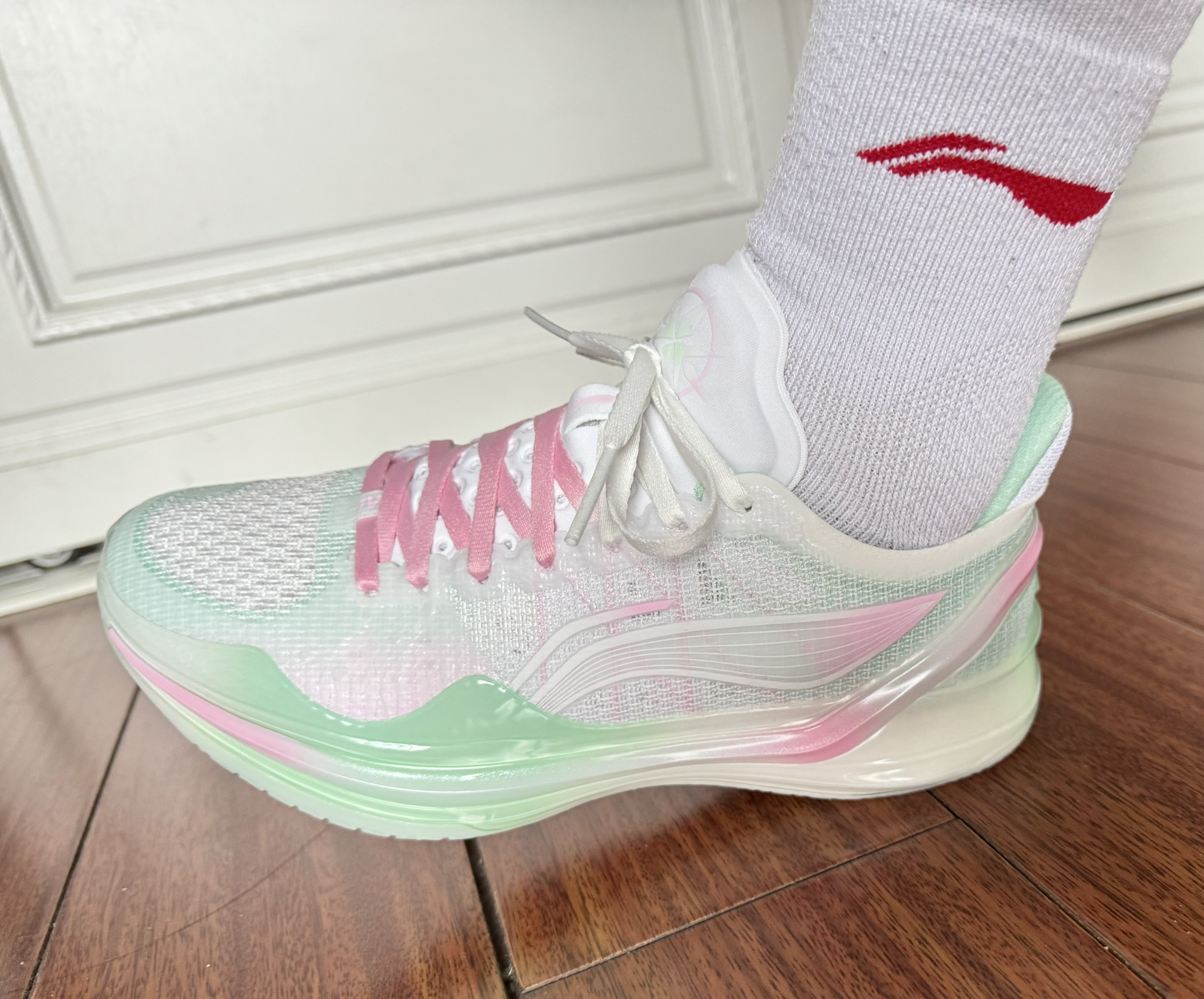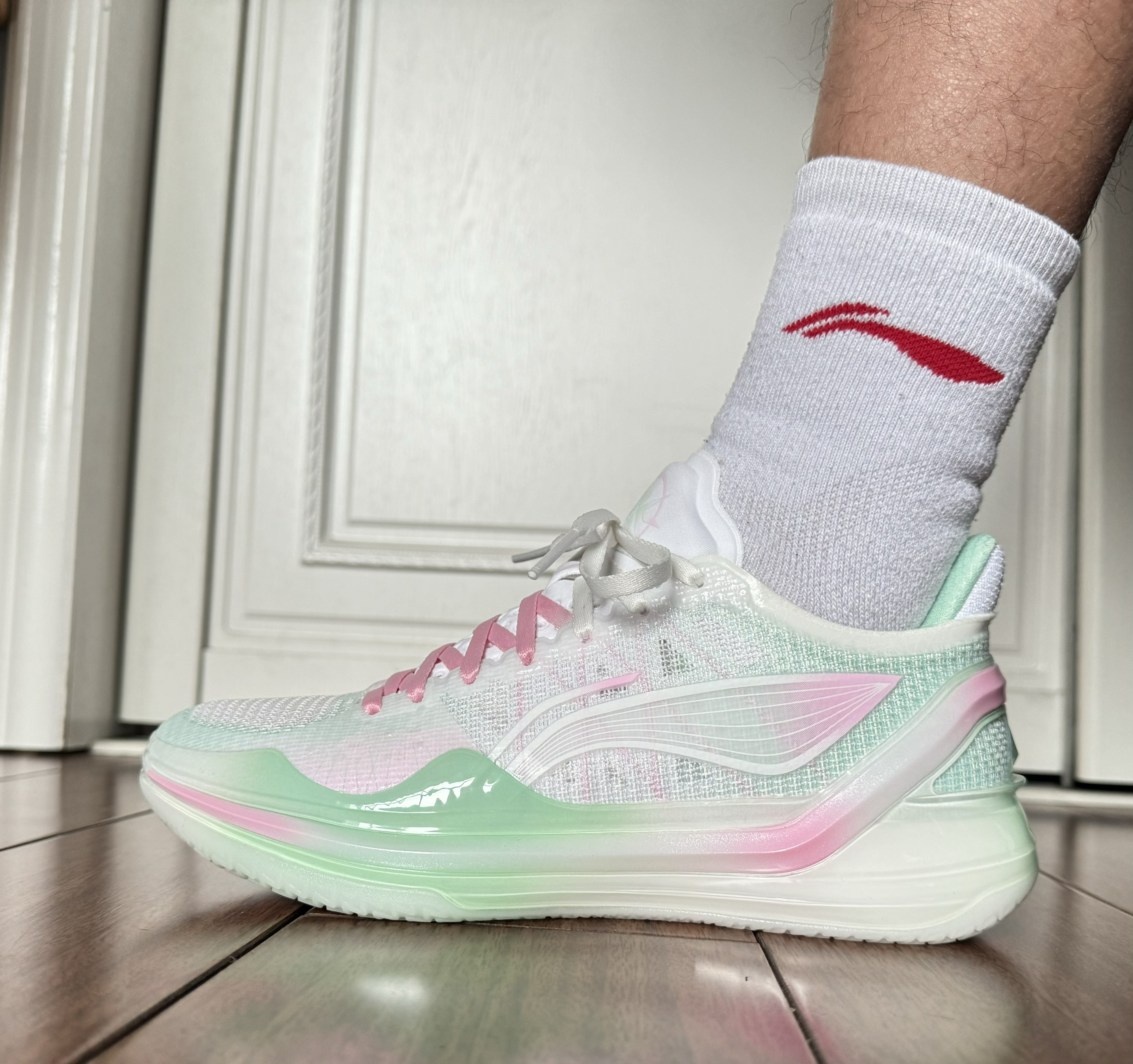 上脚真的无敌,太好看了,小清新的配色绝对是球场最靓的仔。 喜欢薄底快靴的小伙伴,夏天的不二之选。 目前价格已经到5开了,加之王者价格的实战性能,很适合入手。