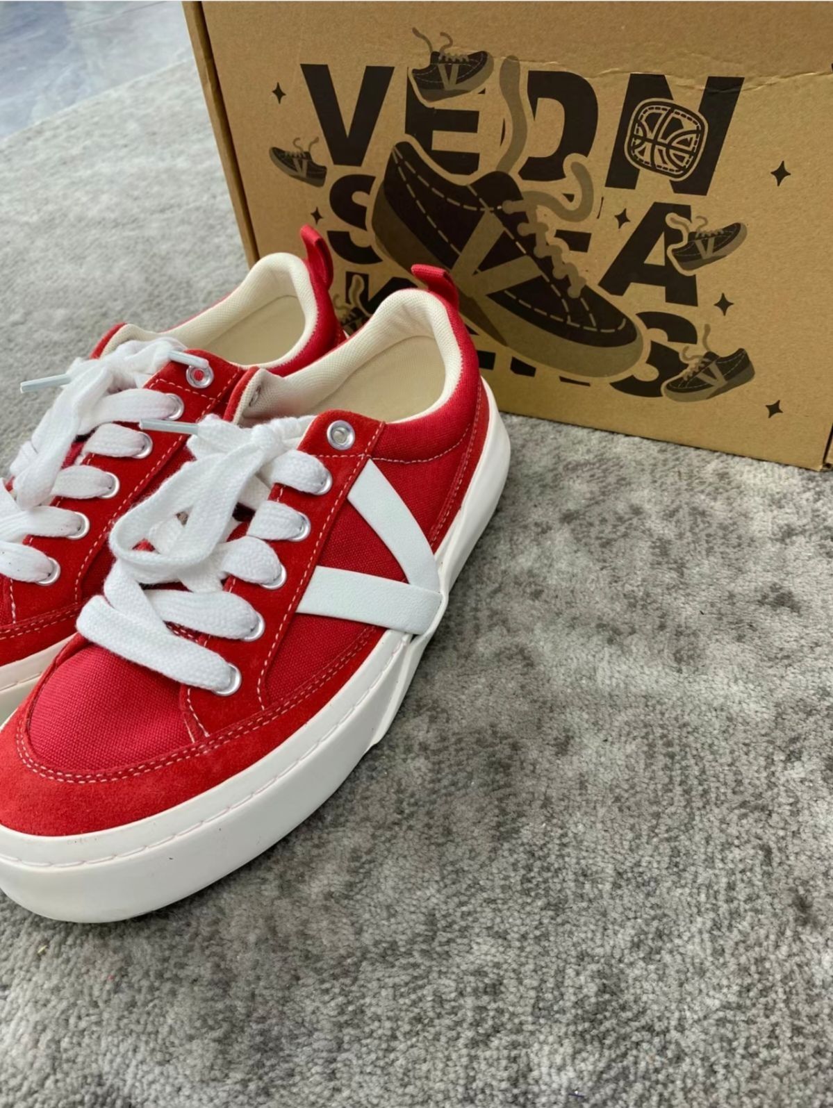维动新出的板鞋,经典的红白配色越看越好看! 帆布鞋面+硫化工艺鞋底 颜值在线的同时脚感也很奈斯 小厚底的设计对小个子来说太友好了,同时侧面有防侧翻,实在是太棒了 搭配校服也能很出彩,学生党必入!🛒好物名称: 🤔推荐理由: