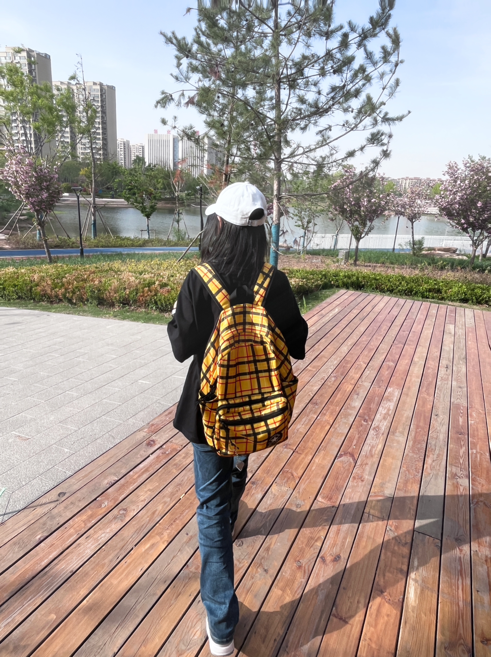 匡威的这个老花书包非常百搭,材质也很硬挺,大小能放一本高中课本,真的很美!