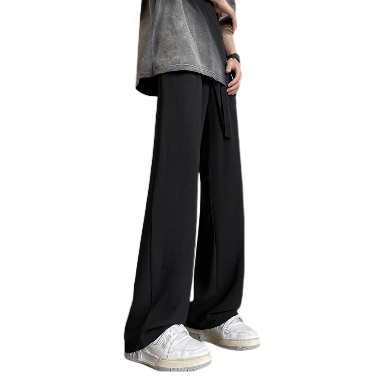 它的面料是那种很柔软的,穿起来特别舒服。👖重要的是它有高腰设计,显得腿特别长,阔腿的设计又能遮住腿上的肉肉。而且它还有抽绳的设计,可以调节裤子的松紧度,适合各种身材的人穿。 这款裤子真的是夏天穿的神器!🌞因为它透气性很好,吸汗性也很强,完全不会觉得闷热。同时它还有垂感,看起来特别有型。👌 我个人非常喜欢它的颜色和设计,尤其是那种简约的黑色,真的百搭又好看 🍒图源博主:打锤子