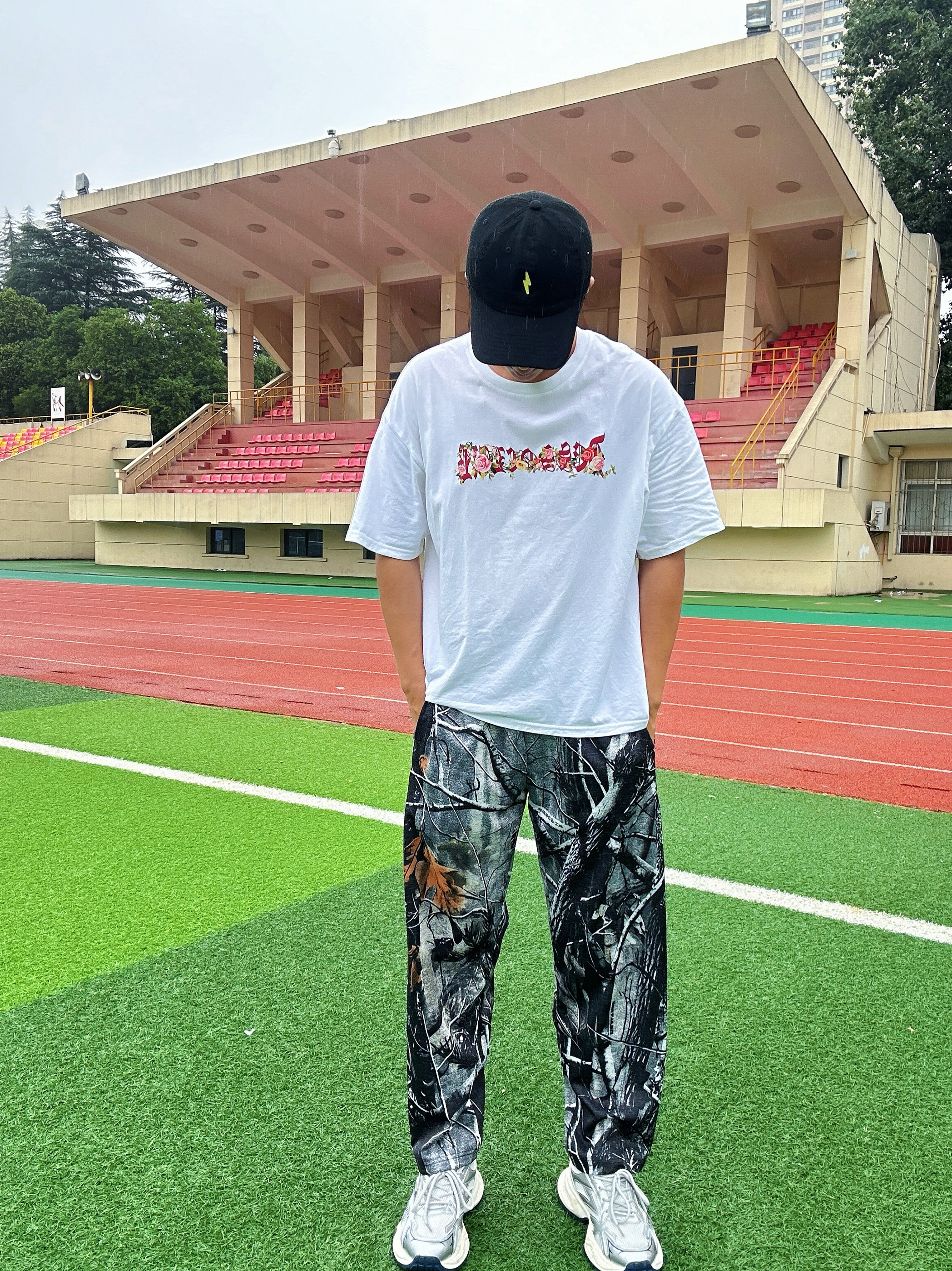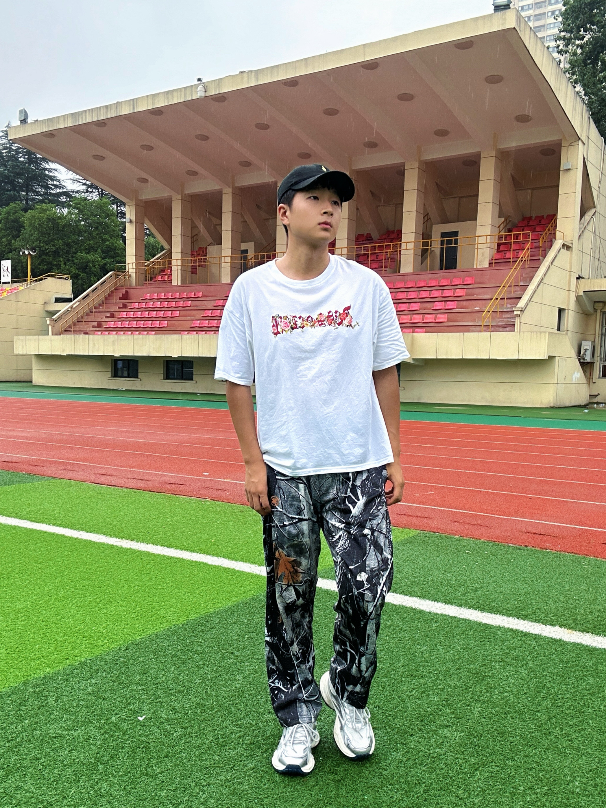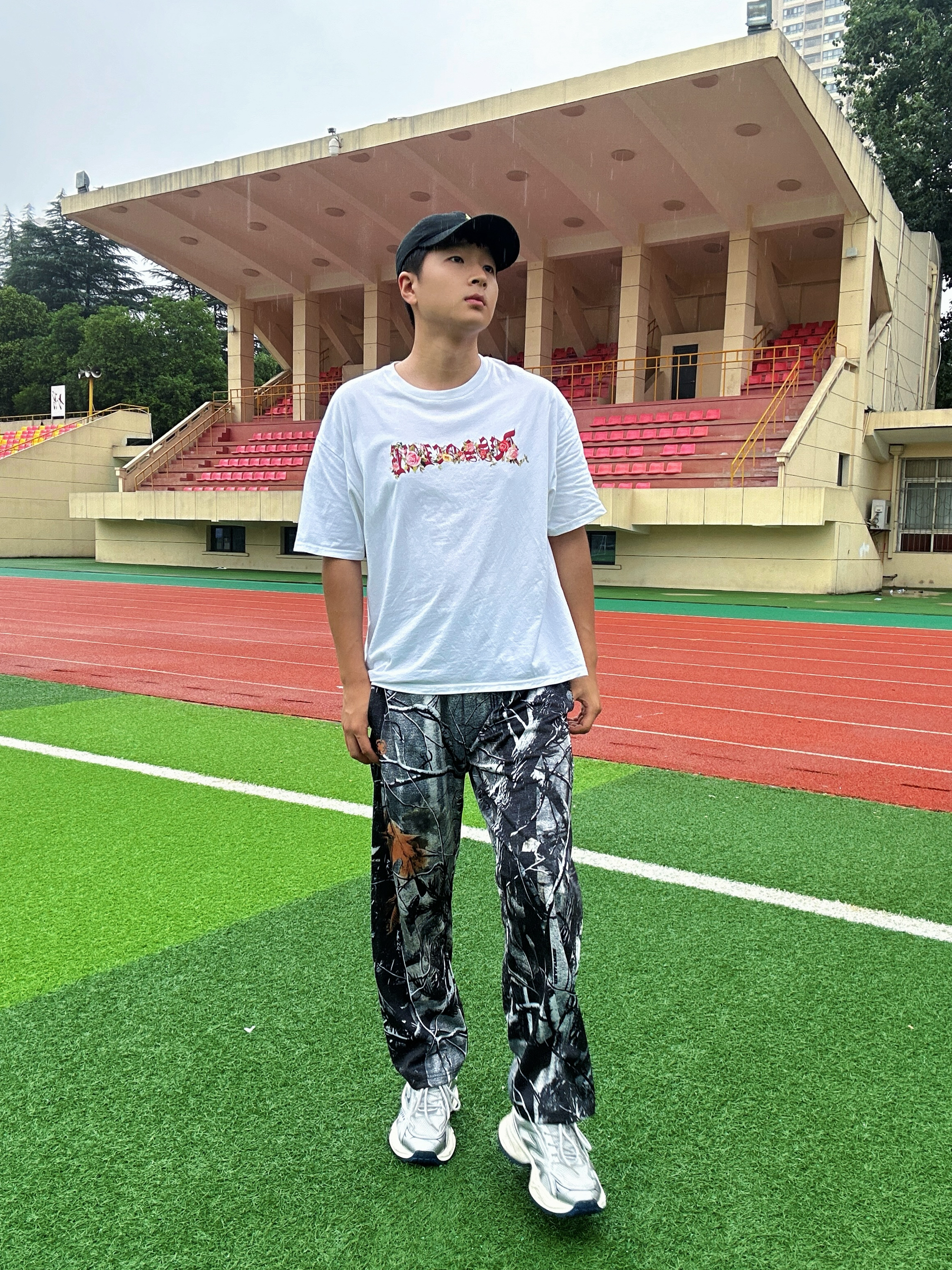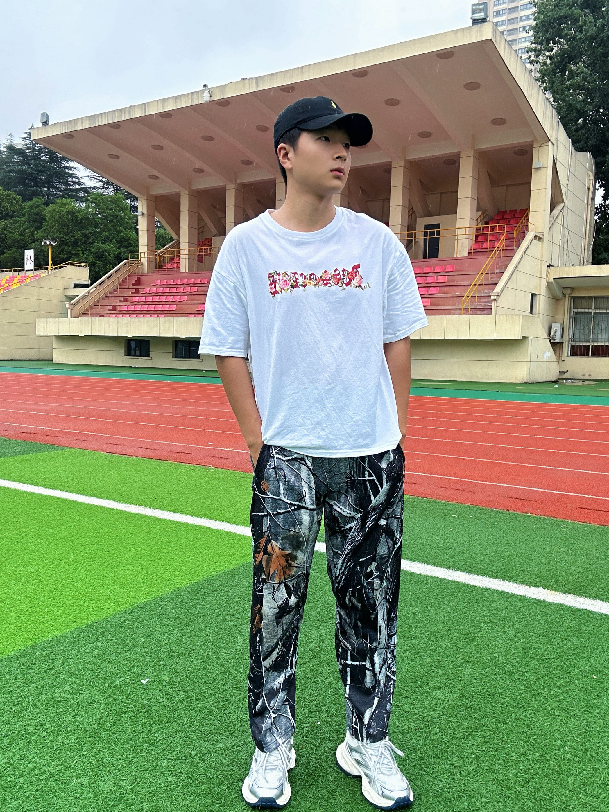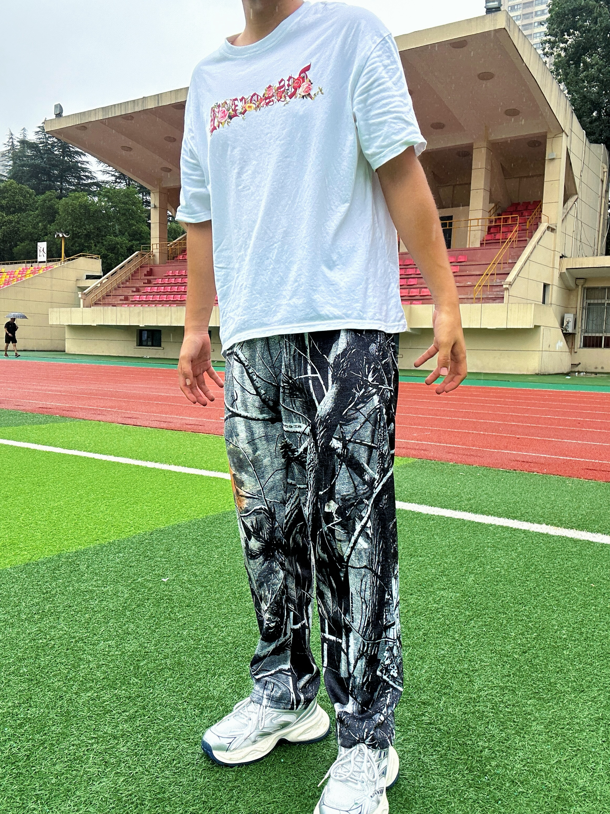 一直心心念念的超级草根同款花裤子终于到手了!😇 刚拿到就立马上身了,我选的这条是枯木款式,整体黑色和白色的设计很时尚,版型宽松面料丝滑,穿着挺舒服的,垂感很不错,简单搭配白T恤也好看啊😋 我174cm72kg穿L码合适,暑假打球穿不知道有多帅哈哈😎