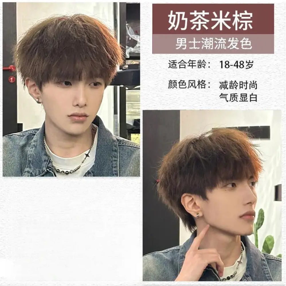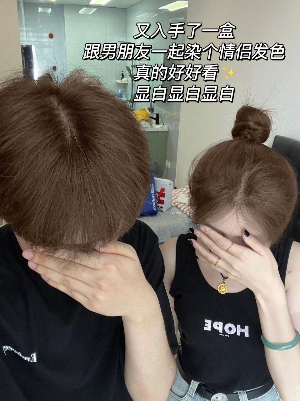 💖救命!误打误撞给男朋友染出了神仙发色|||谁懂!误打误撞给男朋友染出了神仙发色 看好多人推荐这个奶茶棕 想买回来自己尝试一下!又怕踩雷 💜这时候就能体现男盆友的作用了 在他头上染了!一盒没用完整体还挺省的 染完之后直呼!!!卧槽卧槽 居然还不错当好显白的发色 ✅也不是那种土黄色 很高级的棕洗头也没掉黄水持色效果OK滴 而且男朋友本身黑色头发也能染出这发色 果断又下单了一盒 准备自己也染了整个情侣...