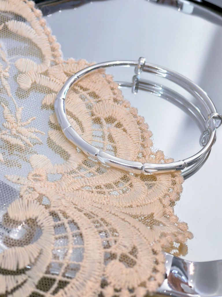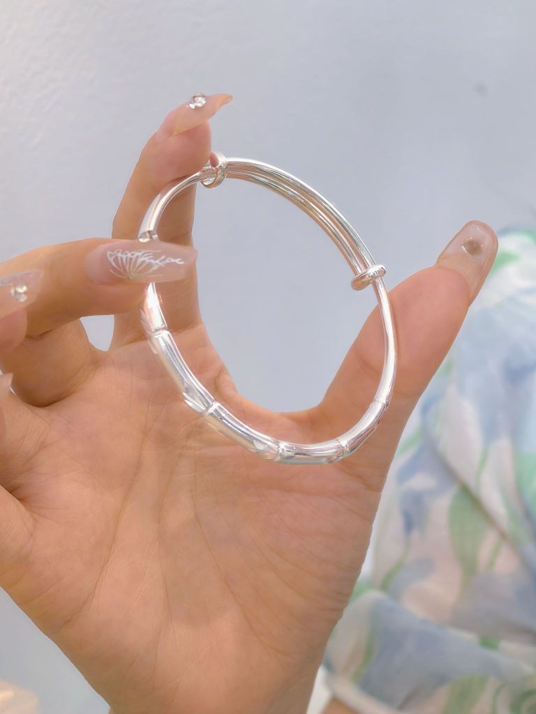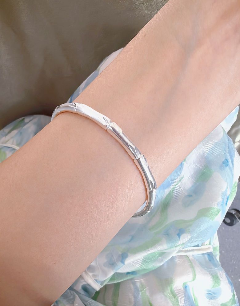 🤭送给妈妈的第一只好看又实惠的银镯子 一直都想着送麻👆麻一个银镯子 听说竹子生命力顽强有着健康长寿的寓意 于是特意选了竹节这款的🉑 镯身是光面和磨砂面的组合设计 戴👆上一整个精致又温柔 通体999足银的质感好有光泽🌟🌟blingbling的 而且镯子是开口的设计大小调节哦 我可太会送啦~妈妈收到超开心~🎉