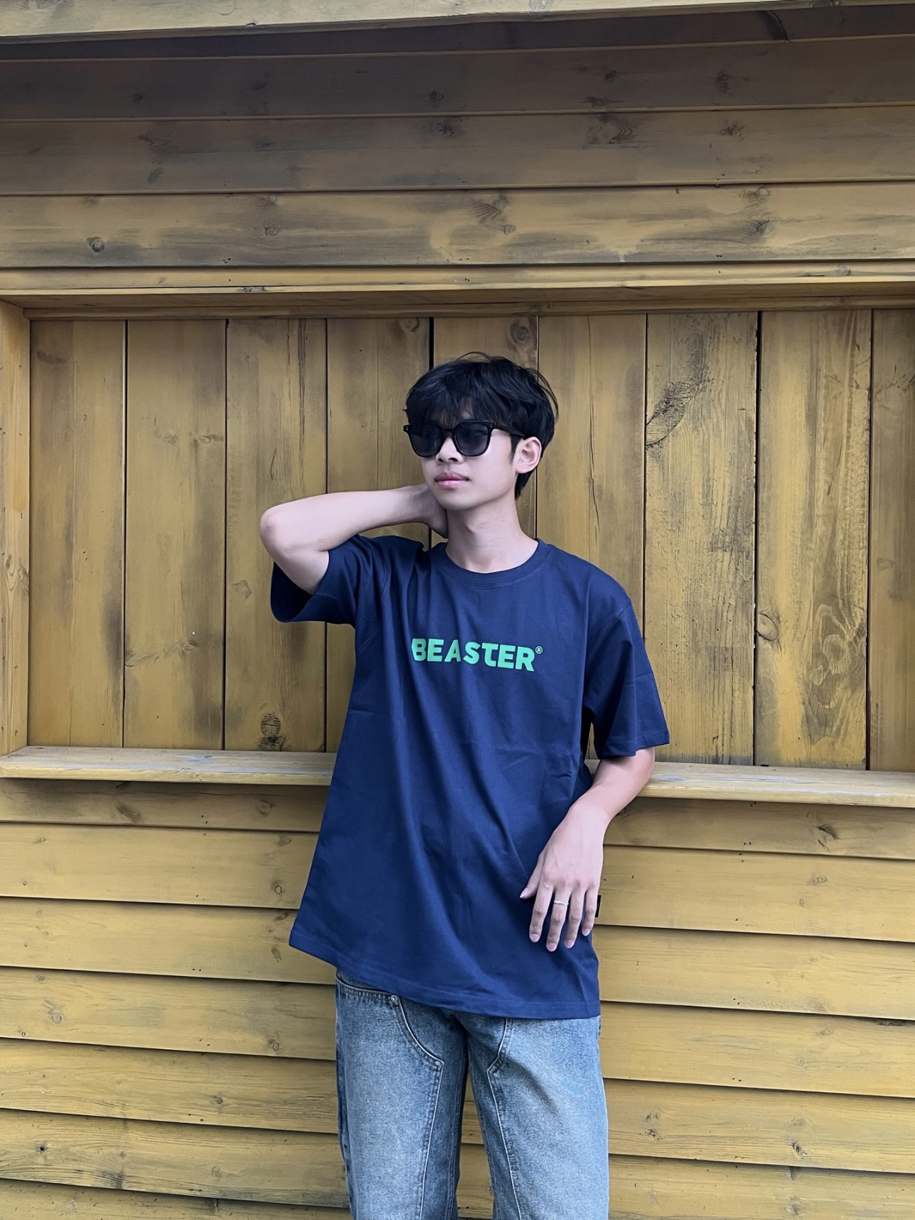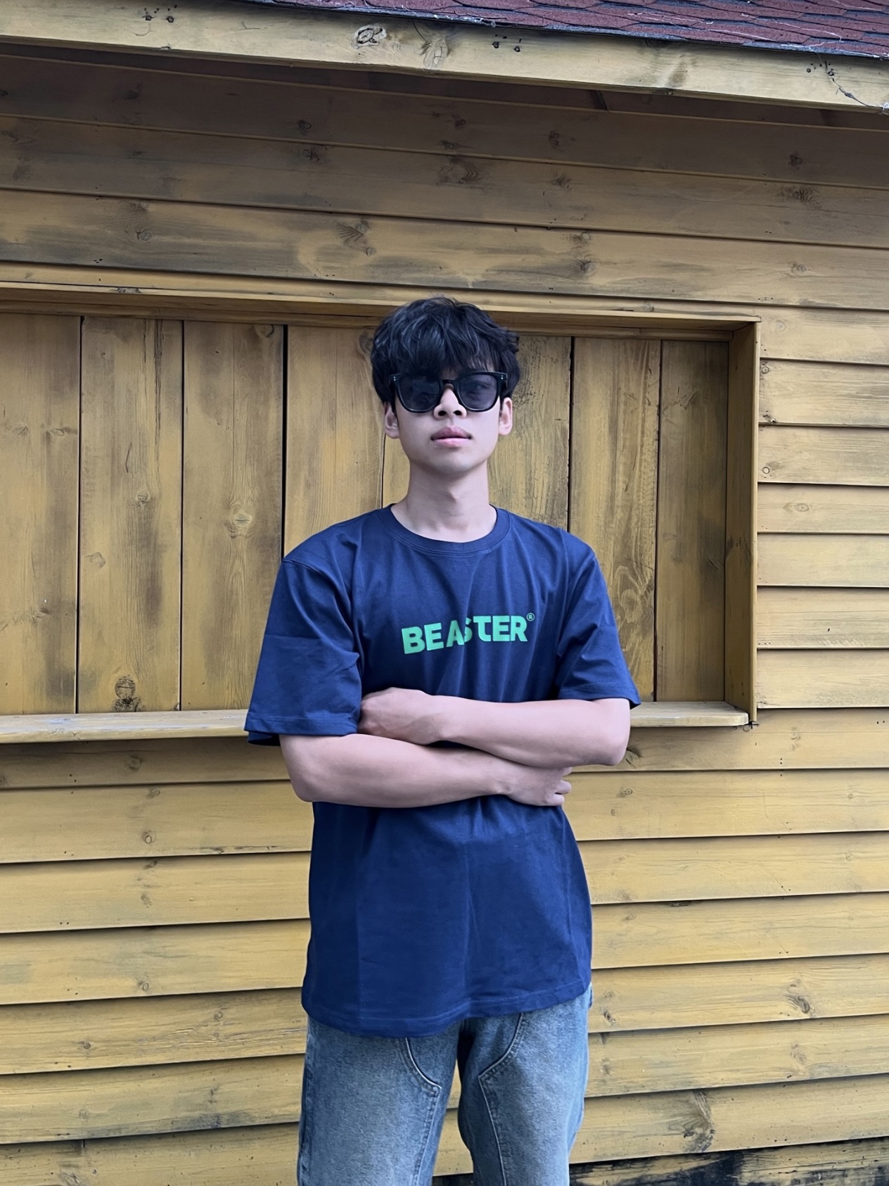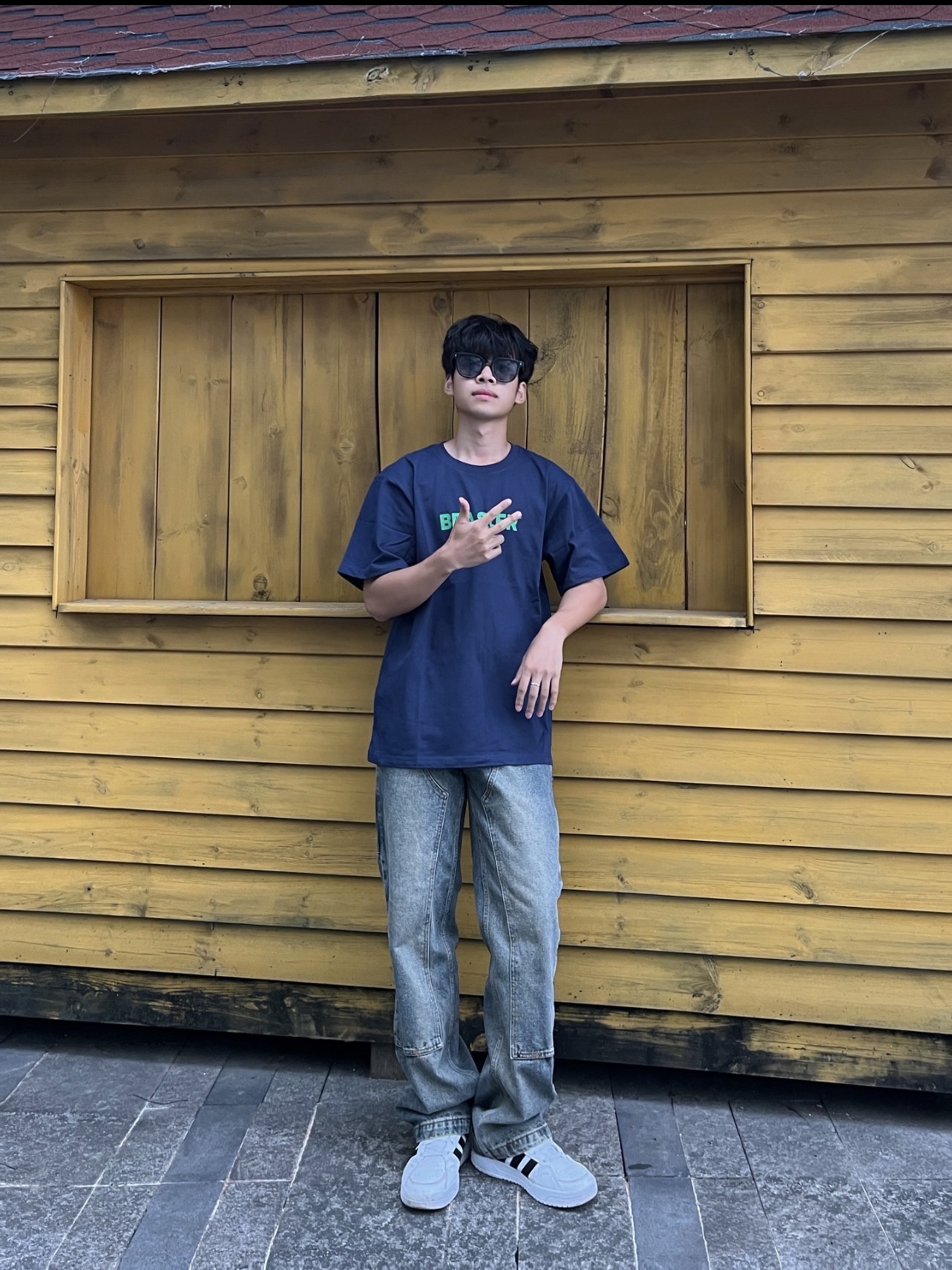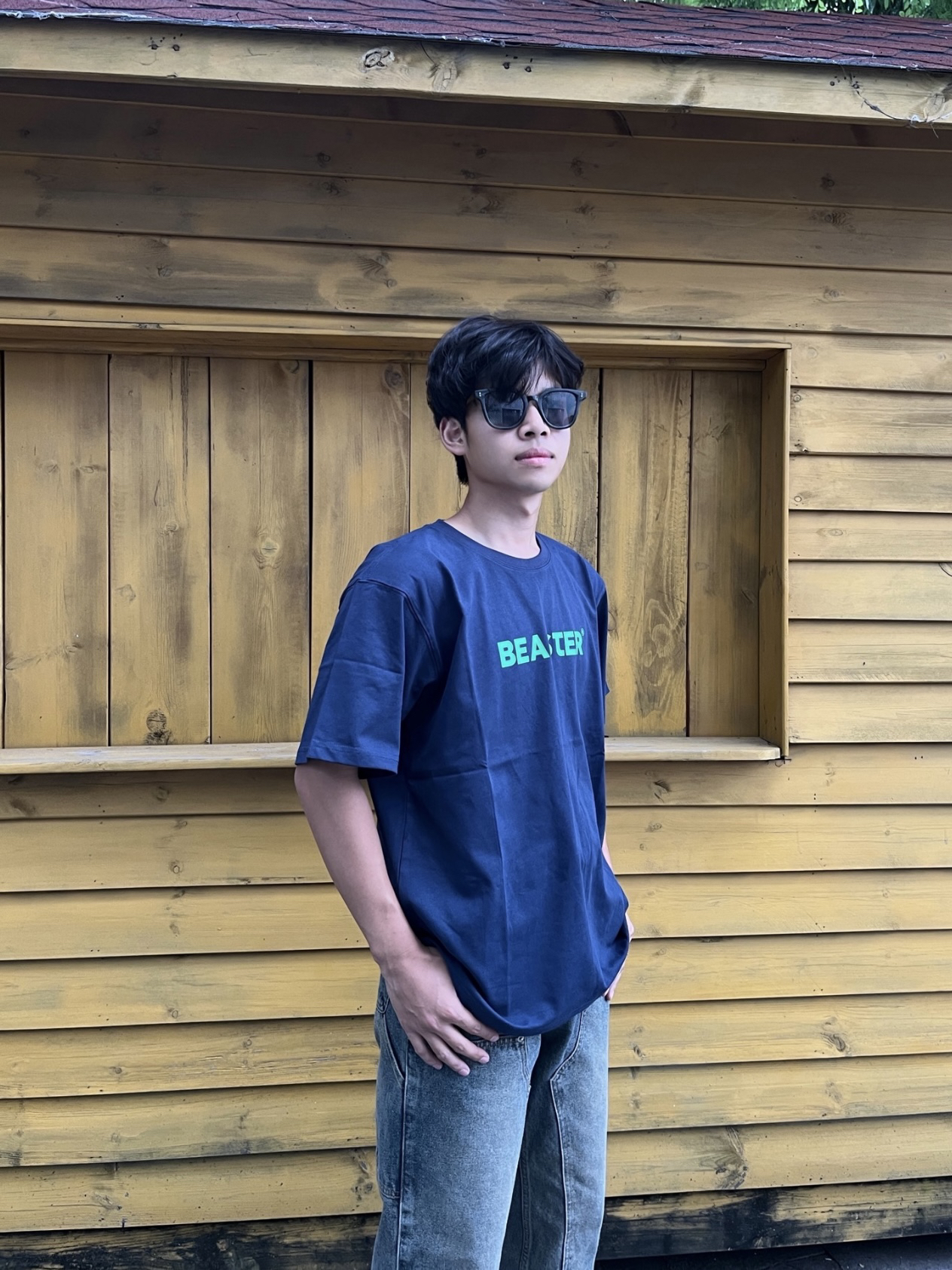 黄黑皮男生的衣柜子 上衣👔:基础版型藏青色短袖,整体只有胸口一个标语简约大气,纯棉面料穿在身上很舒服,简单的设计不一样的感觉。 裤子👖:美式牛仔裤,直筒版型,不挑身材面料硬挺有型,复古泥黄色,看起来更有质感。 鞋子👟:阿迪达斯的板鞋,简约好看易搭配。 👔:M 👖:M 👟:41