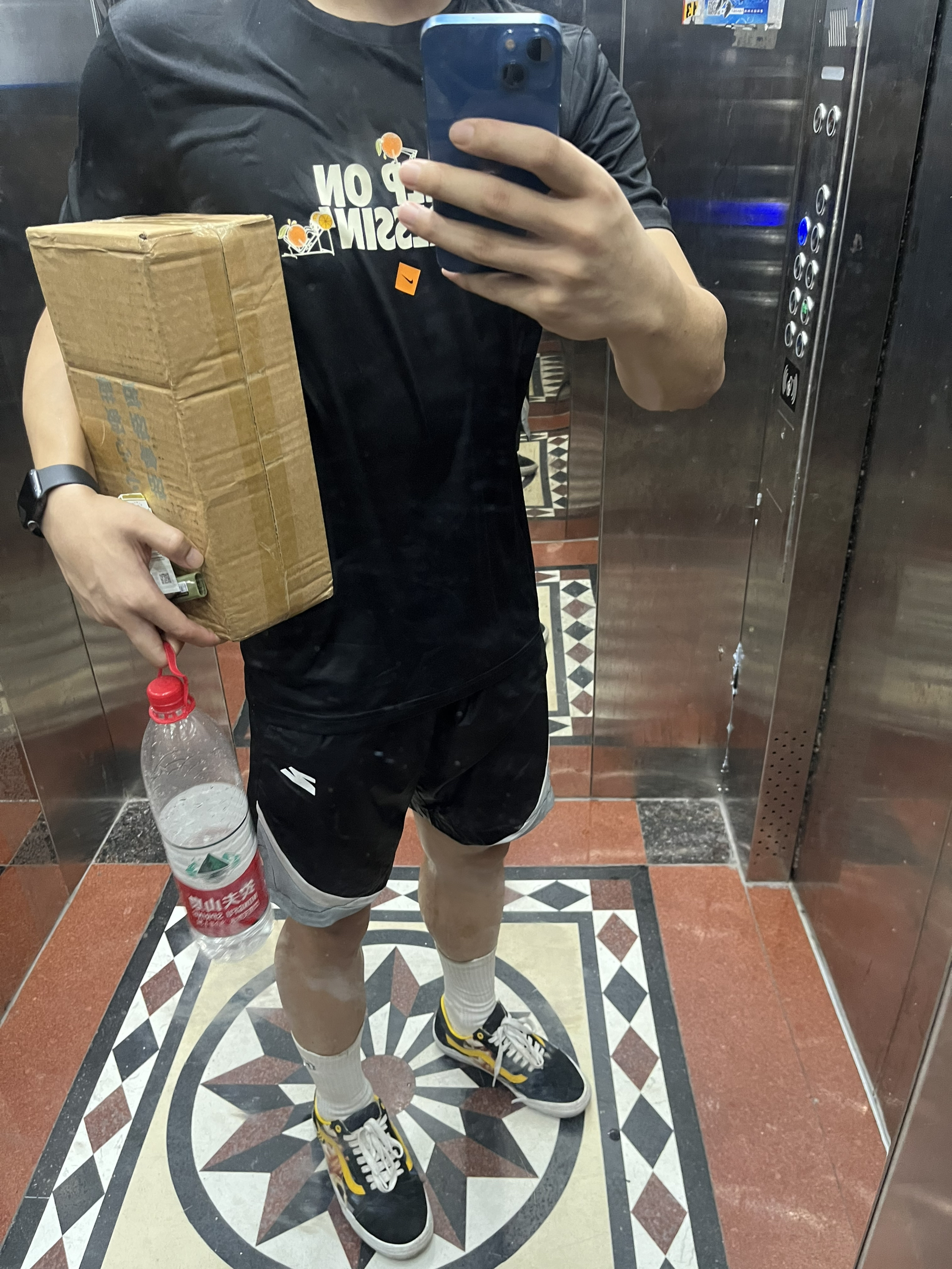 上身是耐克的训练短袖👔,价格特别实惠,也很透气。材质也是速干的那种,用来训练去健身房是一个非常不错的选择!(本人身高173,体重140,尺码选择L码,合身) 下身是UZIS的原料短裤,常穿也是速干材质,尺码L码,里面搭配了左右力量的5分紧身短裤尺码S,出汗不会贴身,训练起来没有拘束,猛猛冲!🐛
