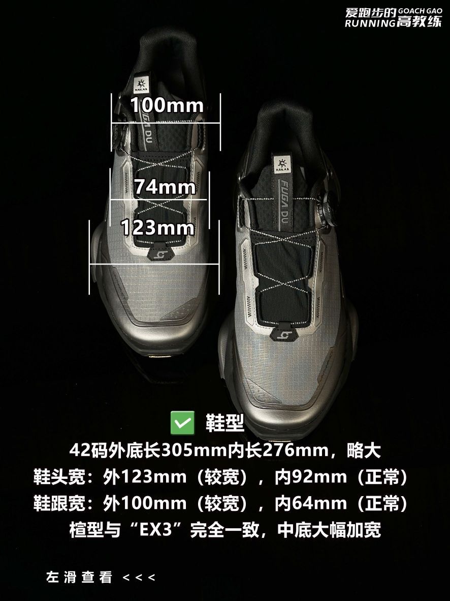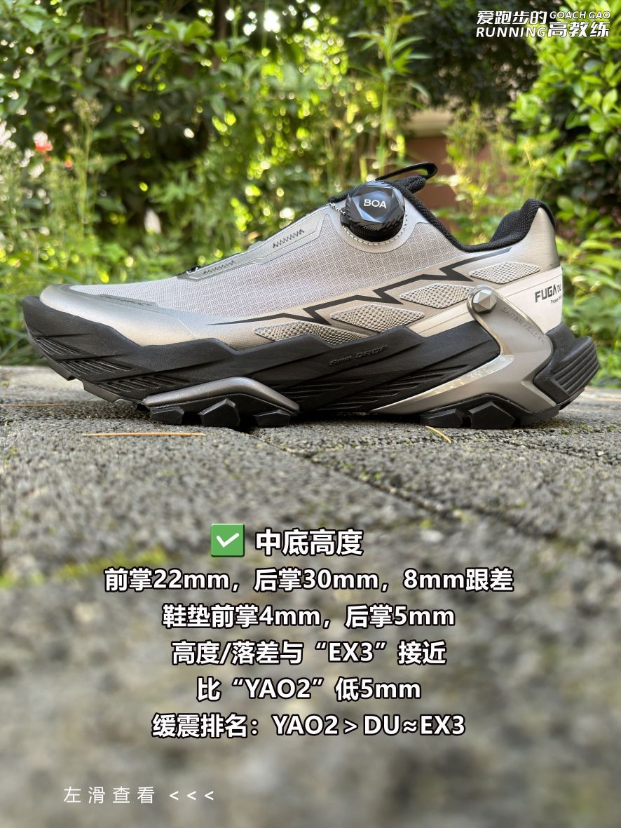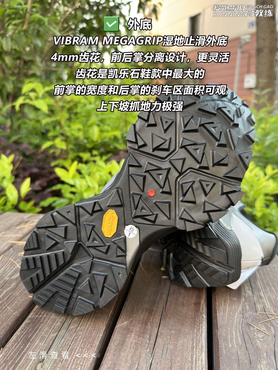 📝跑鞋数据: ✅鞋重:42码单只左脚297g,右脚292g,; ✅鞋面:工程网面,舒适度优秀,透气性一般,银色压胶提供支撑; ✅鞋楦:正常鞋楦,按正码选择,户外适应选大半码; ✅鞋舌:鞋舌中间层有打孔,半内靴设计,相较于普通版更加轻薄透气,还比普通版多了提拉环和一层防沙网布; ✅鞋带/鞋带孔:BOA系带系统,穿脱便捷,贴合精准,但包裹性相较于基础款的AWS两段式收紧系统会弱些; ✅港宝:高强度港宝...