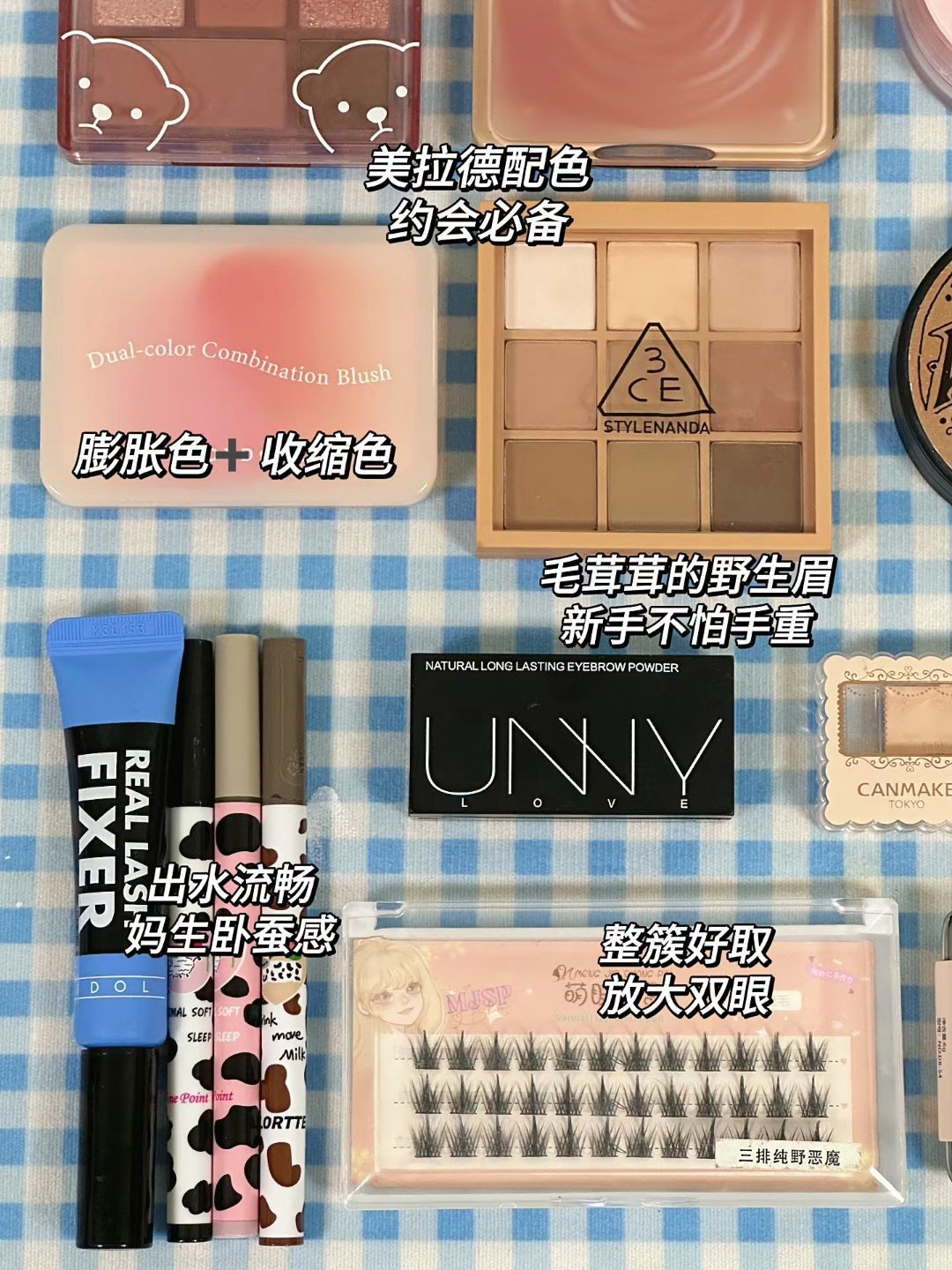 本篇笔记关联了3CE/三熹玉 细腻易上色九宫格眼影盘 哑光细闪九色纷呈 裸棕哑光盘SMOOTHER 8g、Too cool for school 涂酷三色修容盘粉刷套装 鼻影阴影侧影三合一修饰侧影 经典咖棕色 #1+ 斜头刷、FLORTTE/花洛莉亚 哇塞好细奶牛系列眼线液笔 自然持久不晕染 0.55ml 04卧蚕笔等商品,为用户提供真实的使用体验和购买参考。