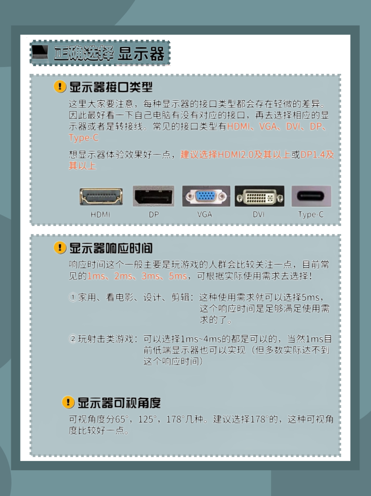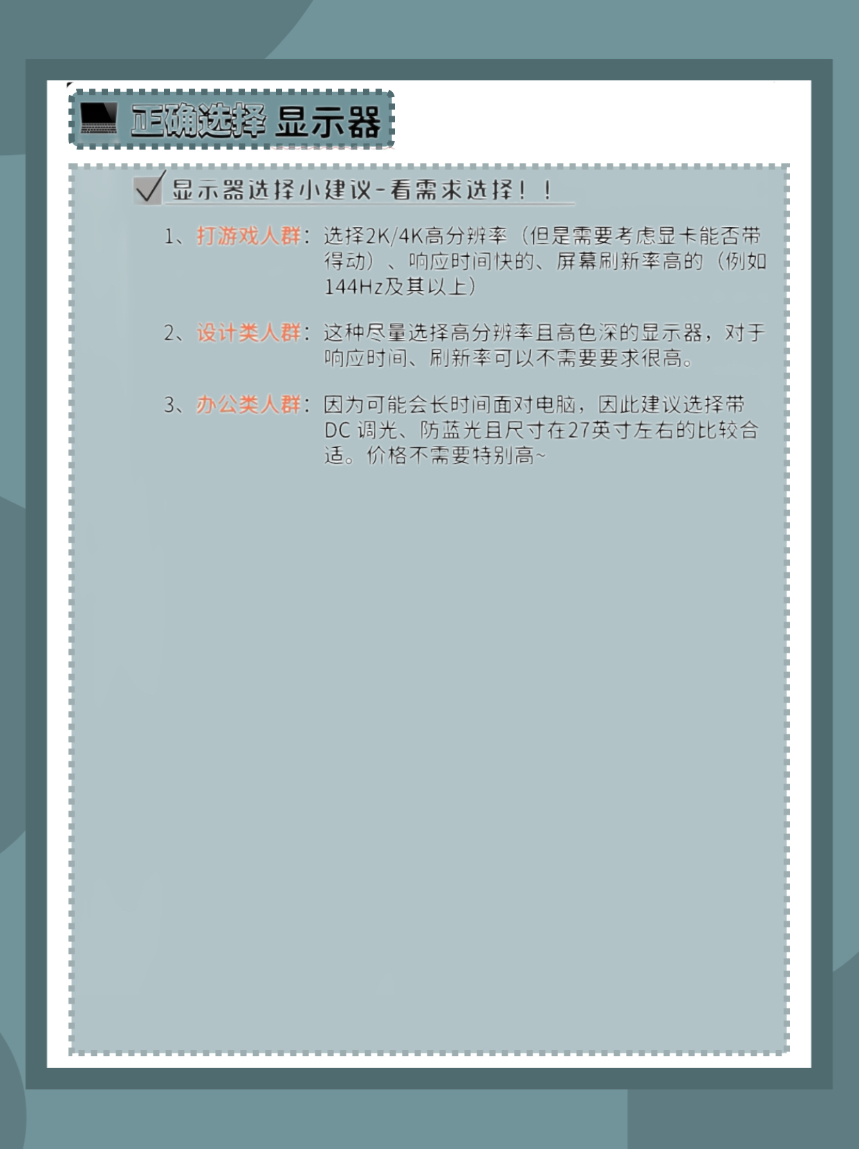 大家好!这里是你们的好朋友-小数码🌟 有不少宝子想外接显示器,借此机会给大家出出攻略!😊快来跟我Get新技能吧~ - ✅显示器主要考虑参数:(图二~图五) 面板材质、分辨率、刷新率、色域、色深、色准、亮度、对比度、HDR、接口类型、响应时间。所涉及的参数比较多,但是都比较好比较,大家结合图片查看就能比较好的理解了哈~ - ✅根据需求选择显示器: 当然预算很充足,那么可以选择的各方面参数都会比较不错...