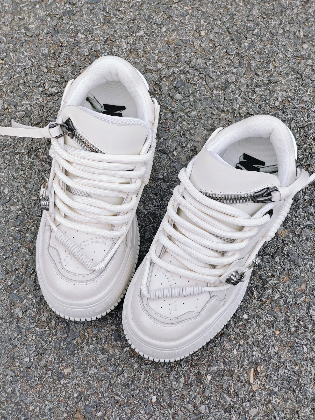 啊啊啊我也挖到了好看的金属感厚底小白鞋~ 是狂野分子家的不拘绳墨 像平替版的“小胖丁” 鞋子看着大,但是穿上很舒服,轻便 鞋子很百搭,搭配一条长裙很显温柔 鞋上的拉链加铆钉设计,更显质感了。 尺码不偏 开学好鞋又找到啦